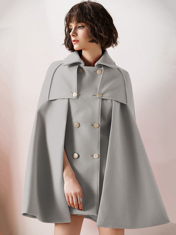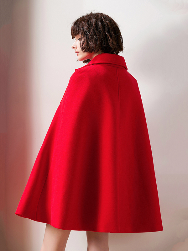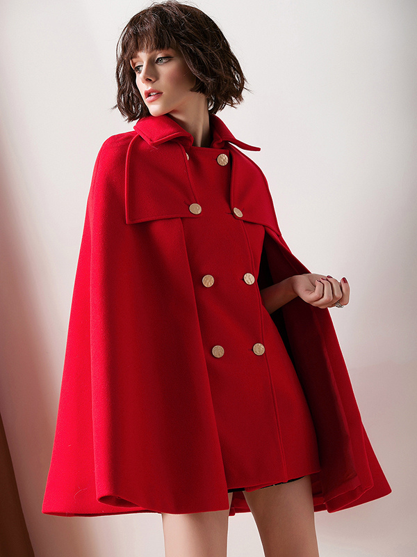 ポンチョ コート 折り襟 マントコート レッド レディースアウター ウール レディースファッション 普通 無地 ボタン アカデミック プラスサイズ