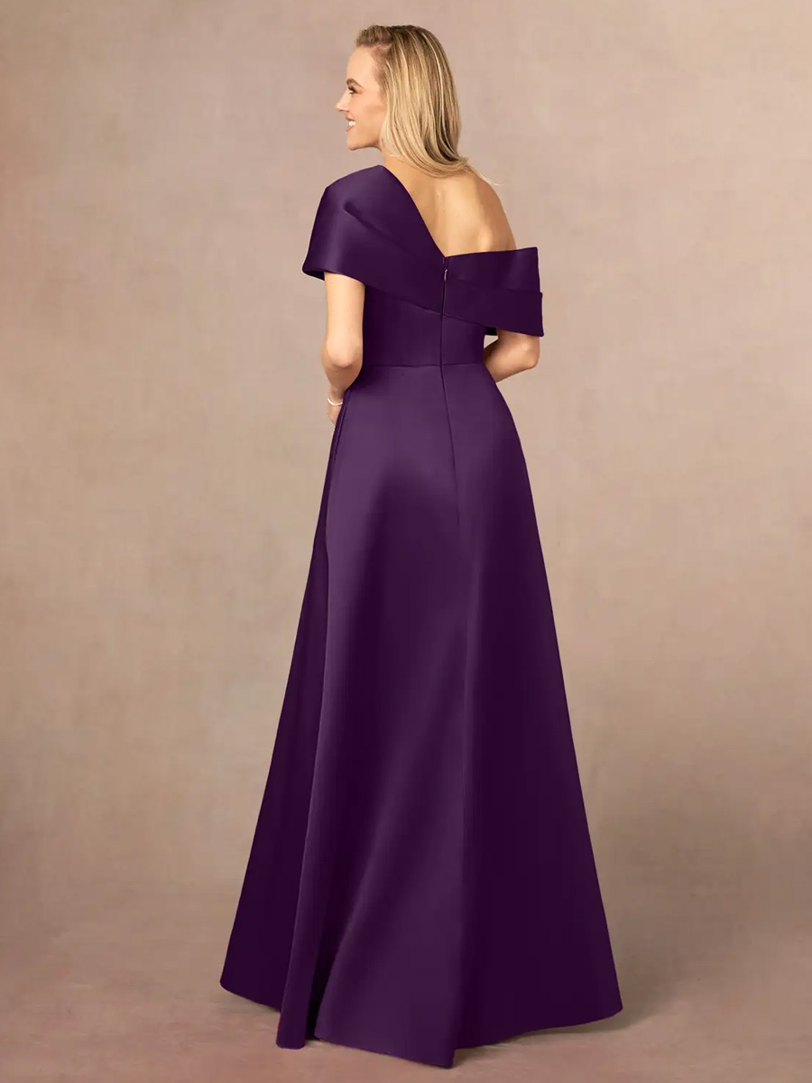 花嫁の母親のためのパーティードレス ワンショルダー 半袖 Aライン フロントスリット フロア丈 ウェディングゲストドレス