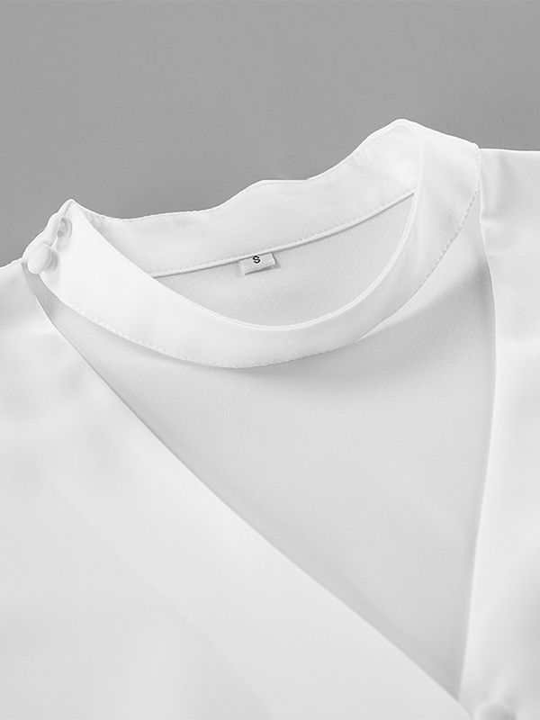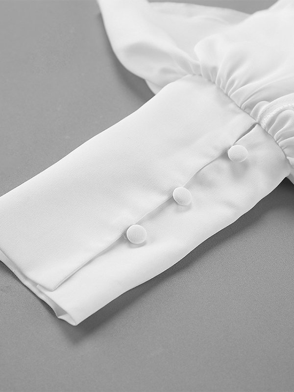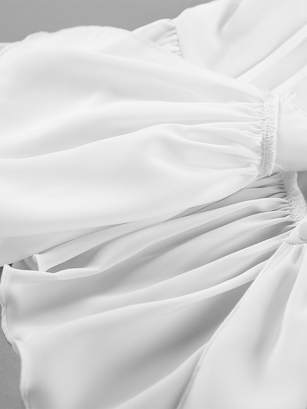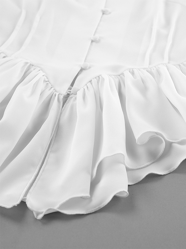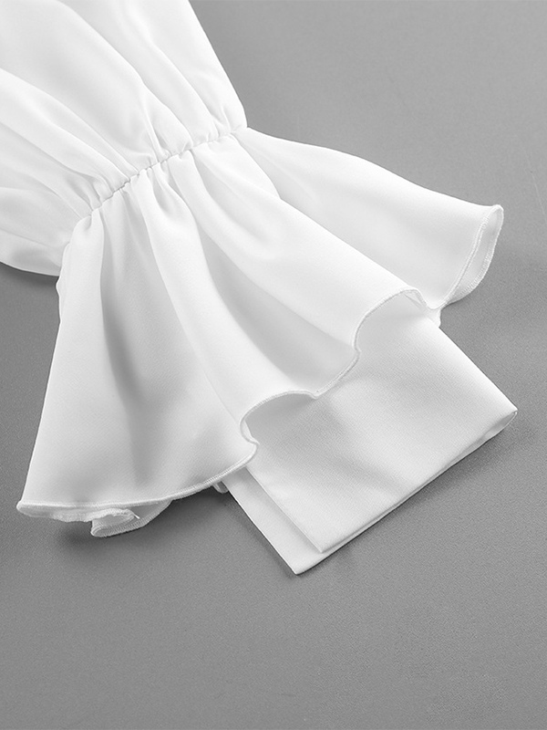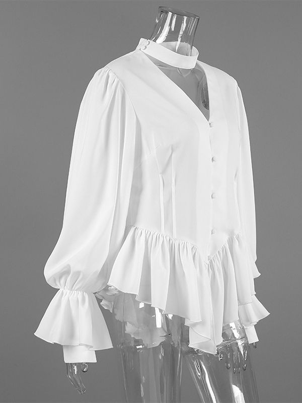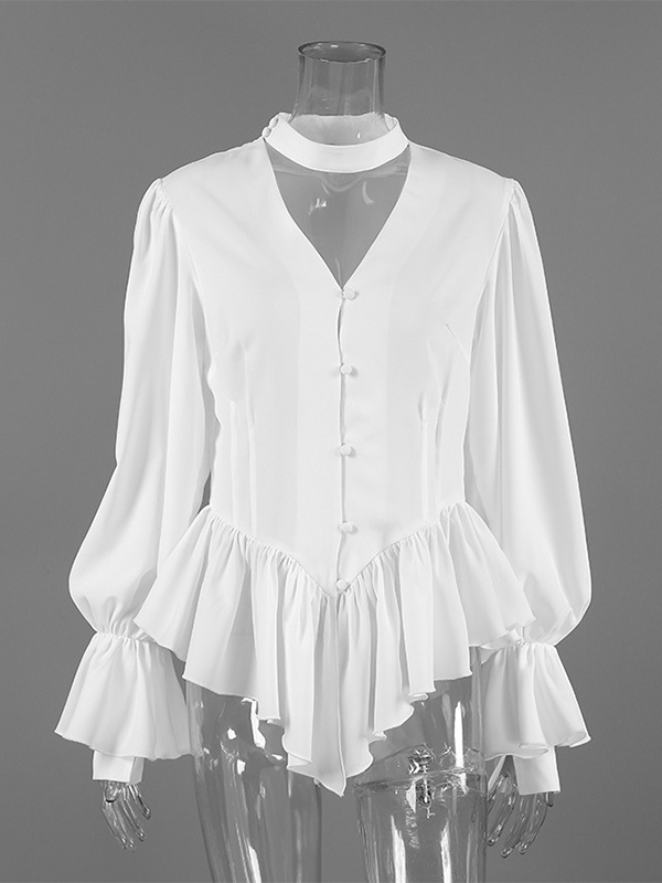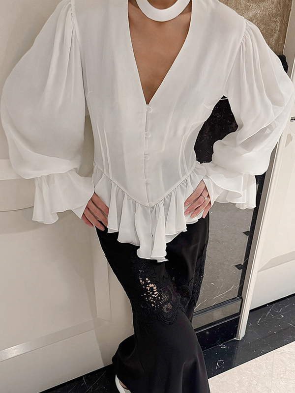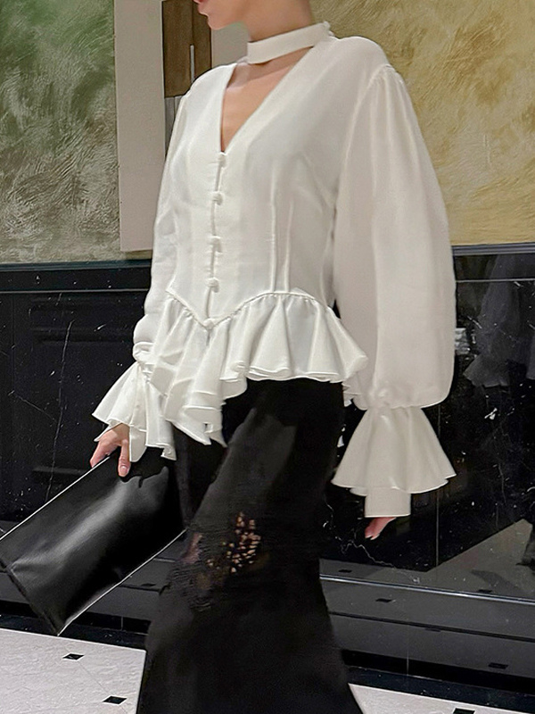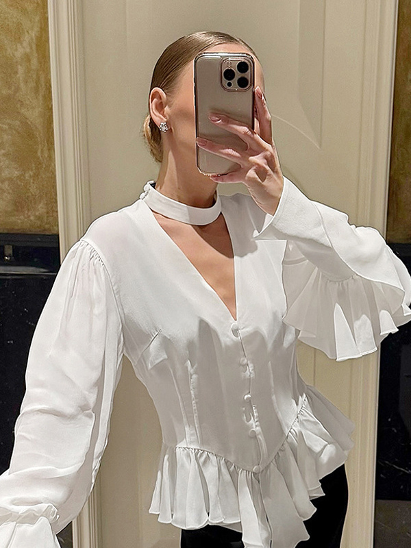 ペプラムブラウス レディース エレガント ホワイト トップス - ホルターネック Vネック ランタンスリーブ スリムフィット - 春のオフィスからディナーまで 2026