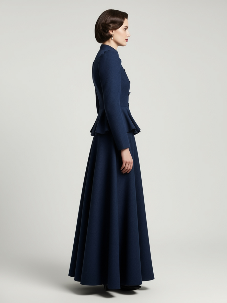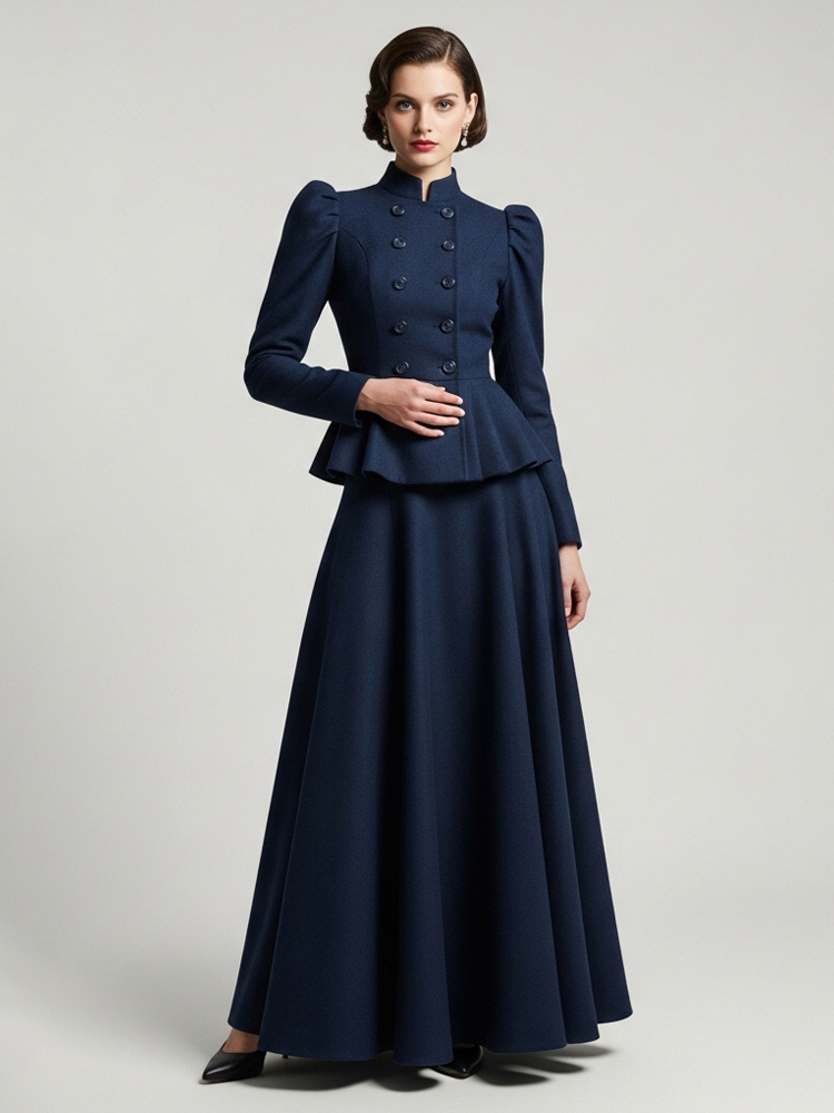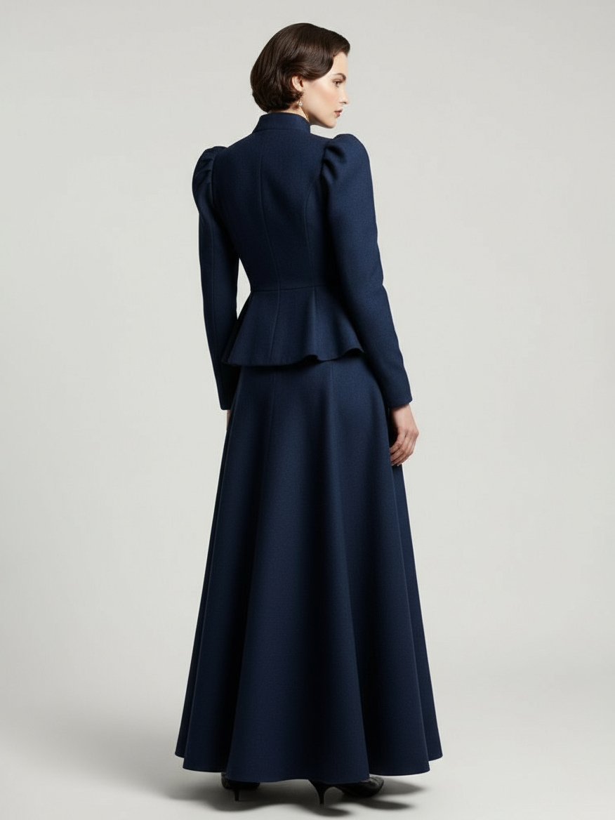 パフスリーブとマキシスカート付きペプラムジャケット、ビクトリアンスタイルのウールブレンドセット(レディース2025年)