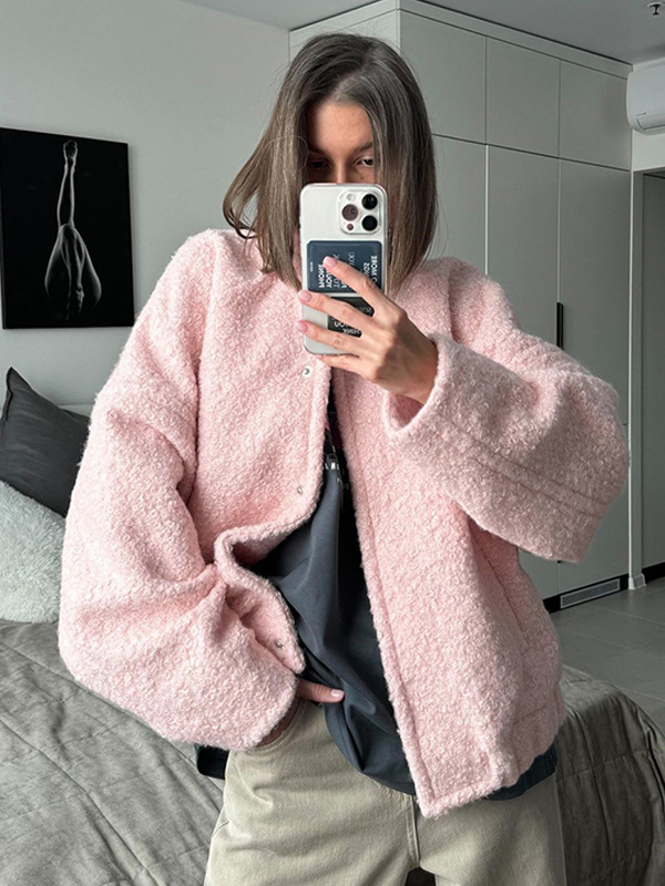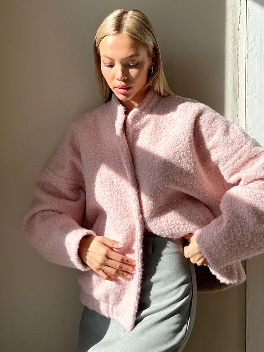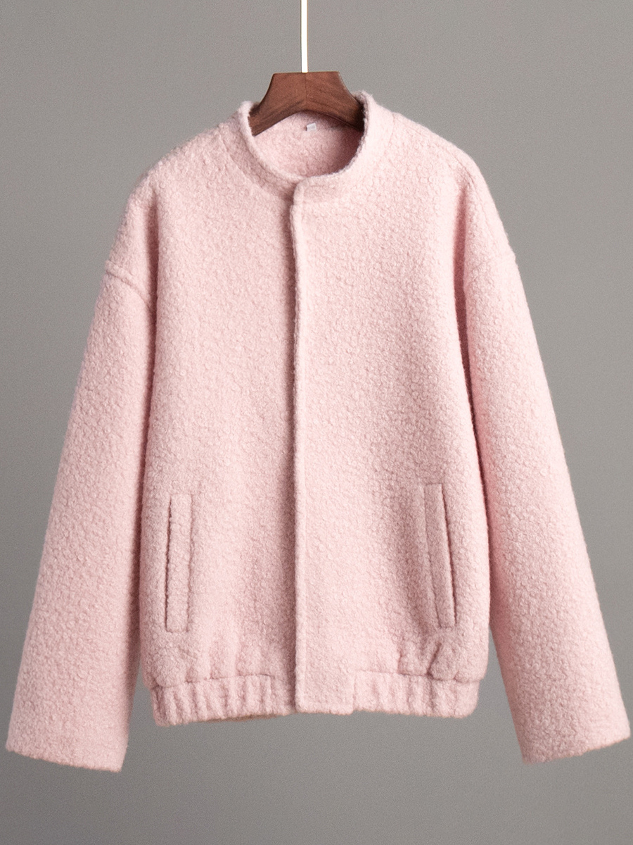 スタンドカラーのピンクのプラッシュジャケット(レディース)2025