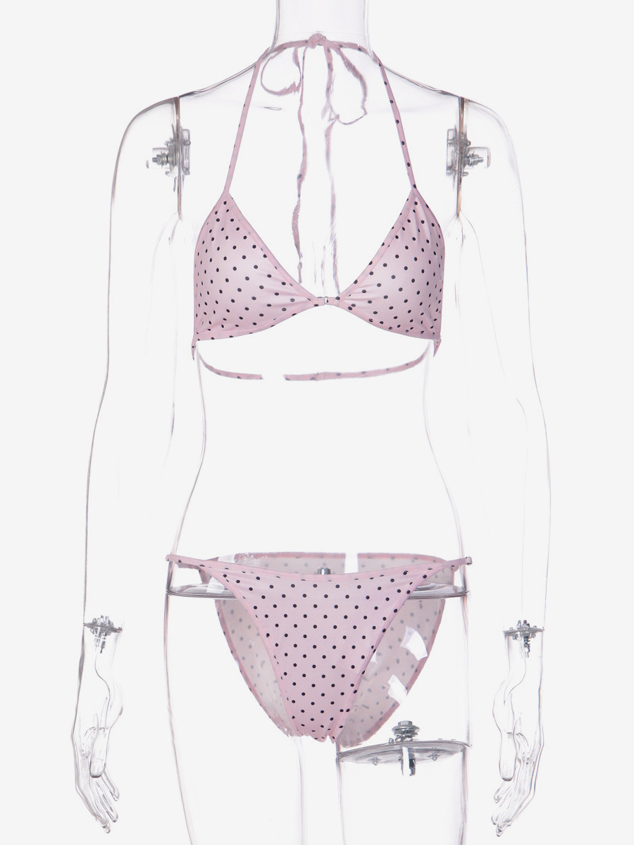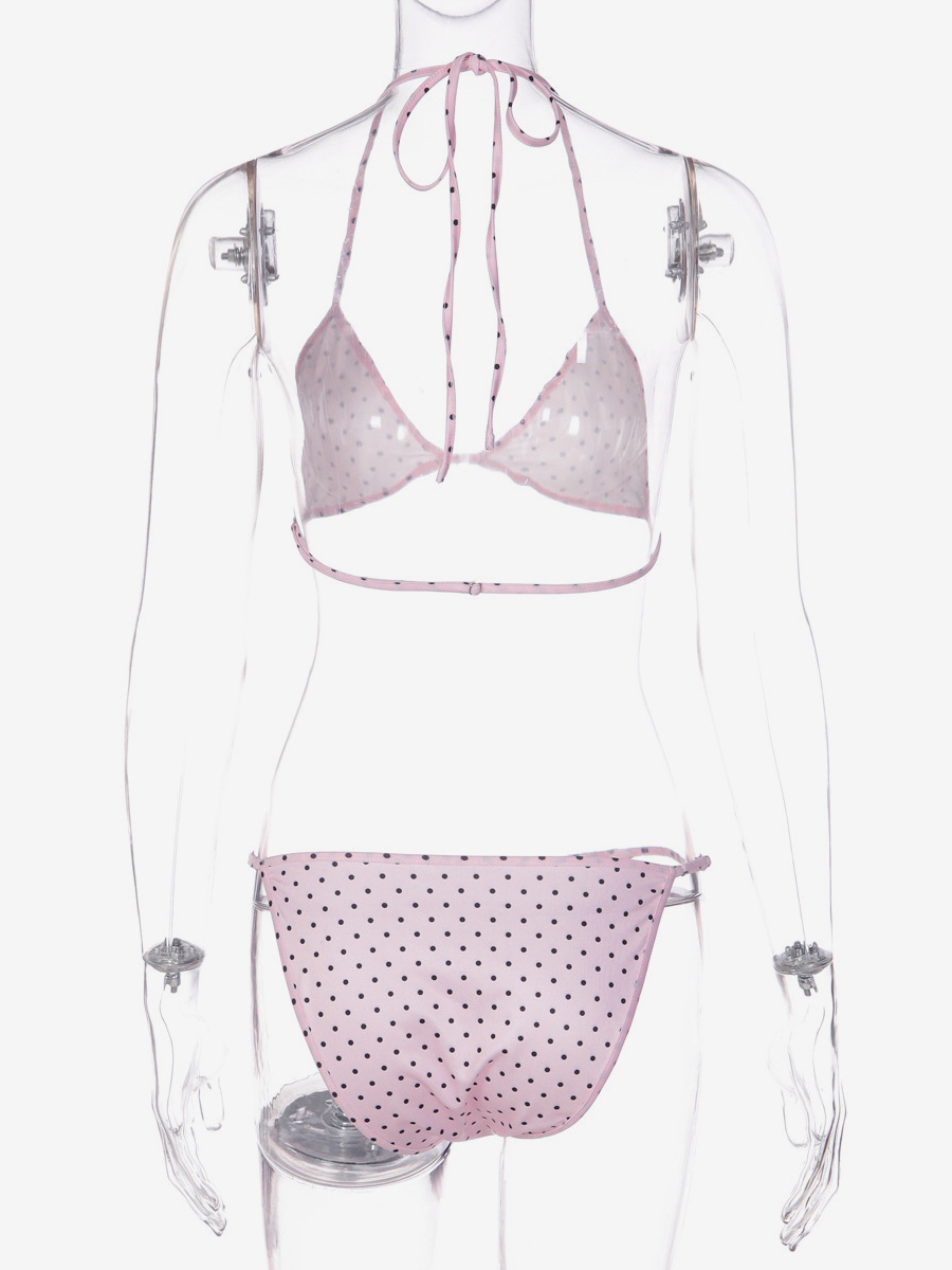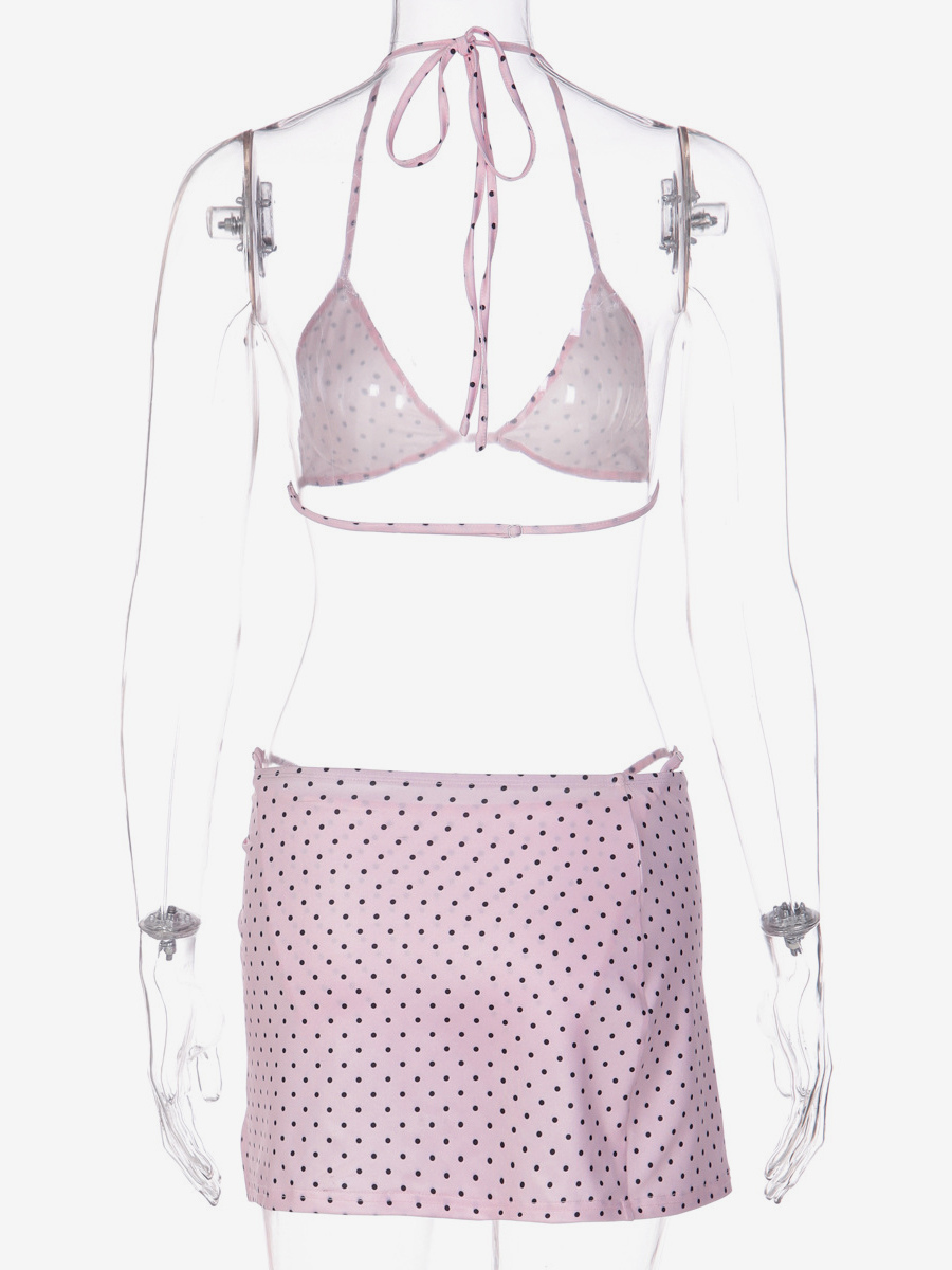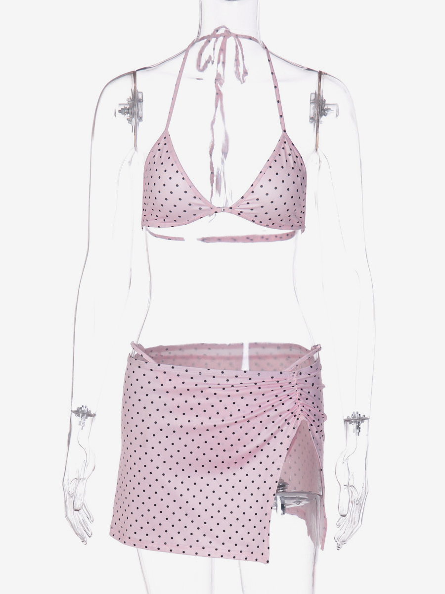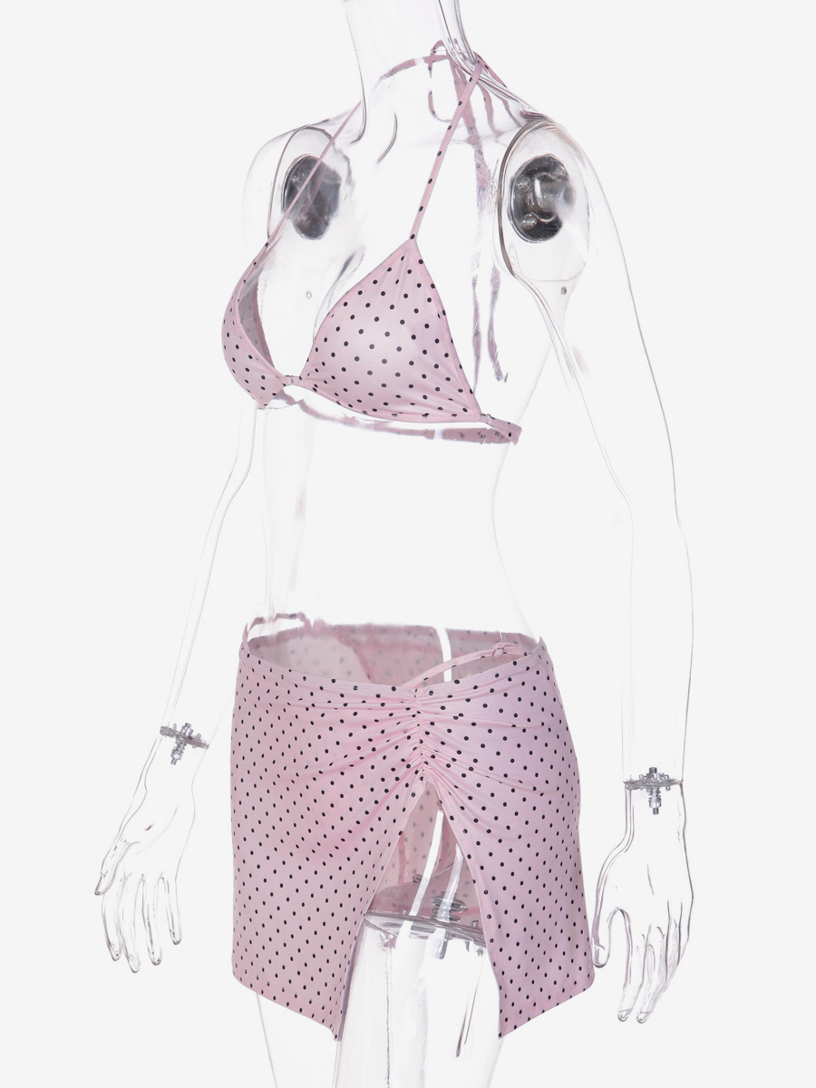 ピンクのドット柄3点セット水着(女性用) - トライアングルマイクロビキニ、サイドスリットスカートカバーアップ付き - 2026年夏ビーチ