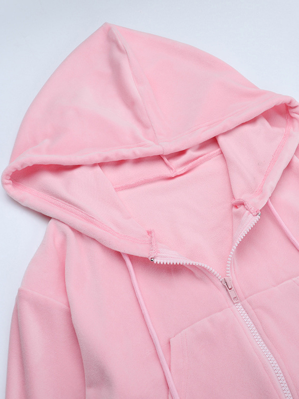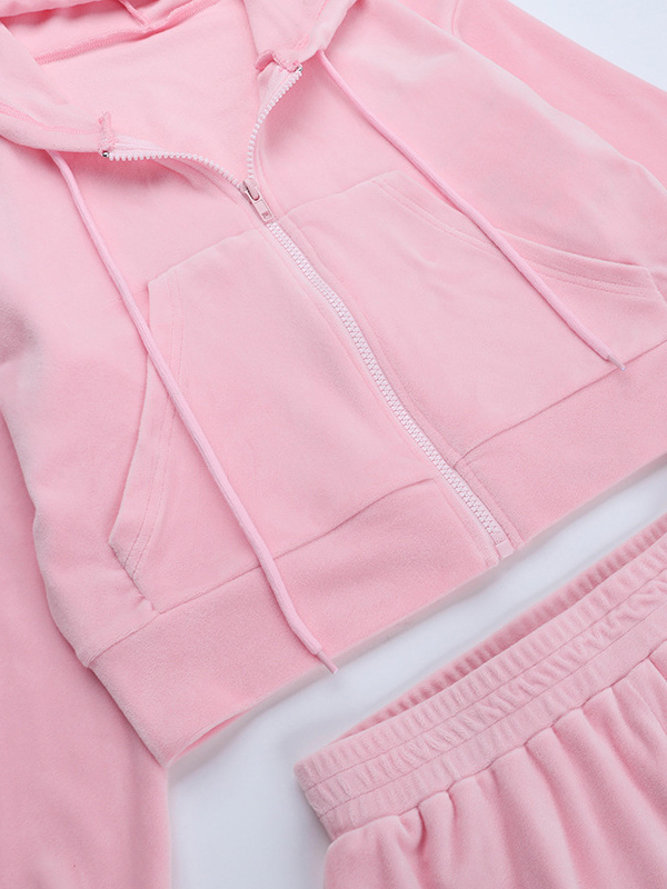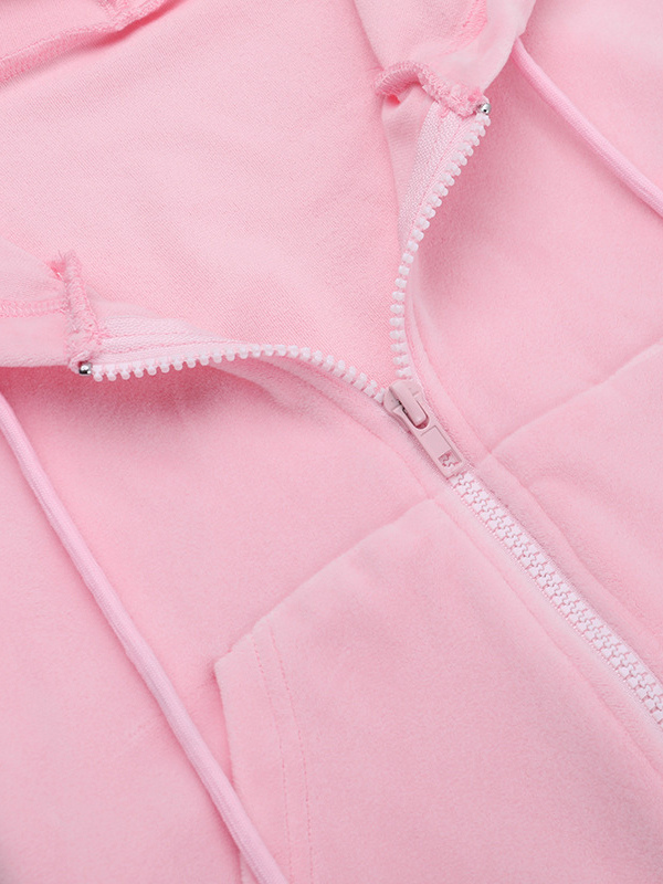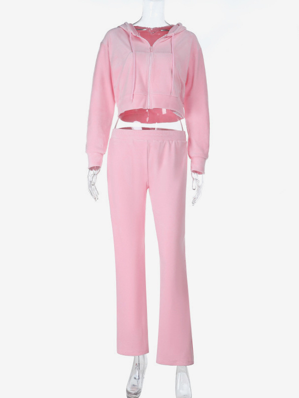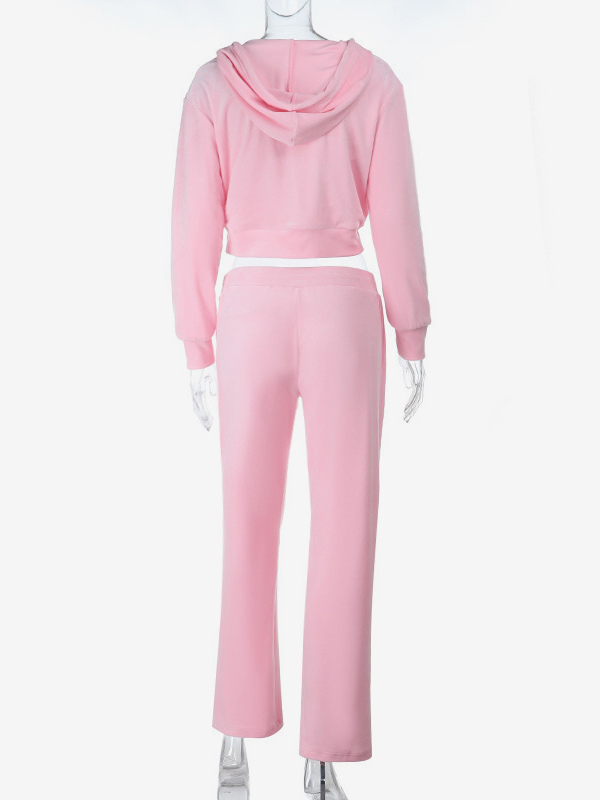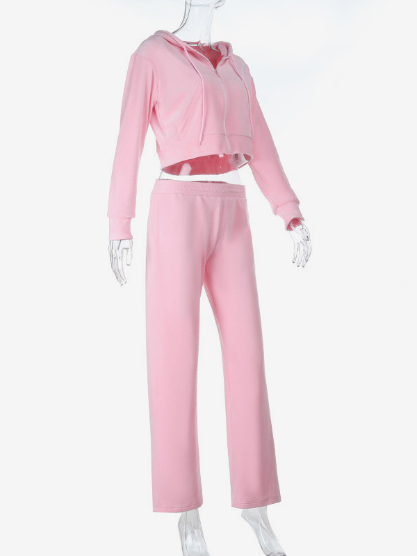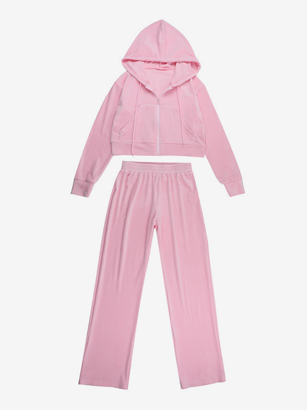 ピンクのレディース2ピーストラックスーツ - トレンディなジップアップクロップドパーカーとストレートパンツ - Y2Kベロアスタイル春のラウンジウェア2026