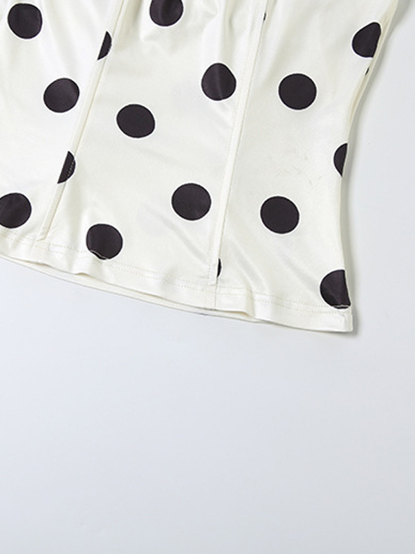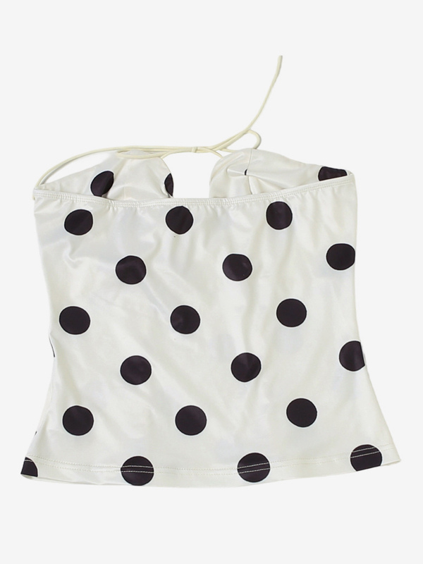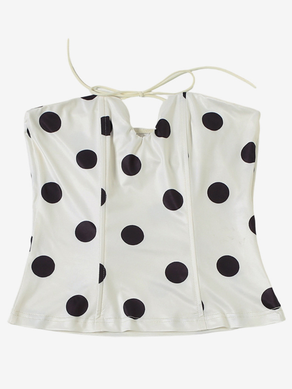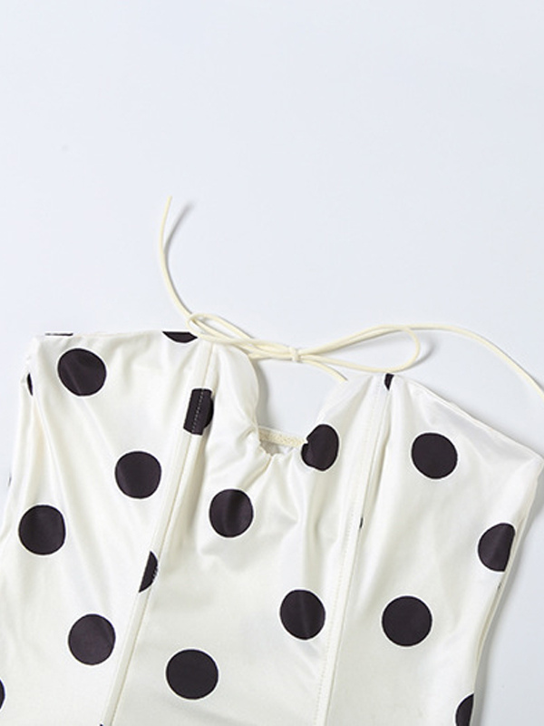 水玉模様のホルターネックコルセットトップ(レディース) - ホワイト ヴィンテージ ノースリーブ スリムフィット ビスチェ - サマービーチパーティー 2026