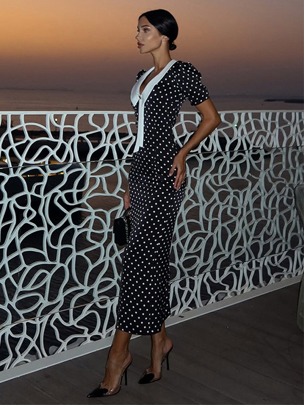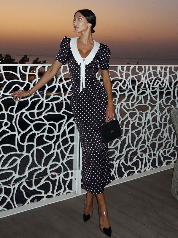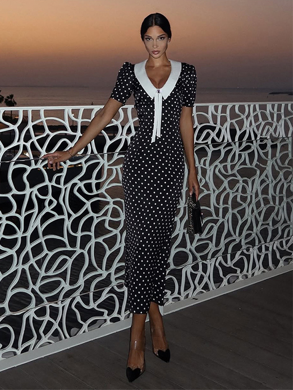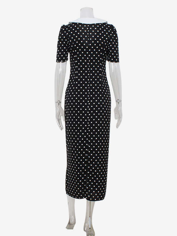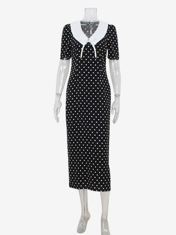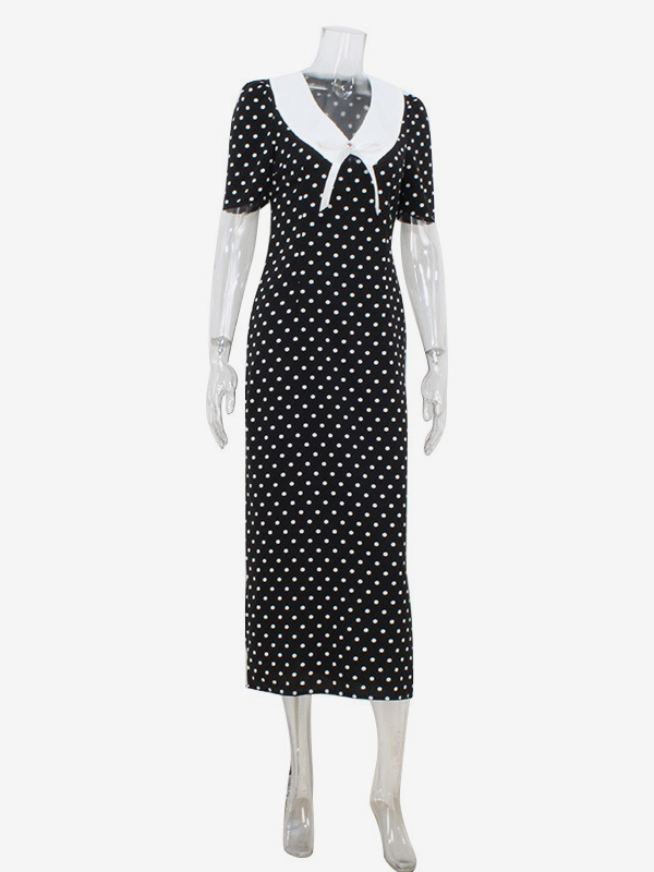水玉模様のマキシドレス(レディース) - ブラック ヴィンテージ ピーターパンカラー ボディコン ペンシルドレス - 夏のデートナイト 2026