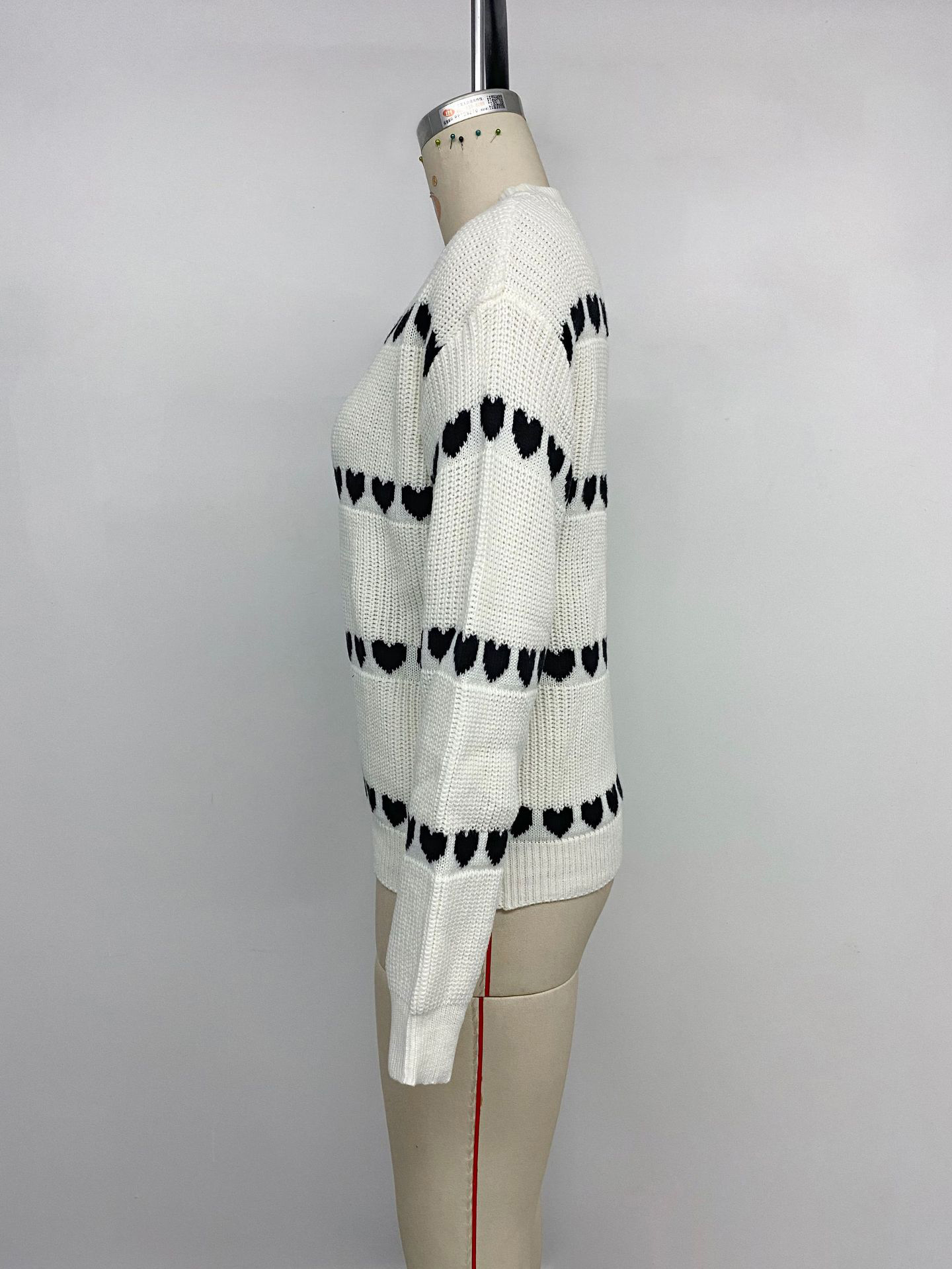 レディース プルオーバー ホワイト ツートン ジュエルネック 長袖 アクリル セーター