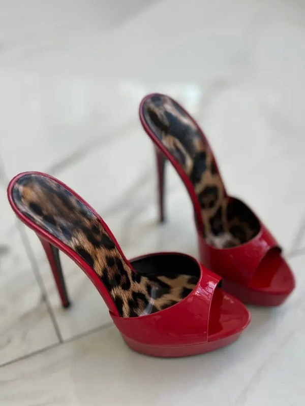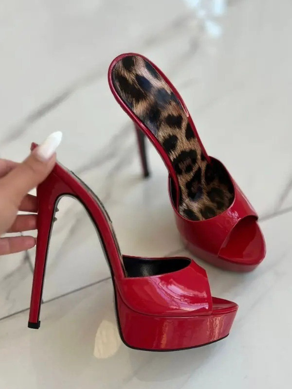 赤いセクシーなサンダル スリッパ プラットフォーム オープントゥ ハイヒール スライド