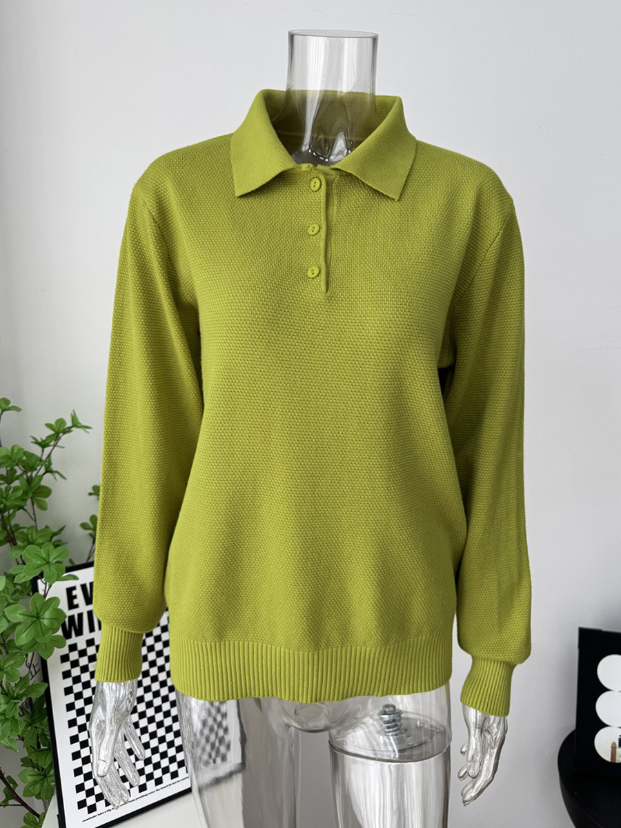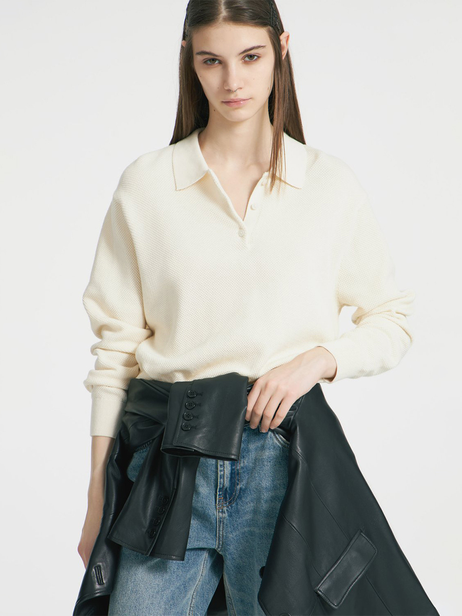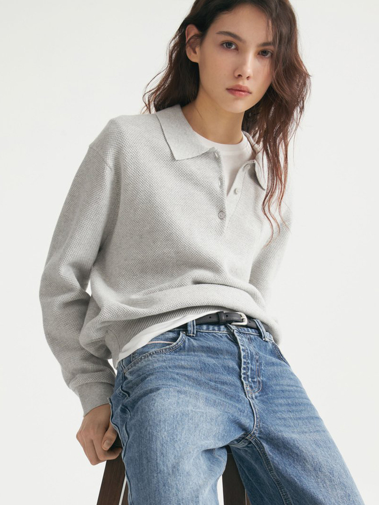 クラシックカラーのリラックスフィットニットポロセーター(レディース)2025