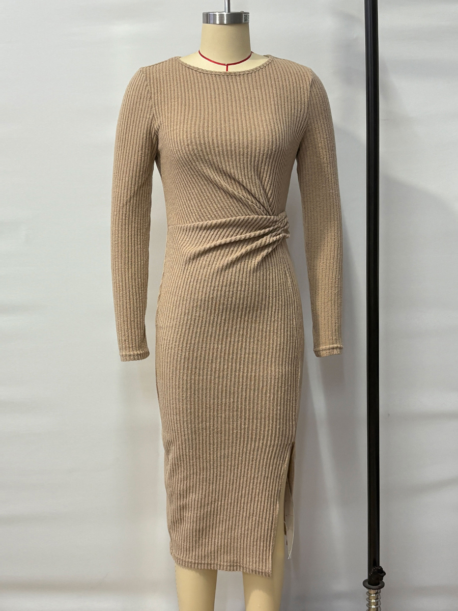 リブニット ノットディテール ボディコン ミディドレス(スリット入り)レディース 2025