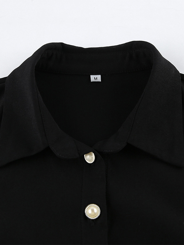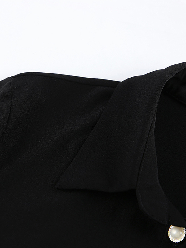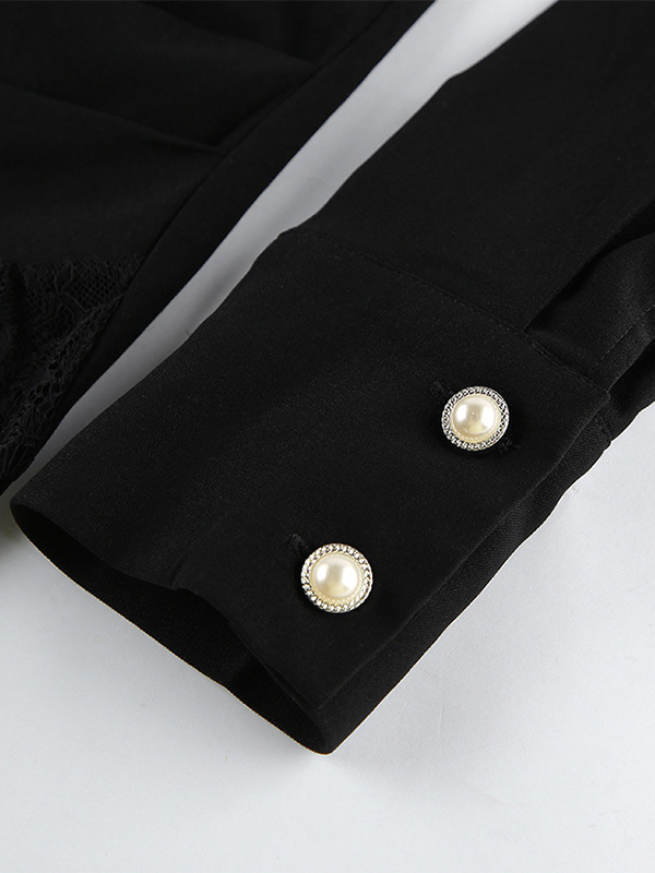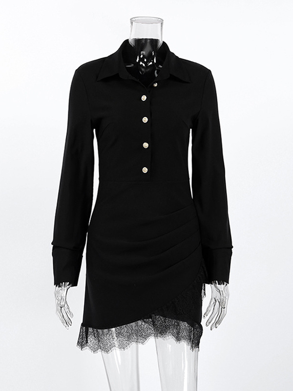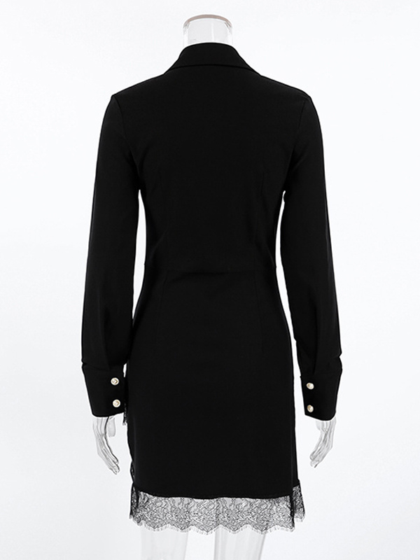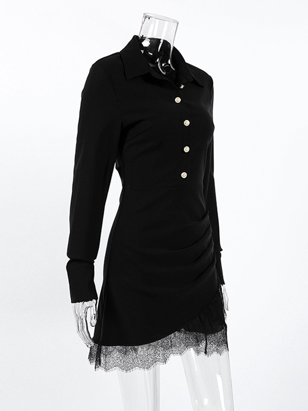 ギャザー入りシャツドレス レディース シックなミニドレス - ブラックレース裾 長袖 ボディコン - 春のオフィスからディナーまで 2026