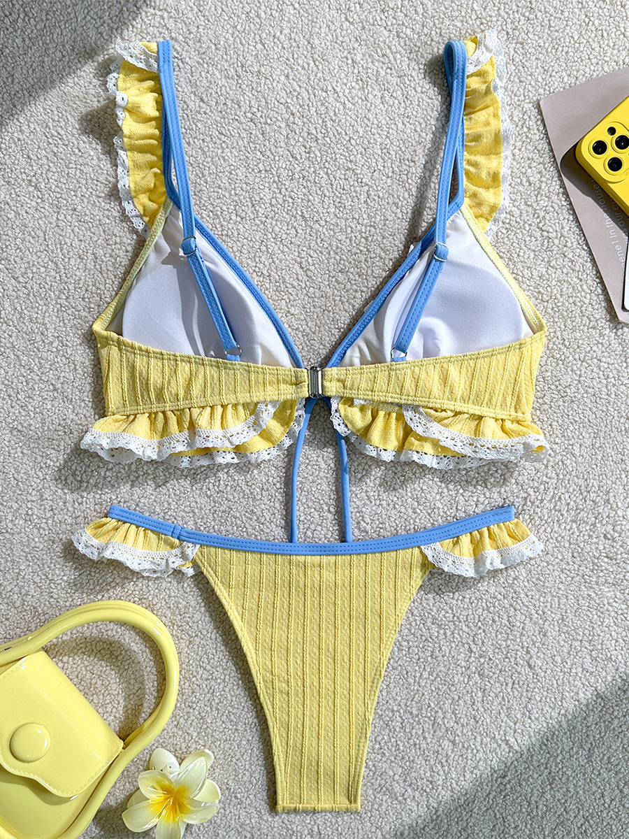 女性用フリルビキニセット - コテージコア風セクシーツーピース水着(レーストリム付き) - 2026年夏のビーチホリデー