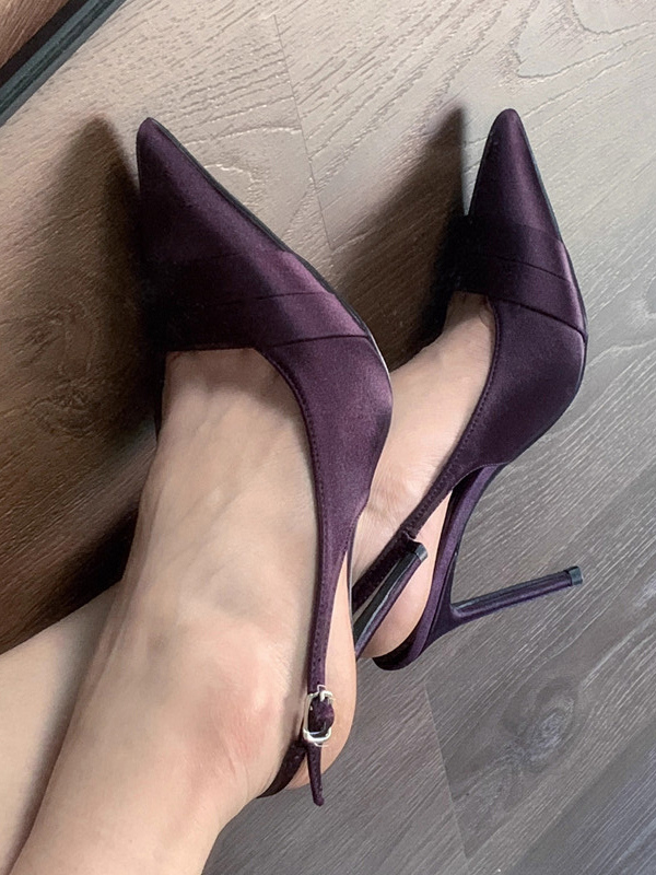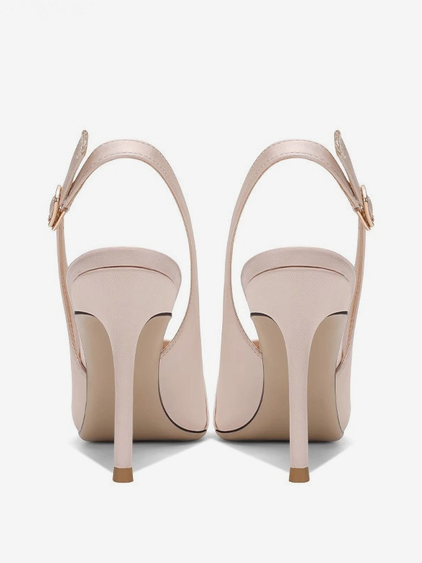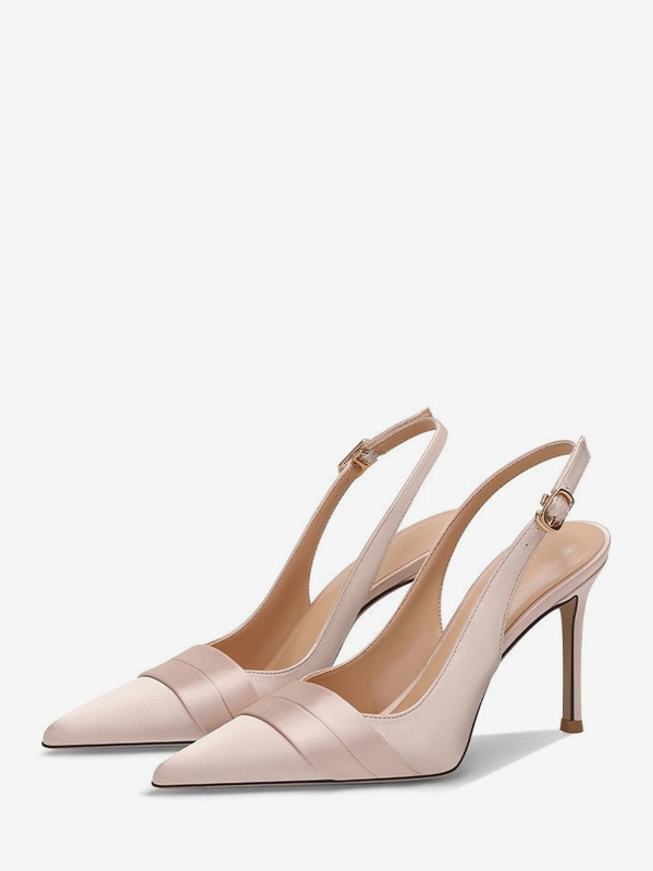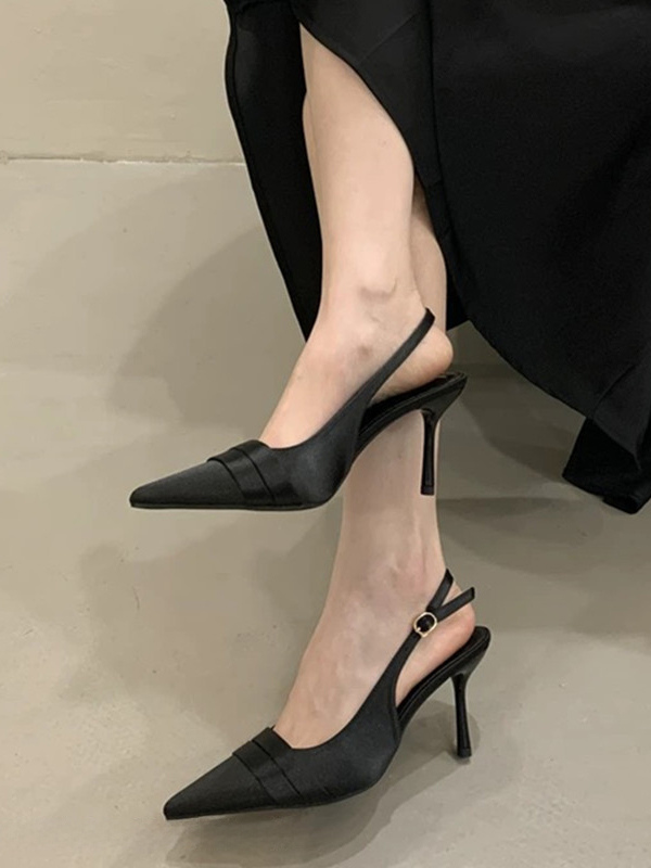 サテンドレスシューズ レディース ポインテッドトゥ スリングバック パーティー ウェディング ゲストシューズ