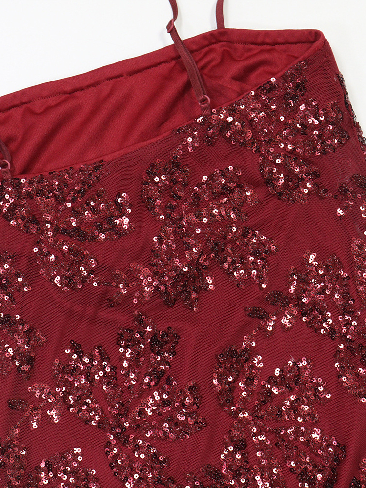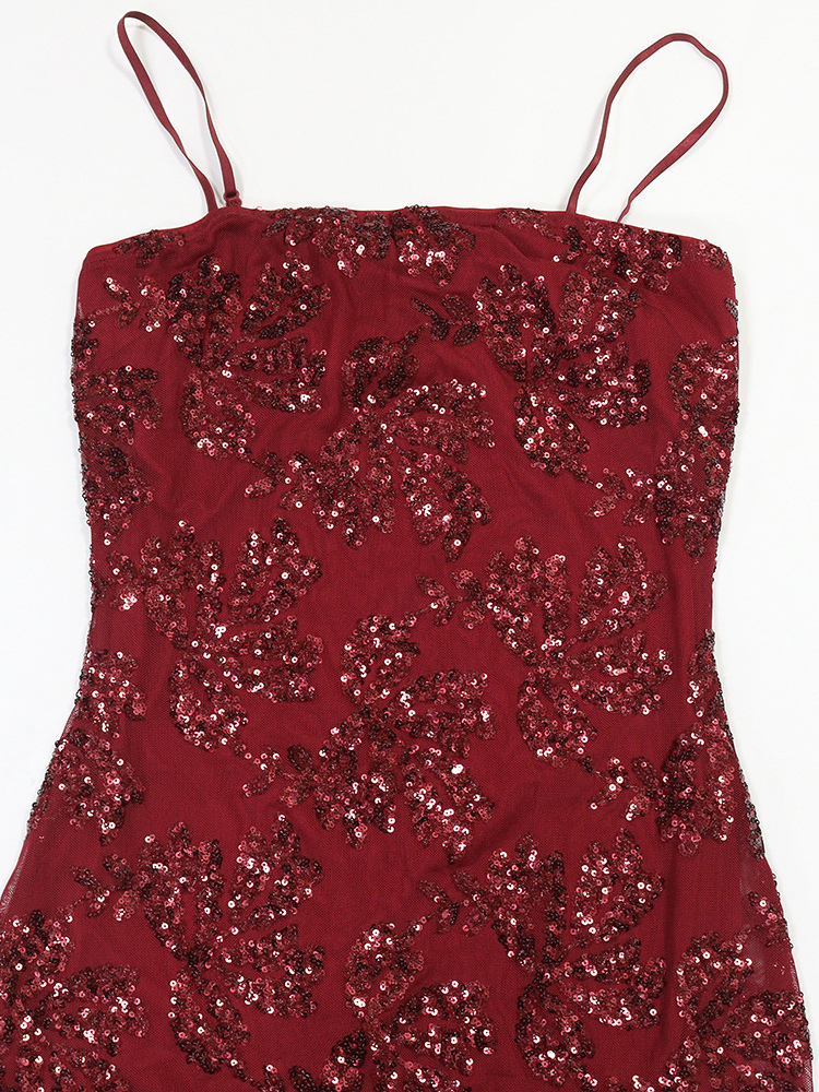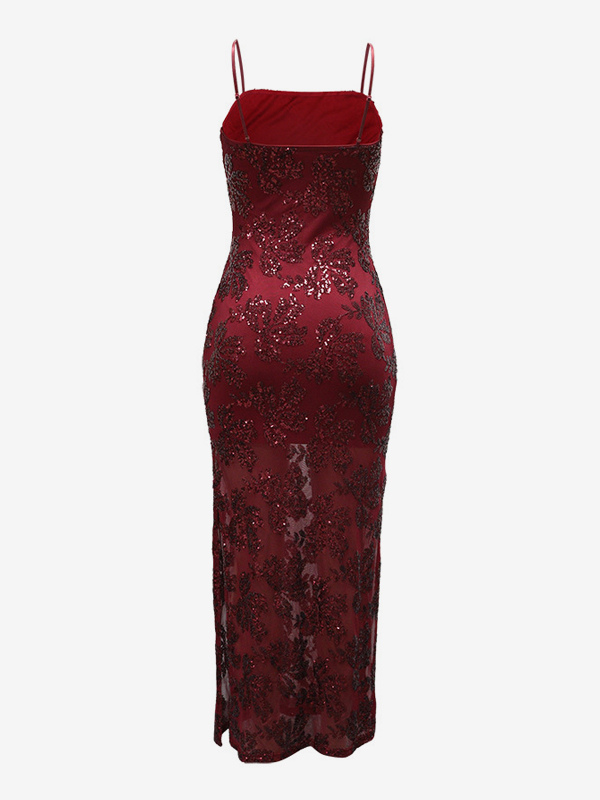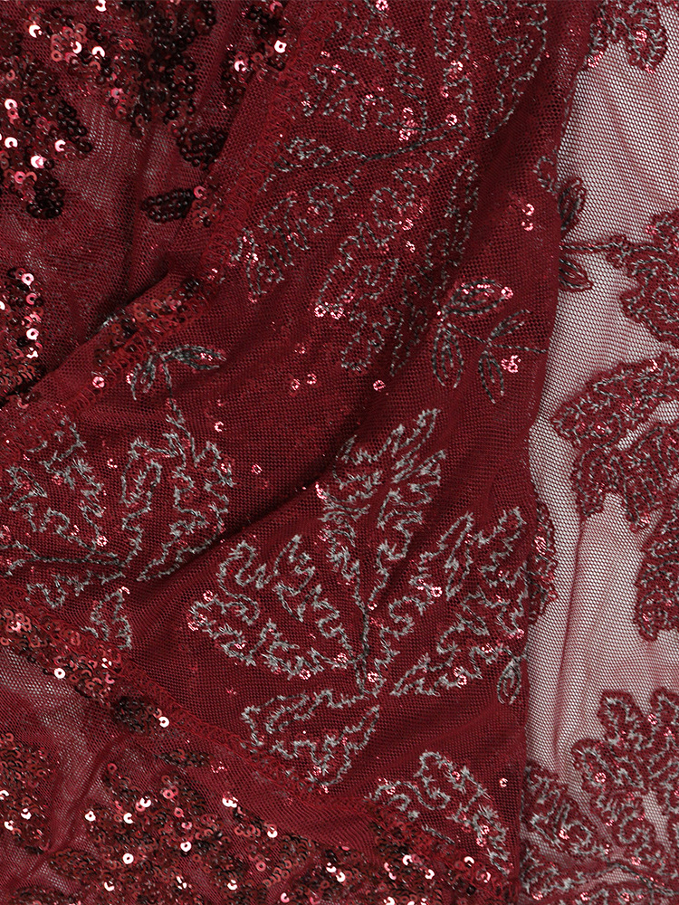 スパンコール付きフローラル刺繍入りシアーヘムボディコンマキシドレス(レディース)2026