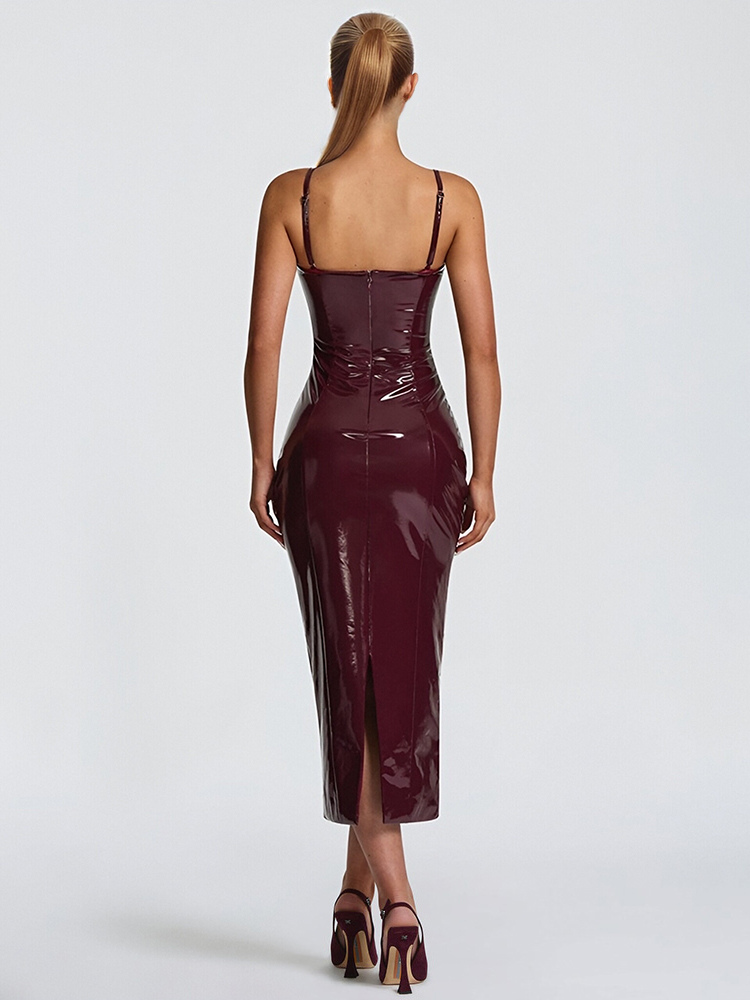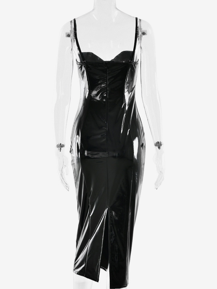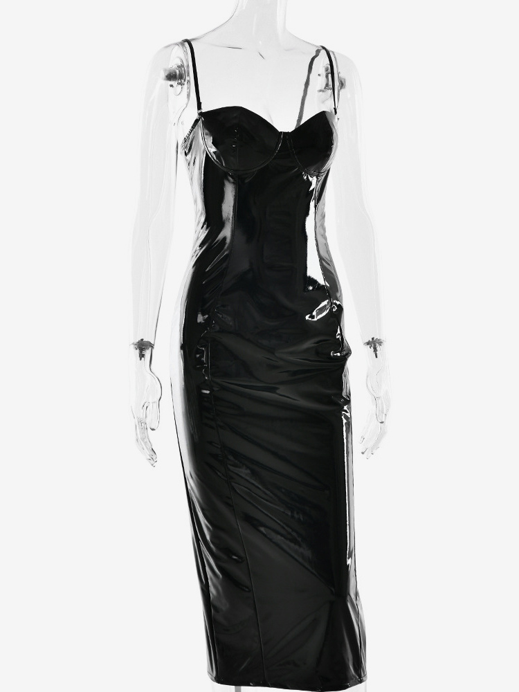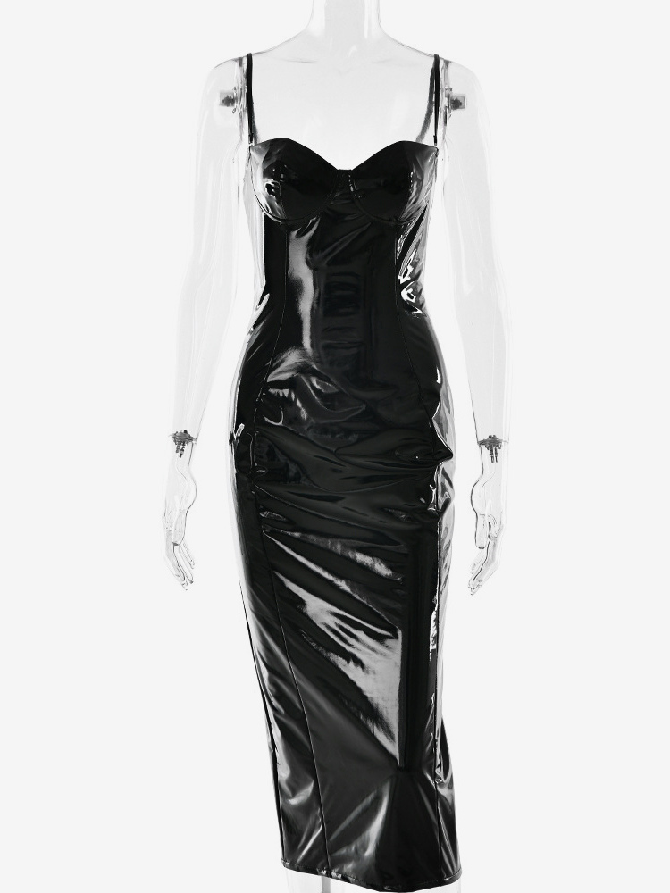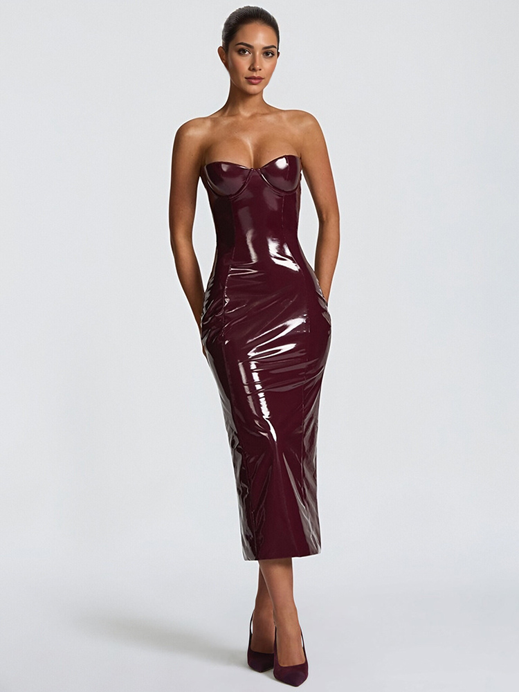 セクシーなエコフレンドリーレザーボディコンミディドレス(レディース)2026