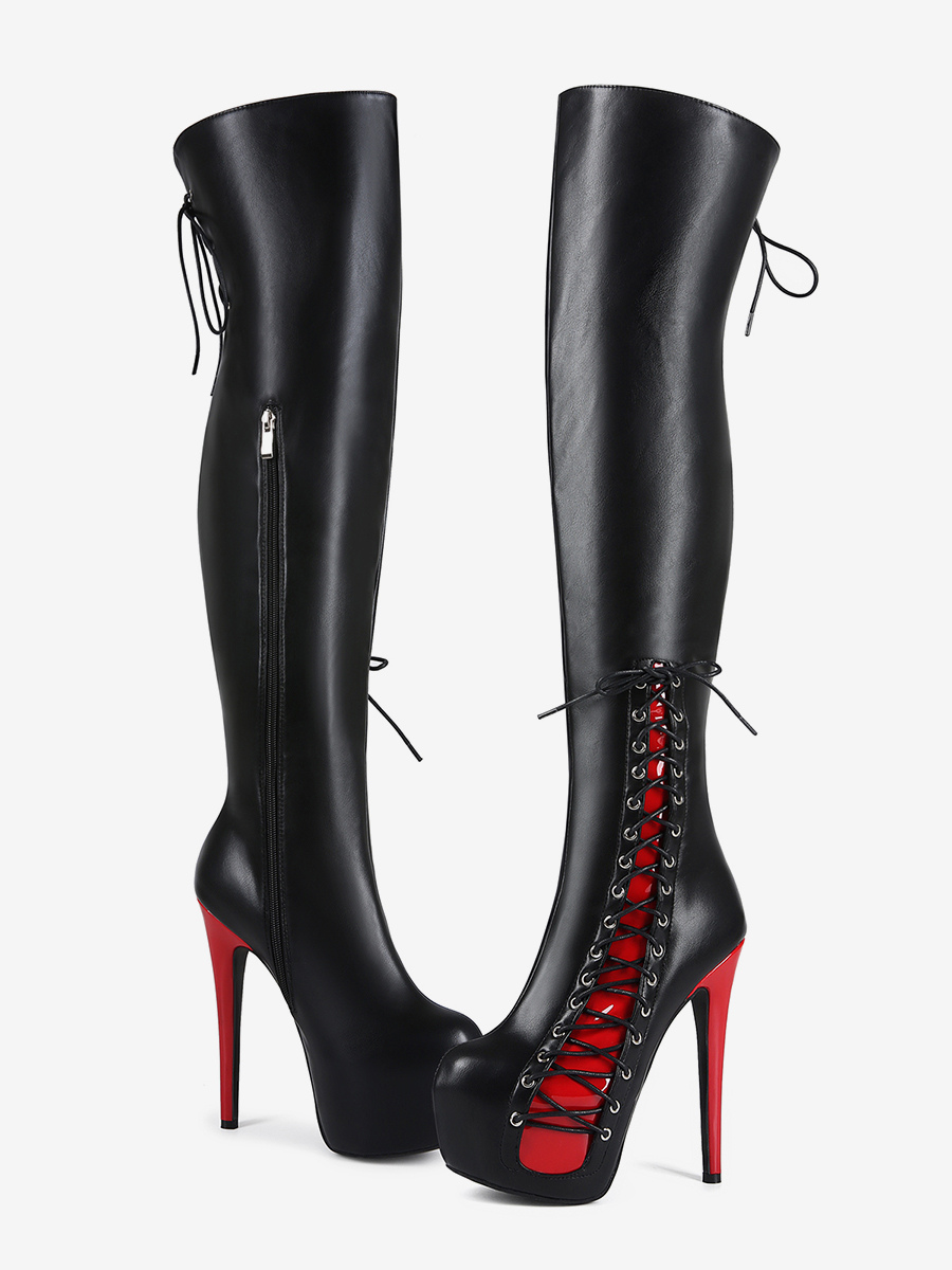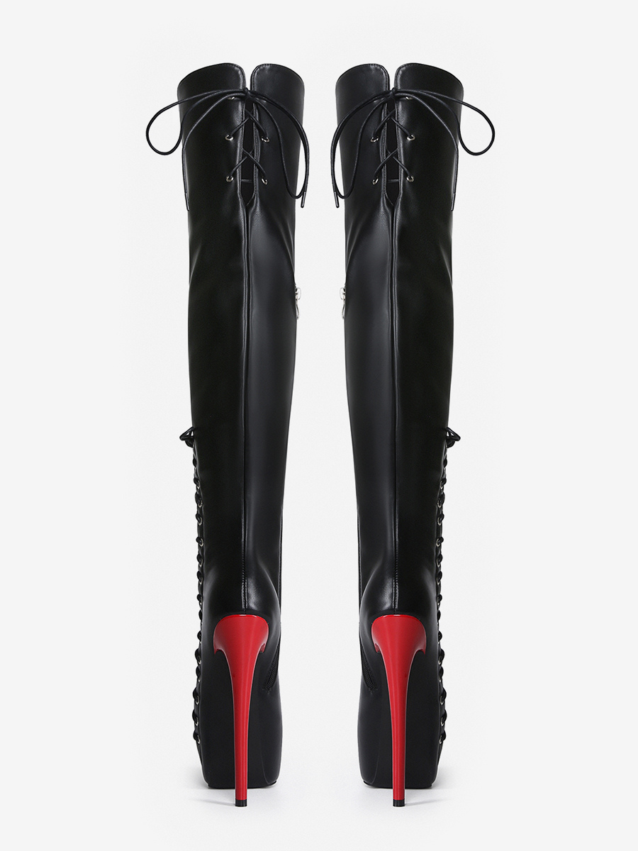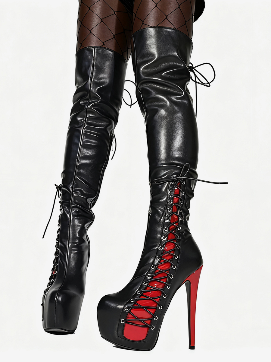 セクシーなサイハイブーツ レディース プラットフォーム レースアップ ハイヒール オーバーニーブーツ