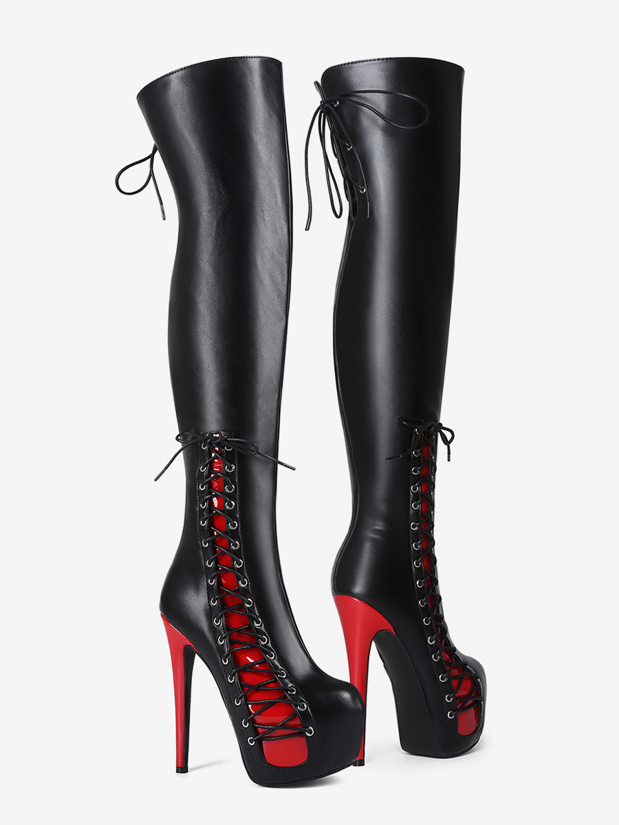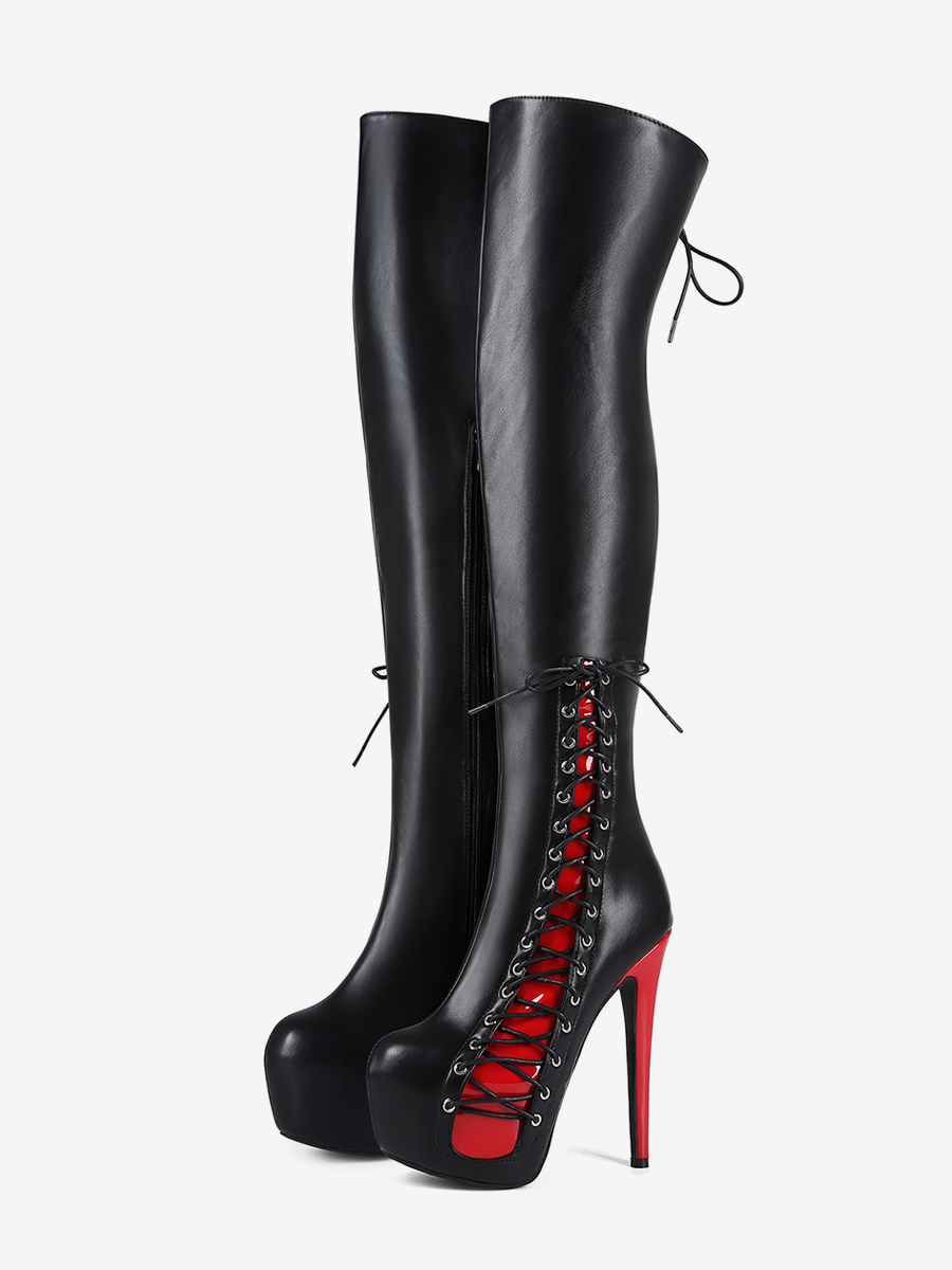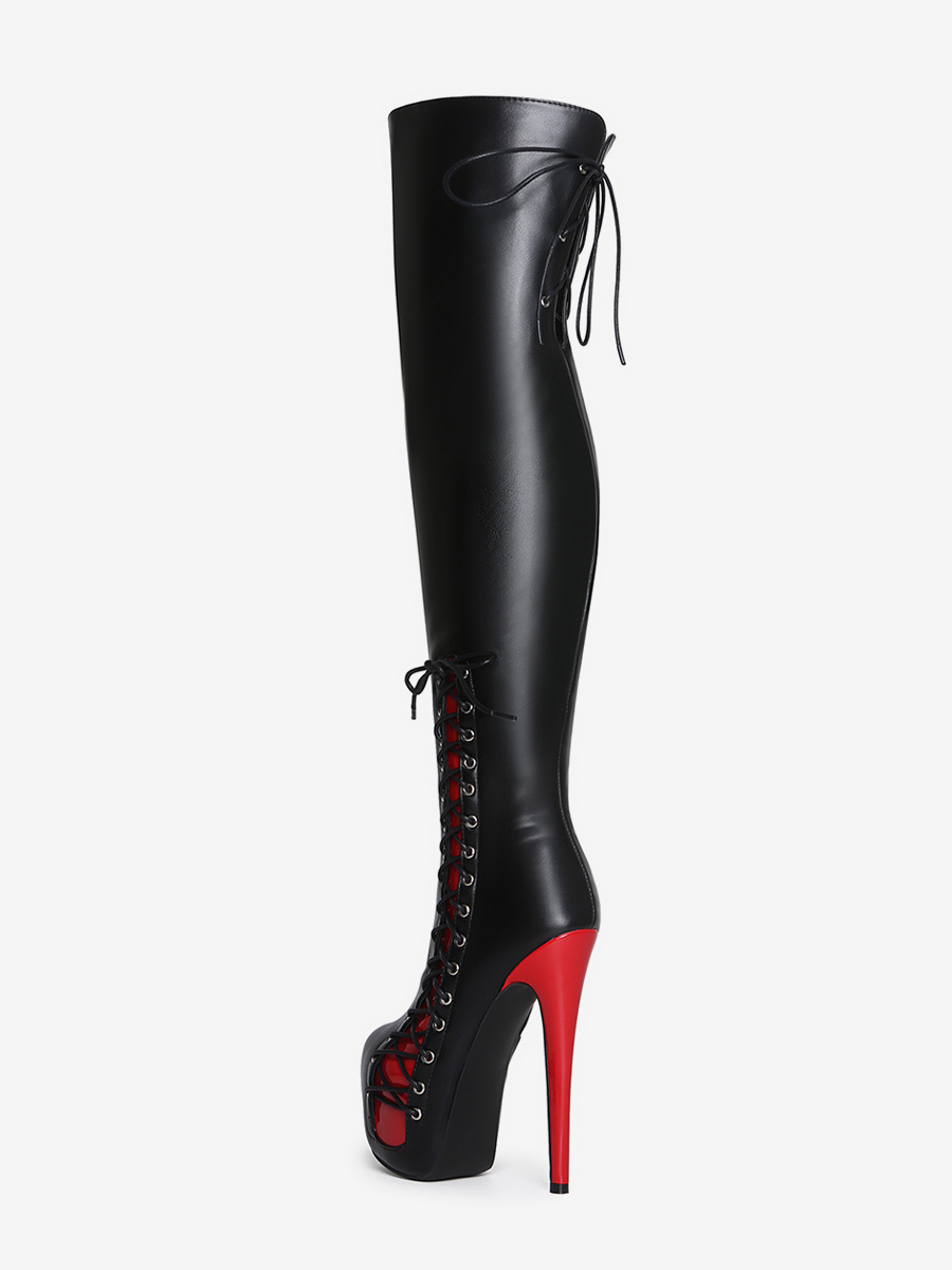 セクシーなサイハイブーツ レディース プラットフォーム レースアップ ハイヒール オーバーニーブーツ