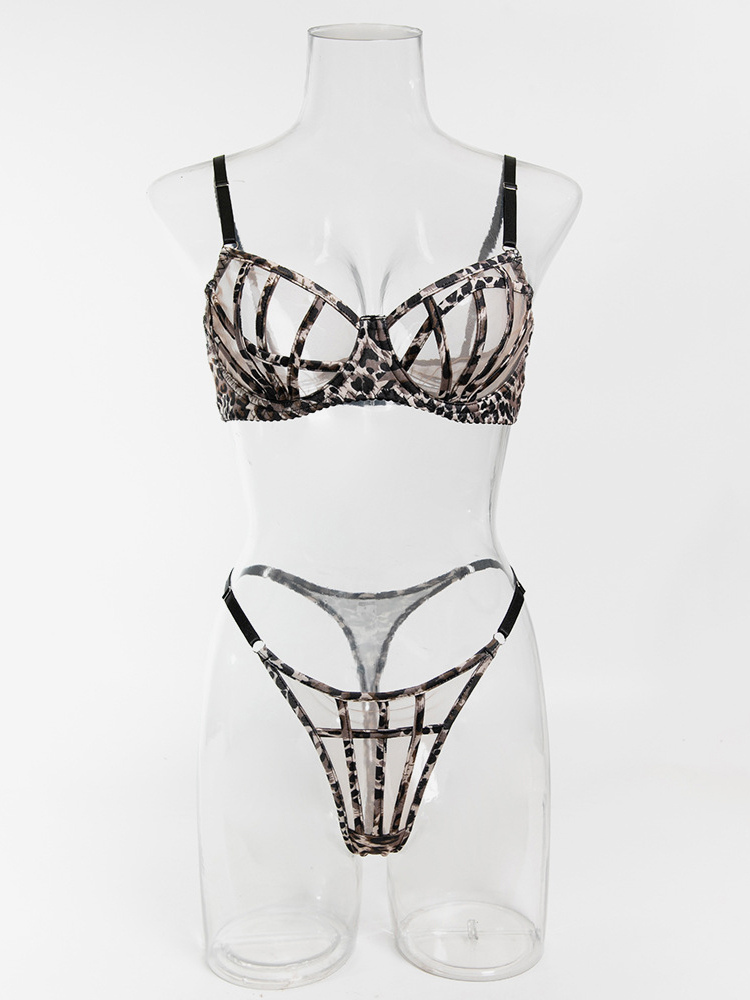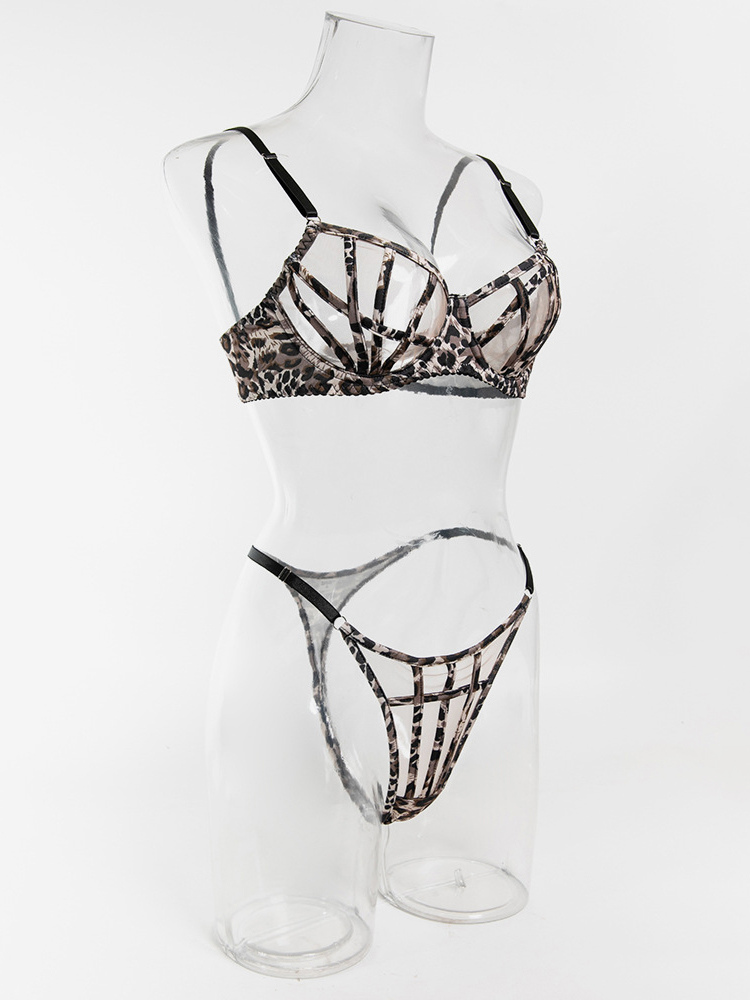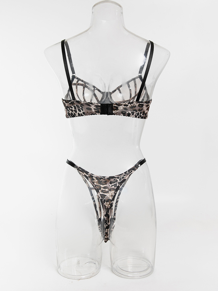 シェイプアップランジェリー レースアップ レオパード柄 ブラウン 2ピース ブラジャー&ショーツ 2点セット