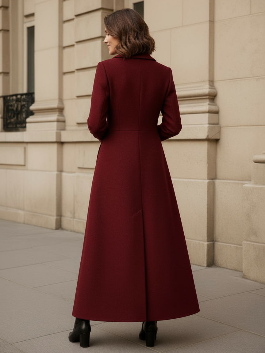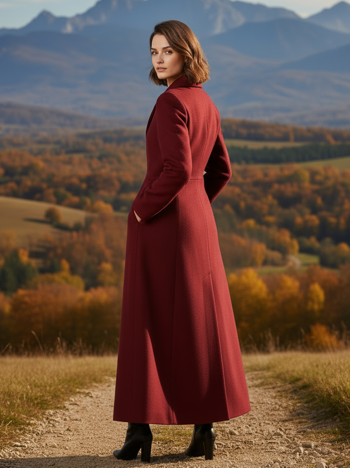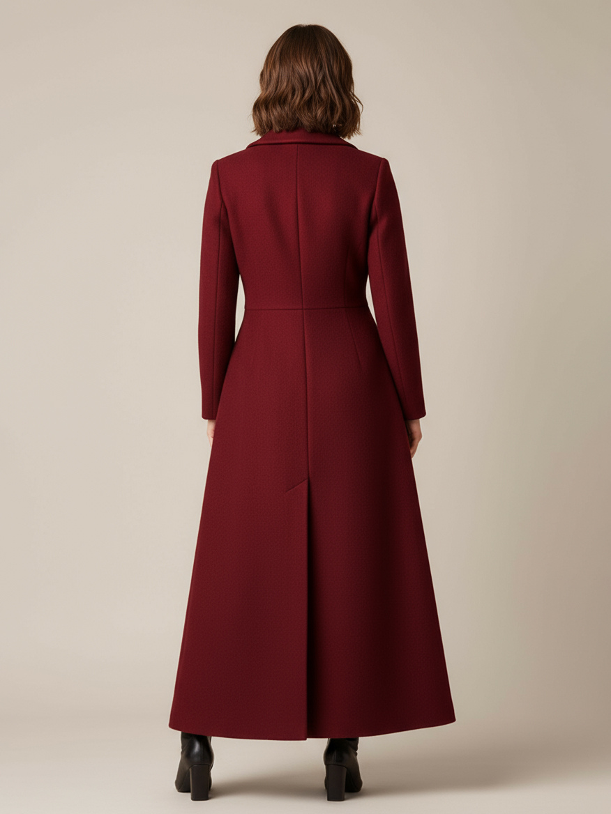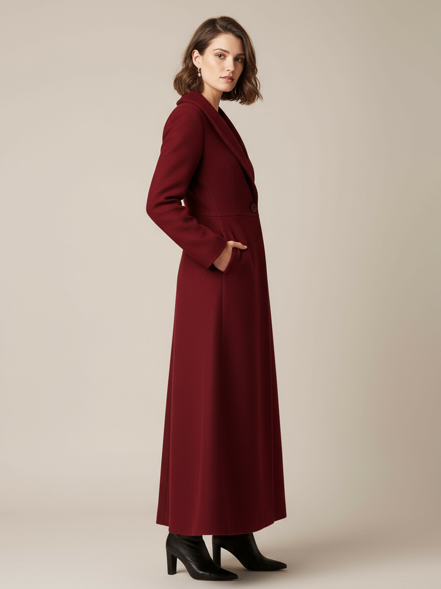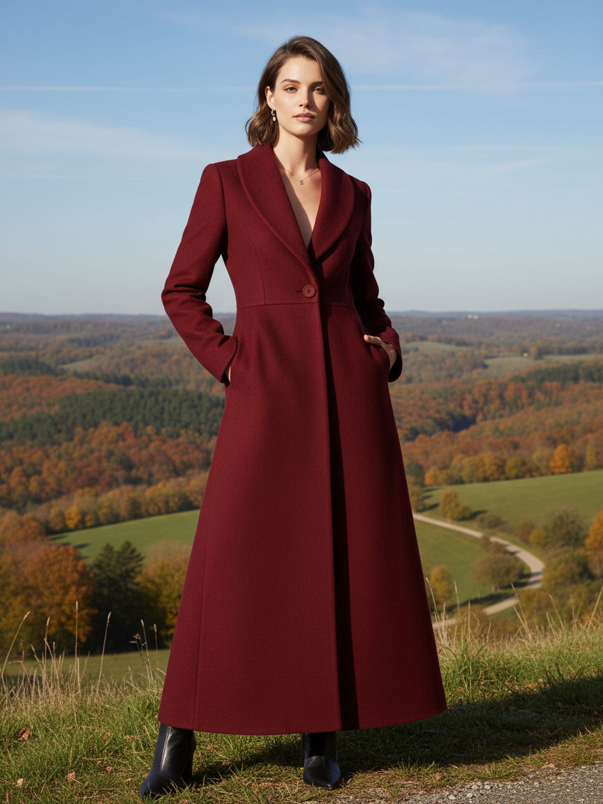 ショールカラーのフルレングスウールコート(Aライン、Vネック、レディース)2025