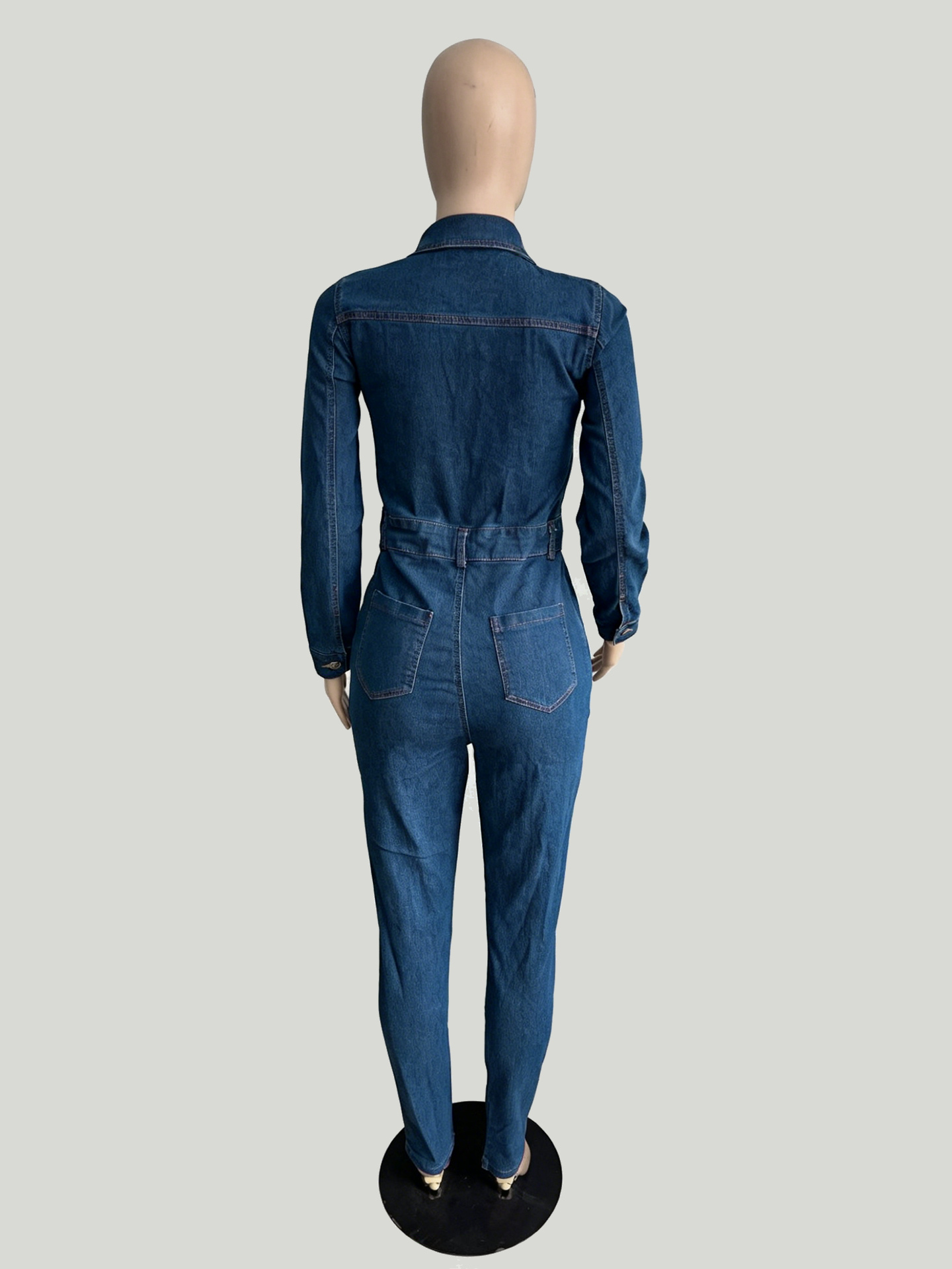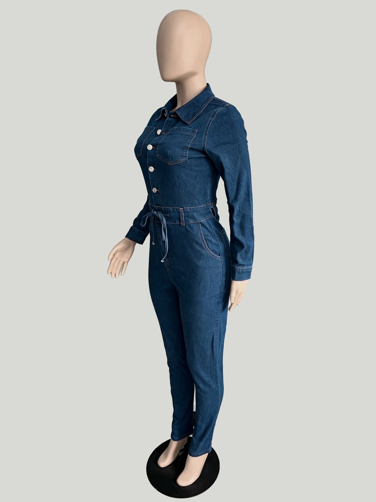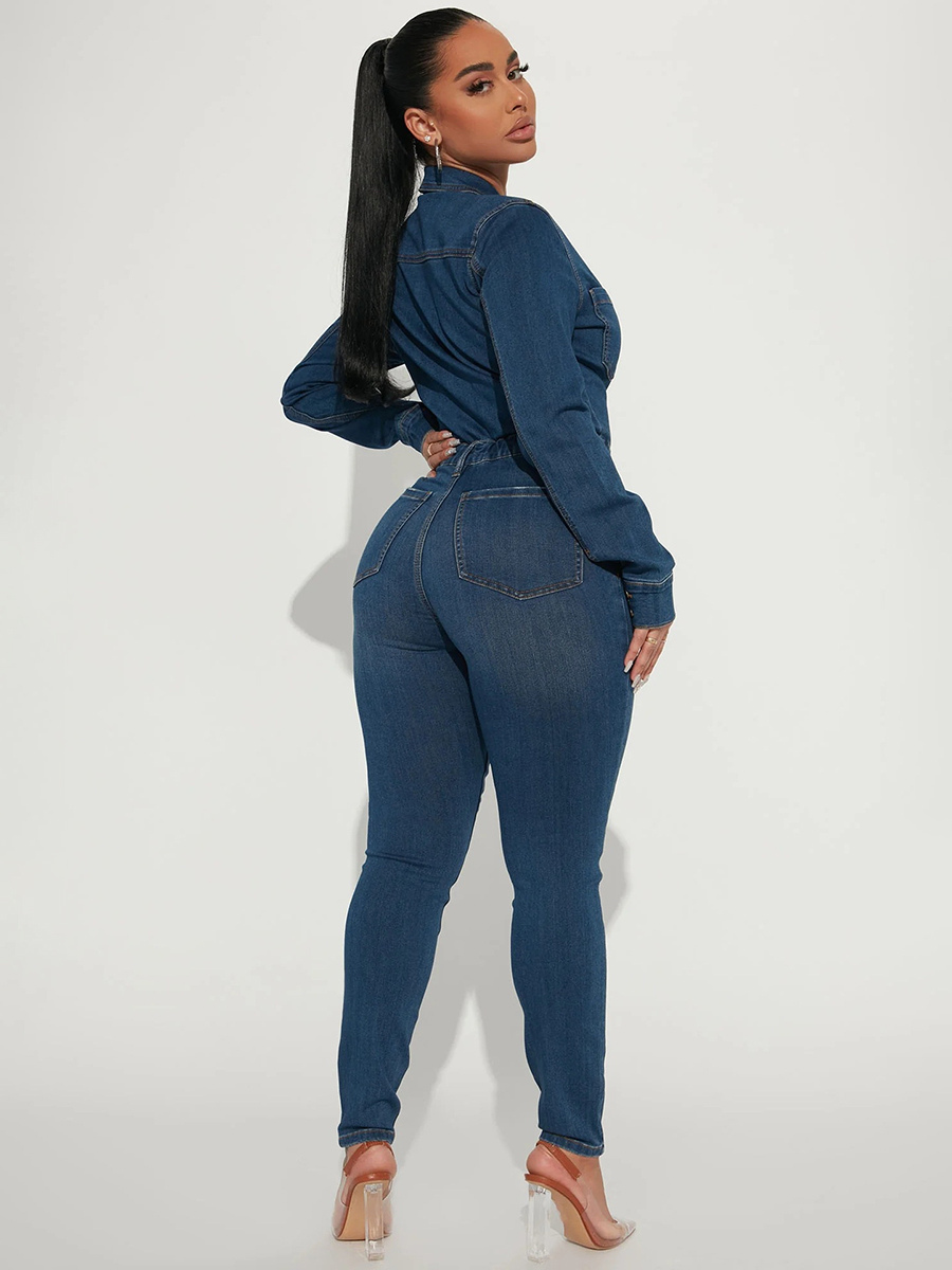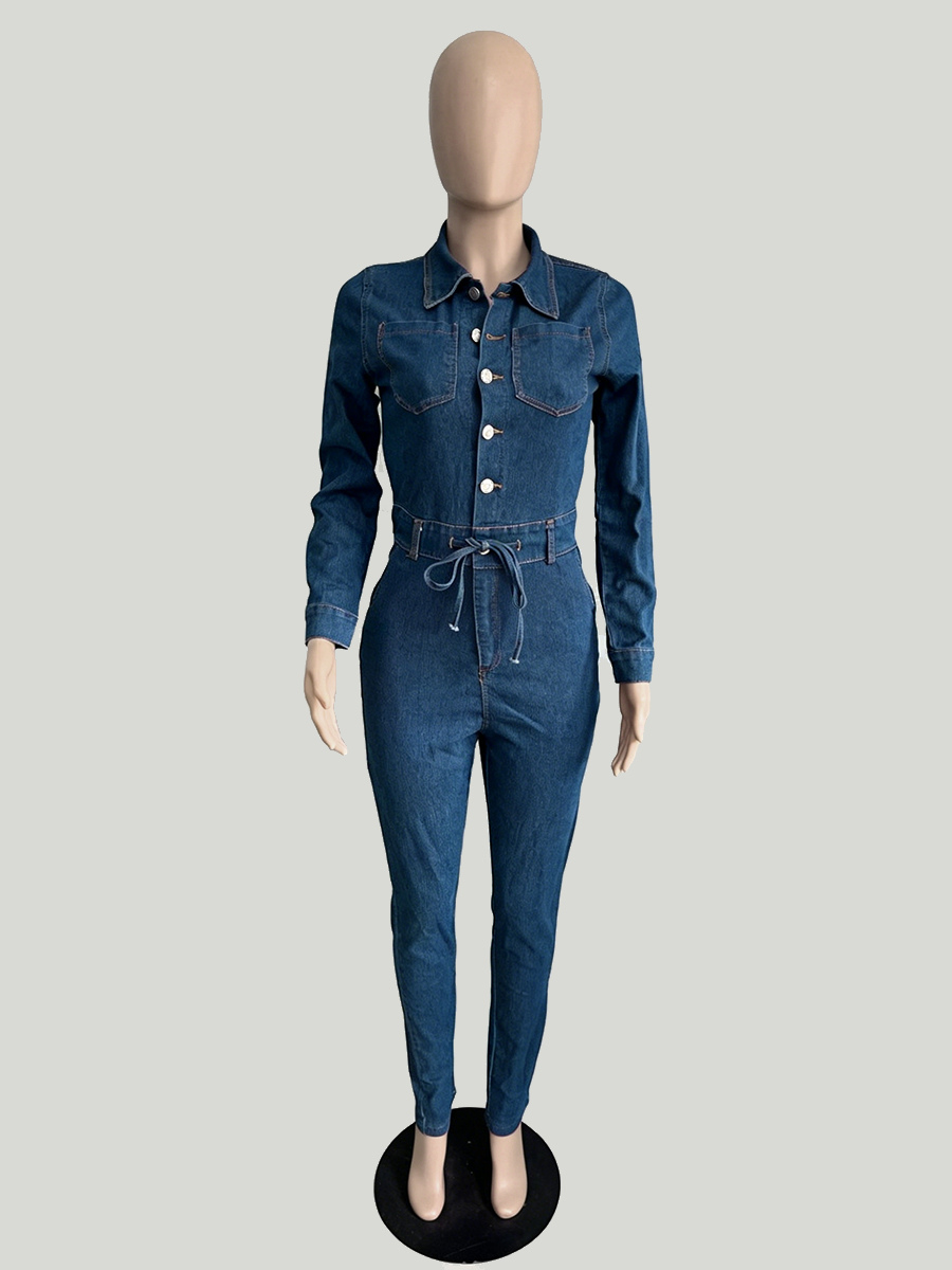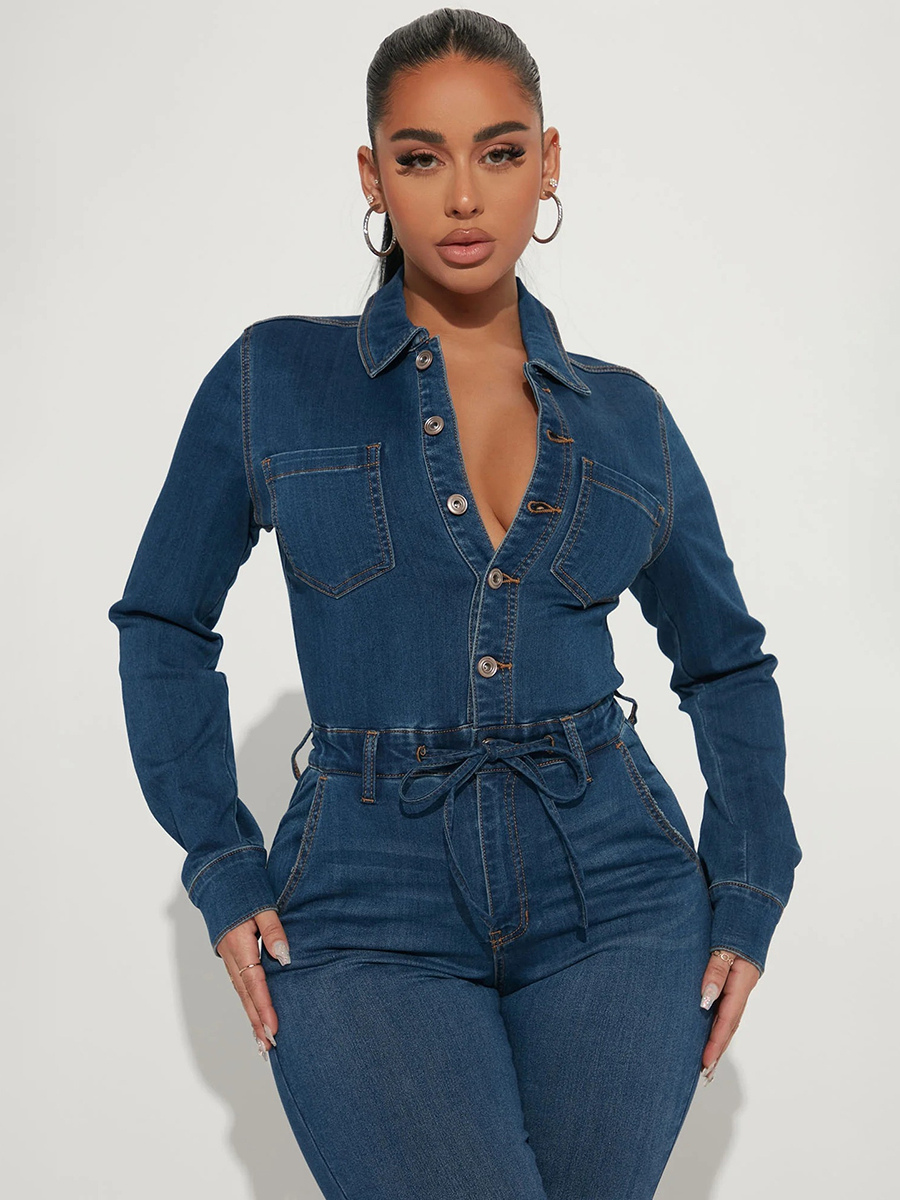 レディース用スキニーデニムジャンプスーツ - ダークウォッシュ セクシー ボディコン ドローストリングウエスト スリムフィット ジーンズロンパース - スプリングカジュアルクラブ 2026