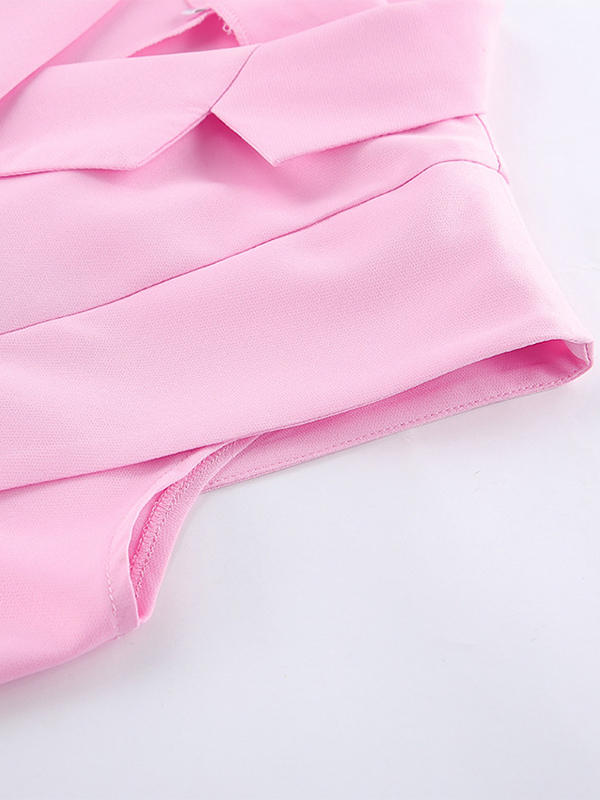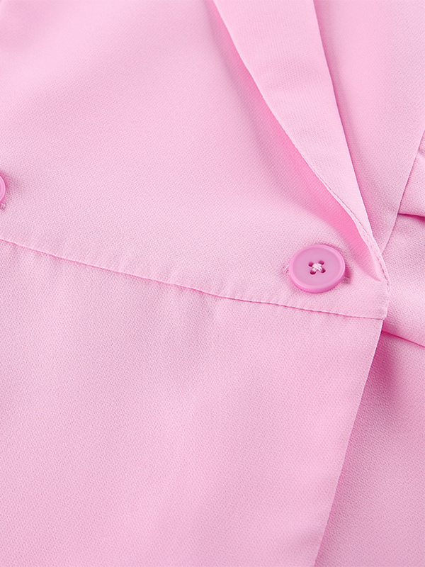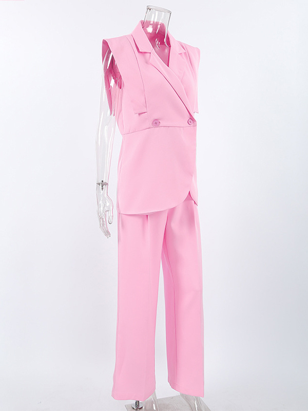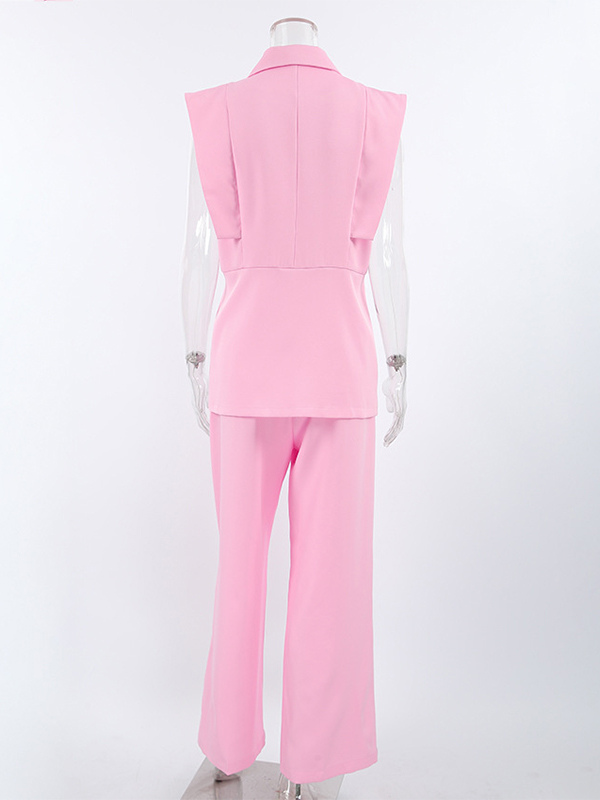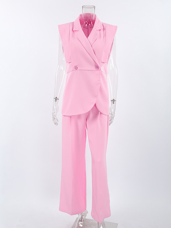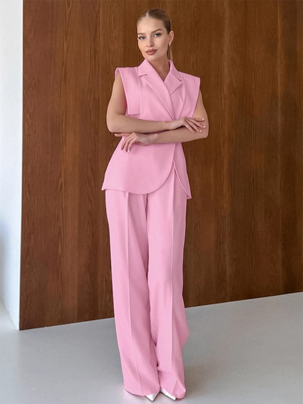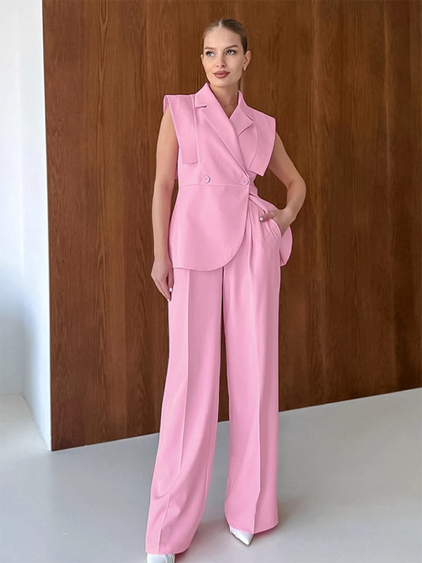 レディース用ノースリーブブレザーセット(ビジネスカジュアル) - ピンクのシックなダブルブレストテーラードカット - 2026年夏のワークスタイル