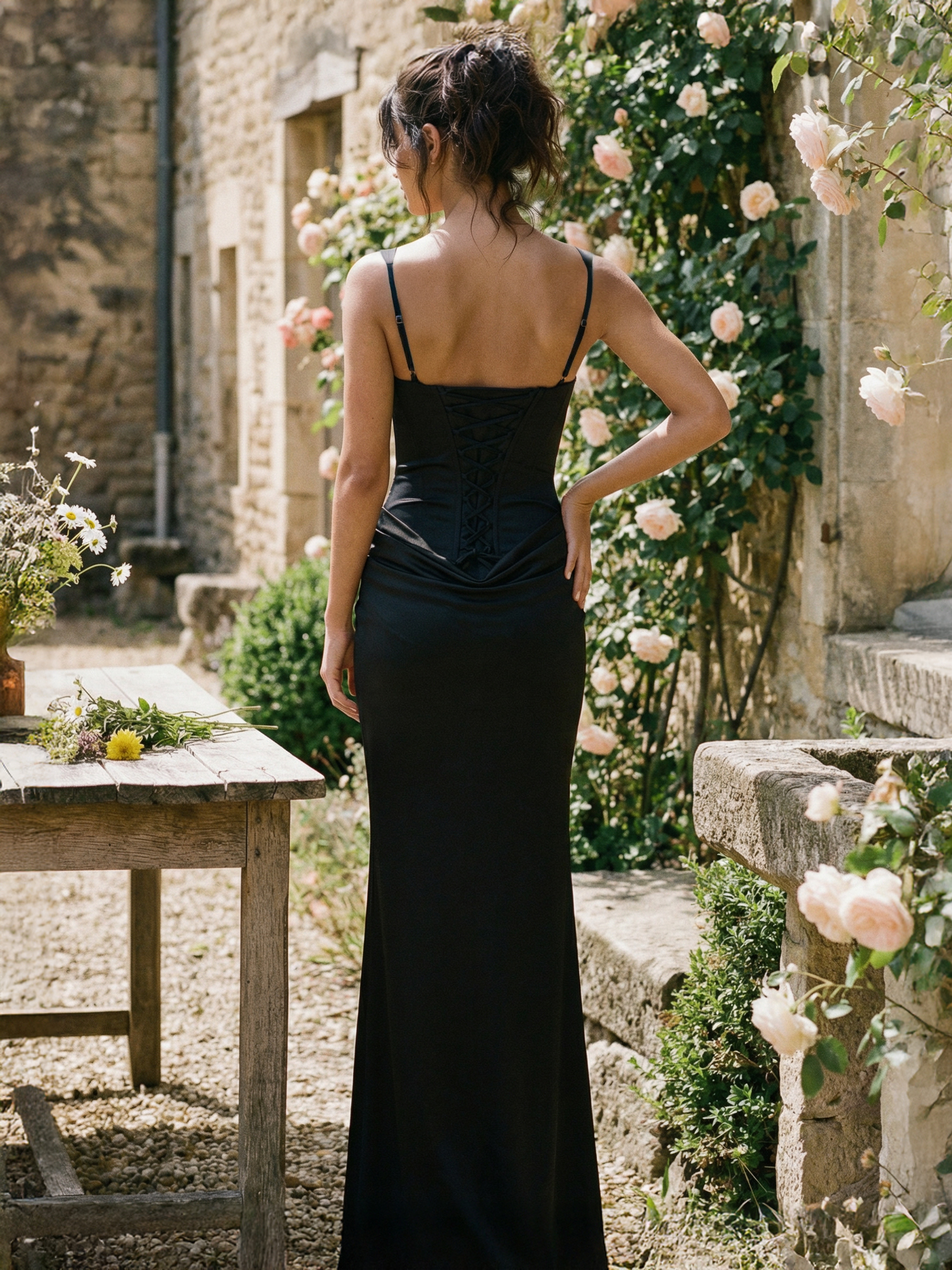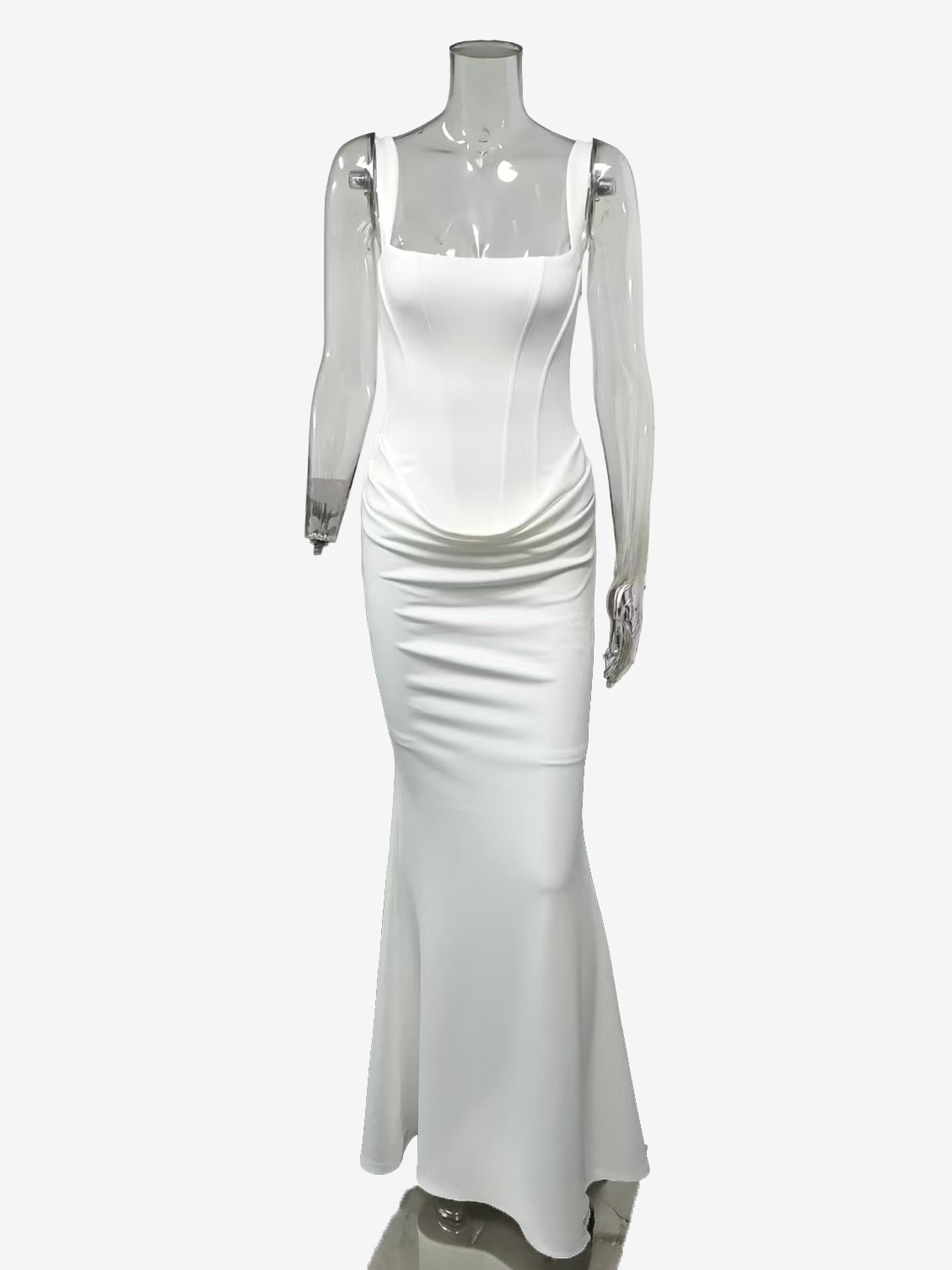 スクエアネック ボディコン レースアップ バックシャーリング マーメイド マキシ パーティードレス レディース 2026