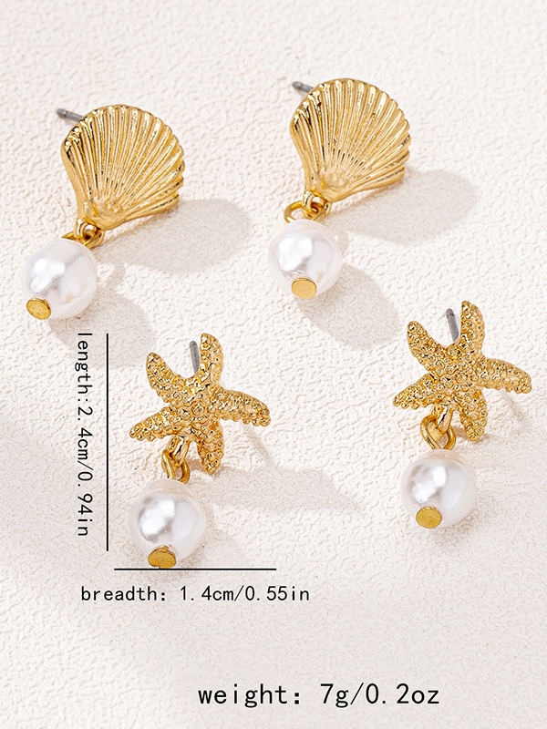 ヒトデと貝殻の形をしたオーシャンスタイルのイヤリング(女性用)2025