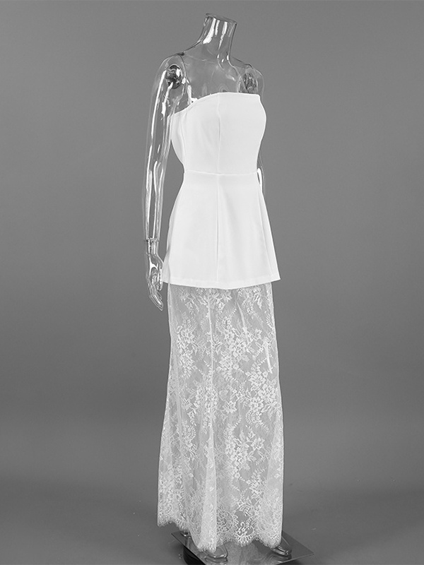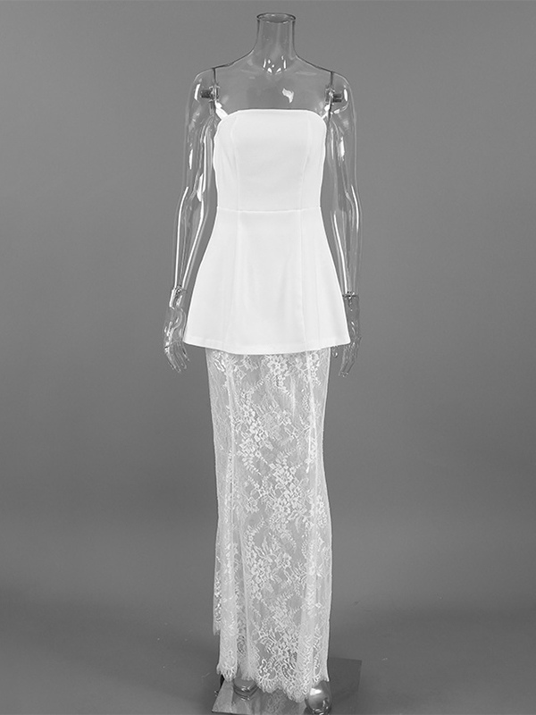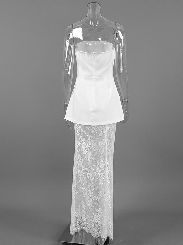 ストラップレストップス&レースマキシスカート レディースツーピースセット - エレガントなスリムフィット花柄レース - 夏のパーティクラブナイトウェア 2026