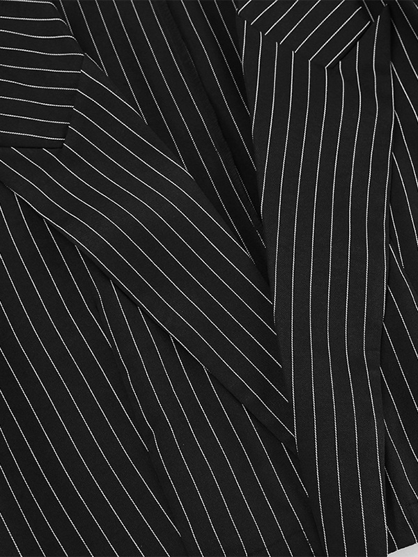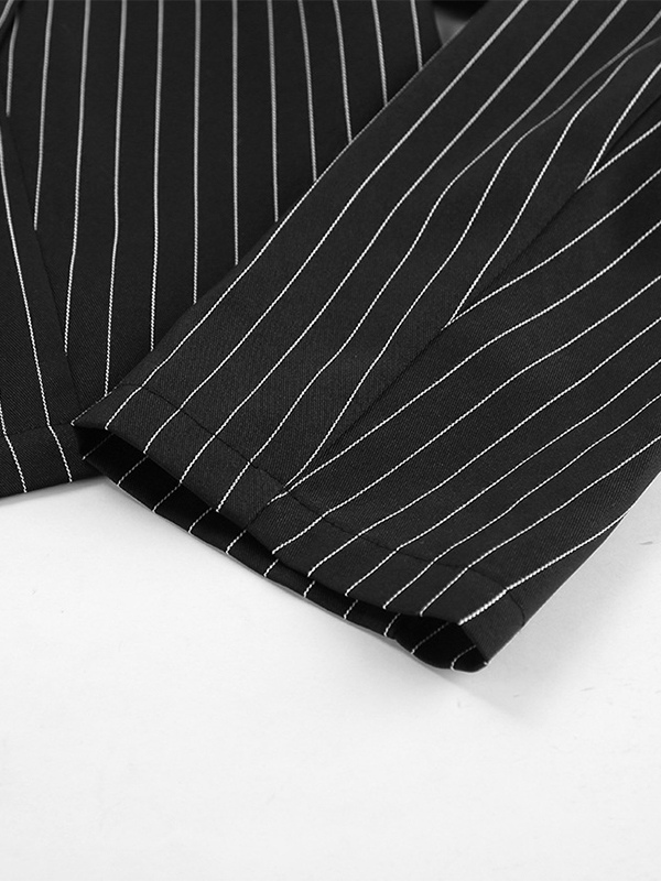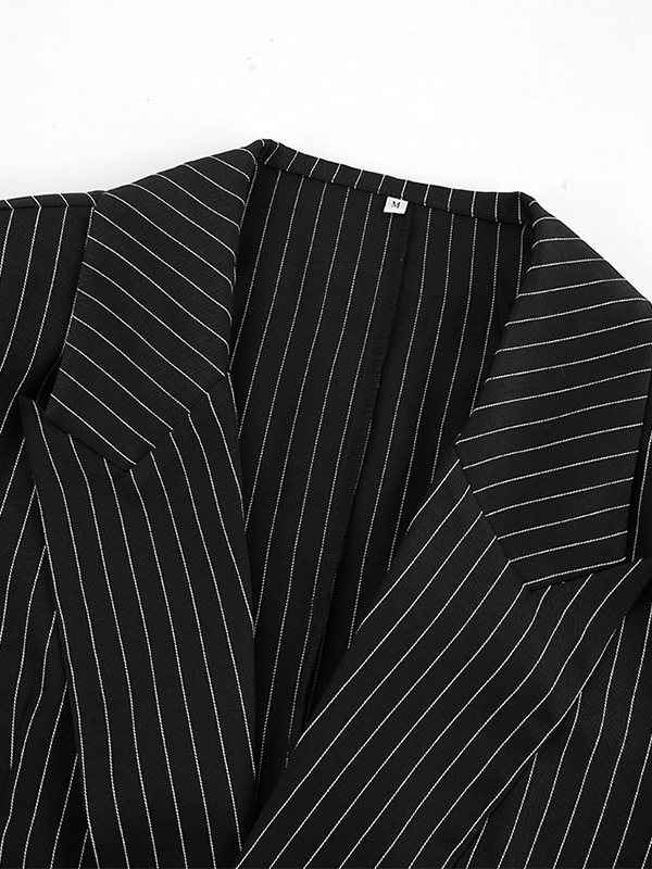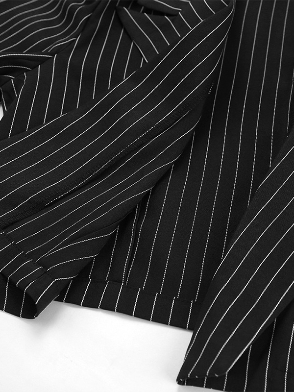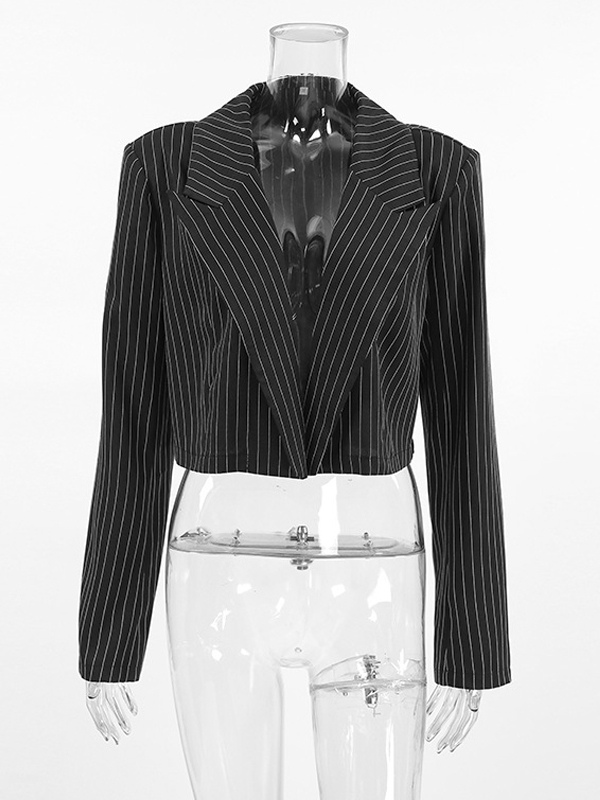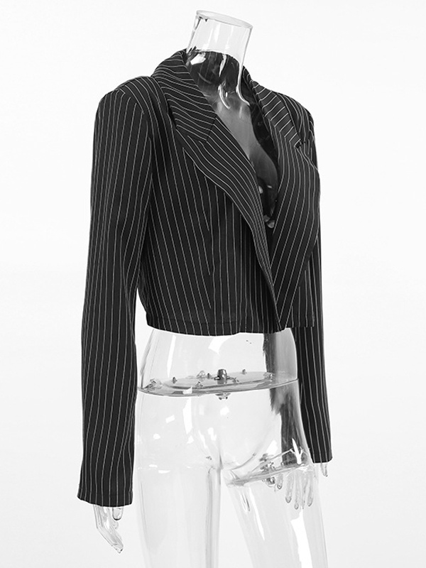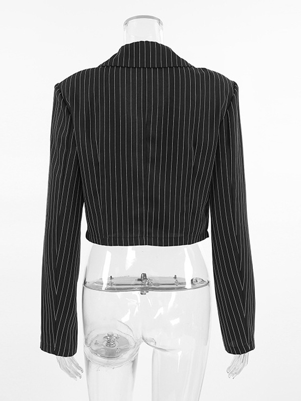 2025年レディース向け、深めのVネックストライプ柄クロップド丈ブレザー