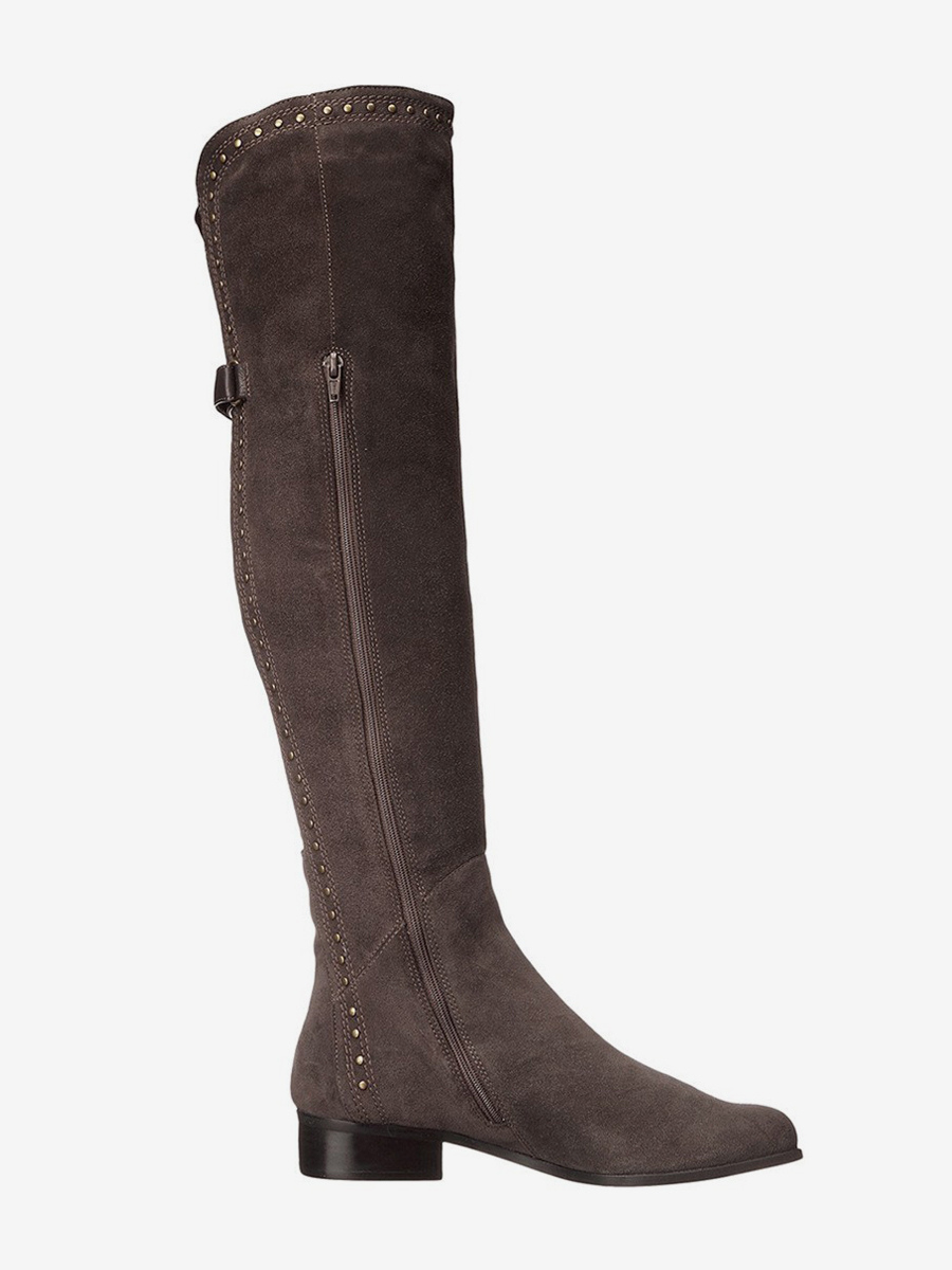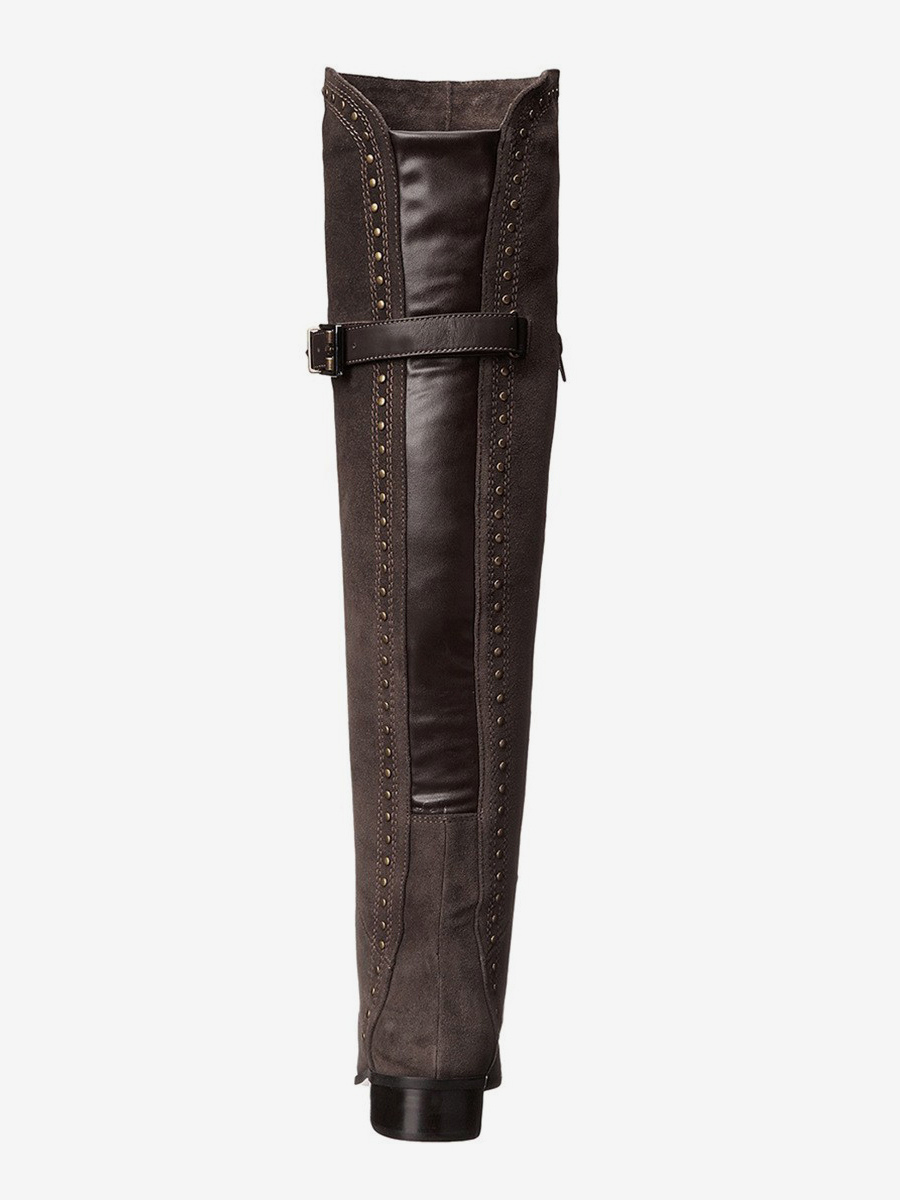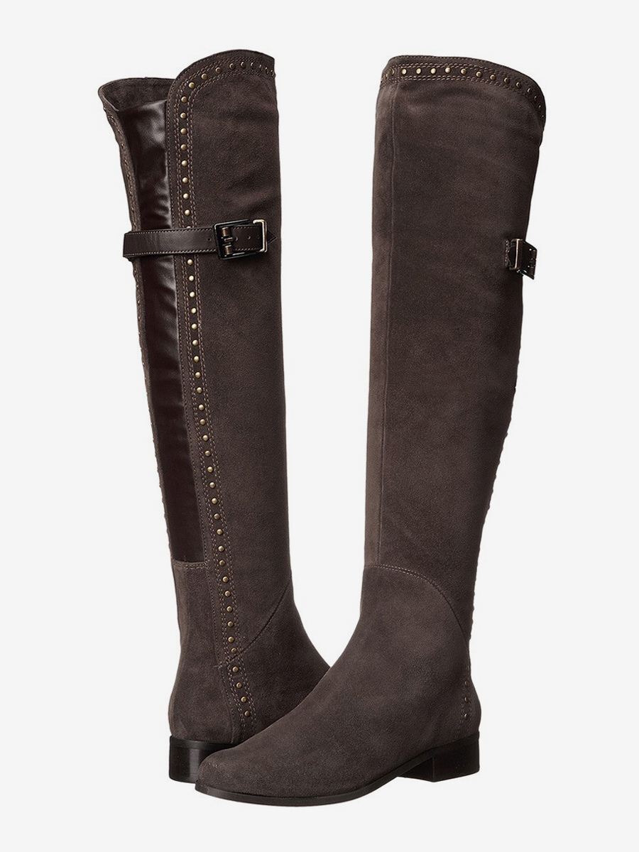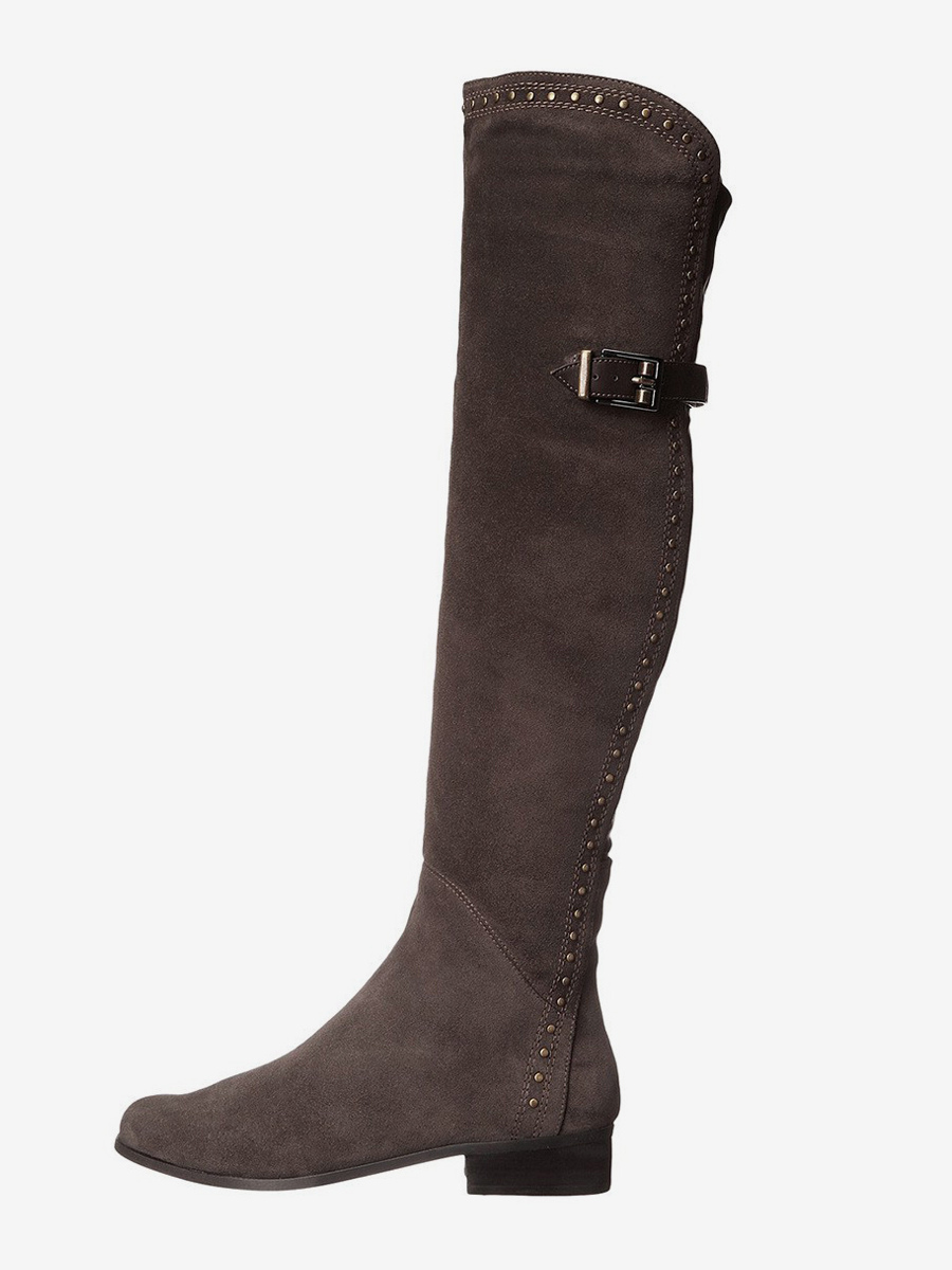 スエードオーバーニーブーツ レディース ラウンドトゥ スタッズ フラット サイハイブーツ