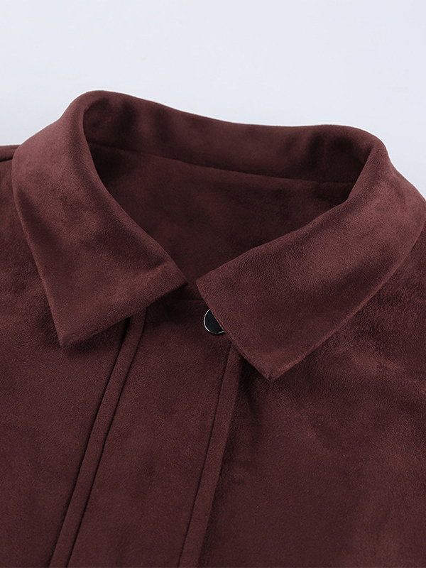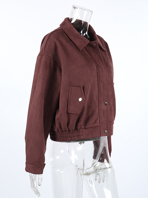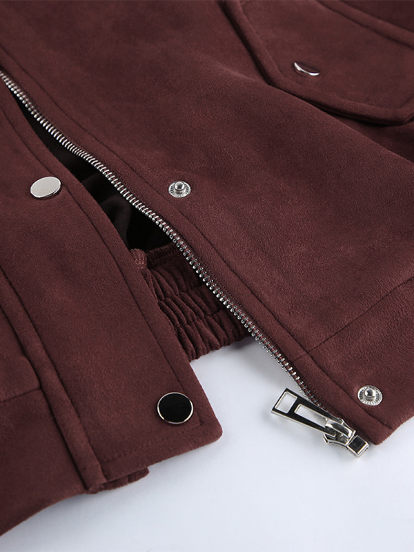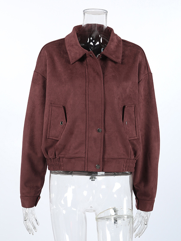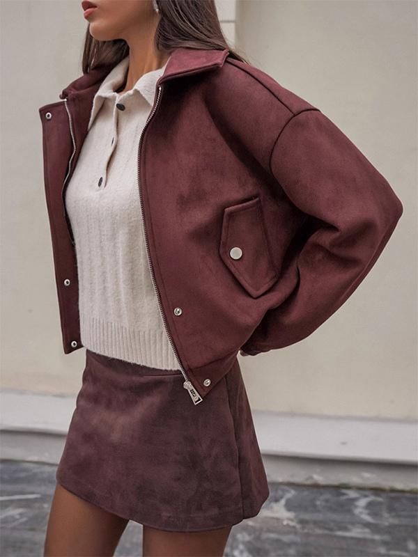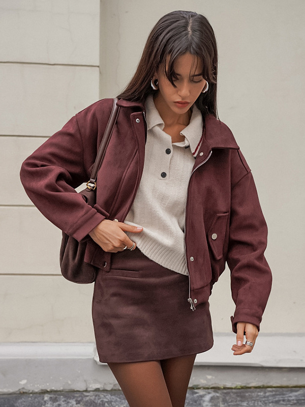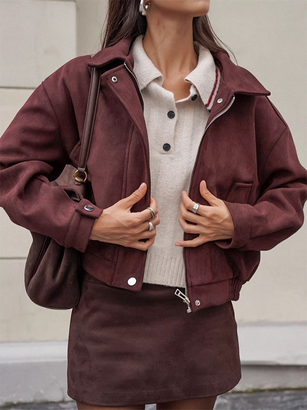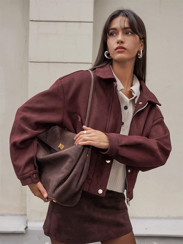 スエードドロップショルダーレディースクロップドジャケット - スタンドカラージップアップスリムフィット - ミニマリスト春カジュアルコーデ2026