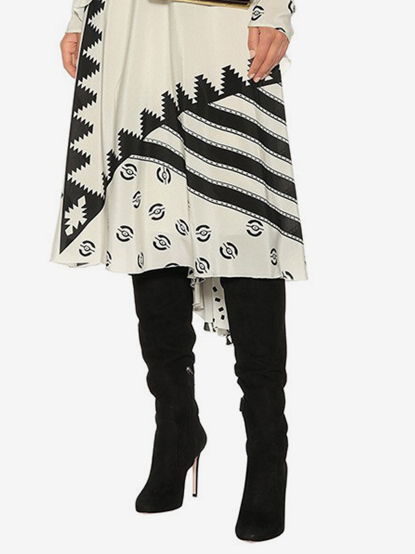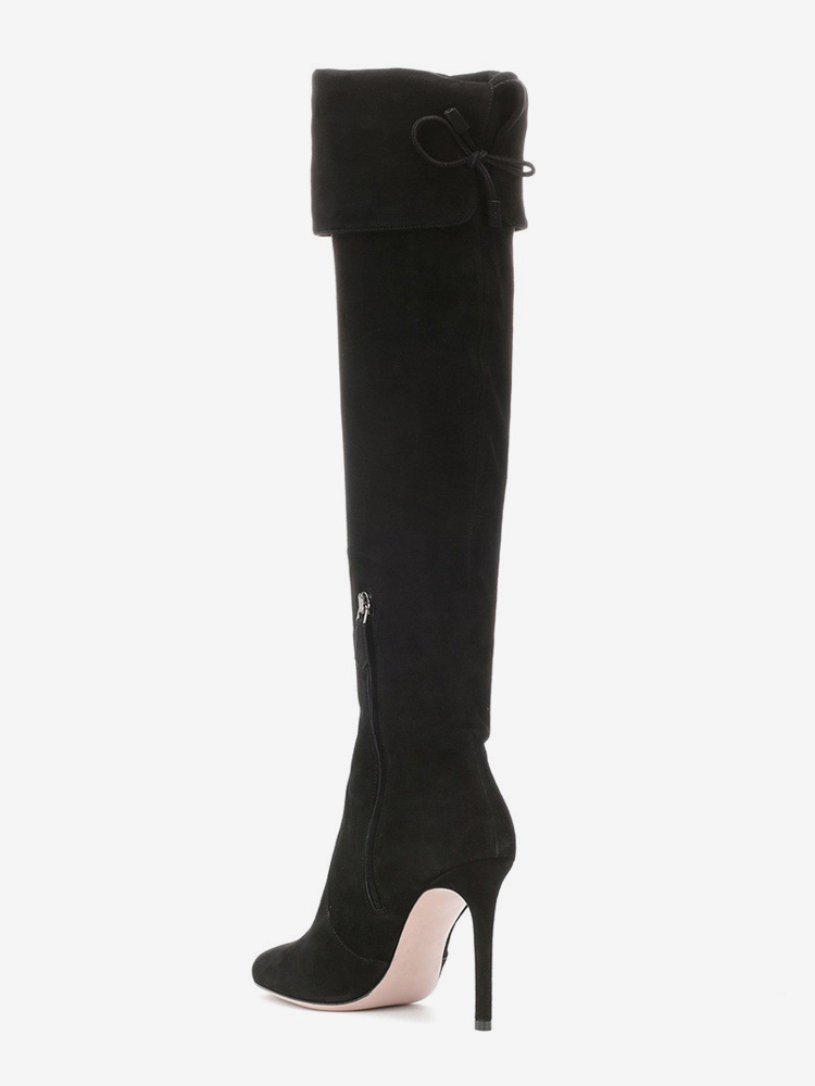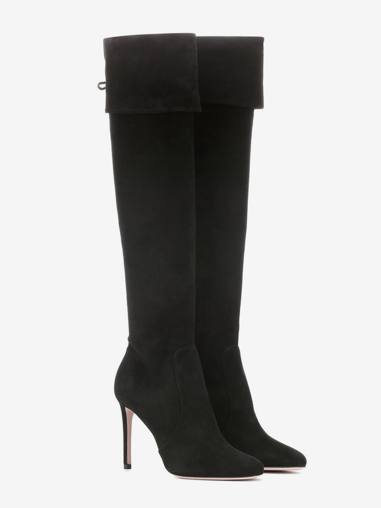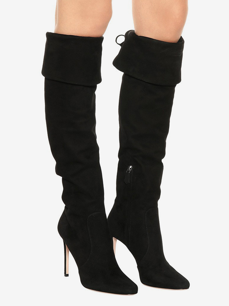 スエードニーハイブーツ ポインテッドトゥ フォールドオーバー ハイヒールブーツ レディース