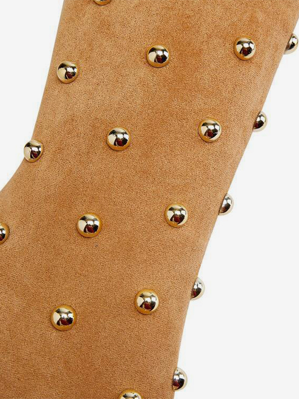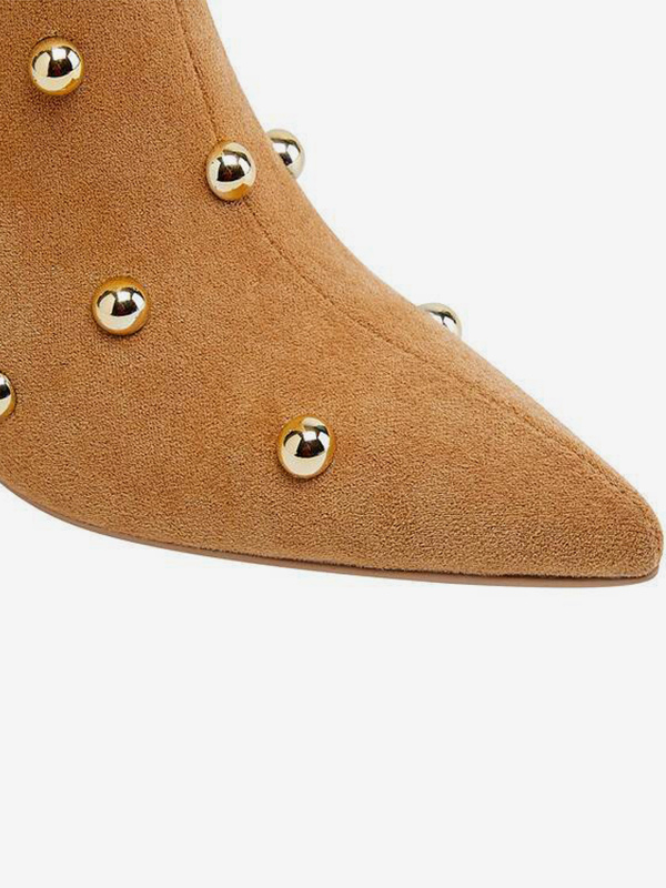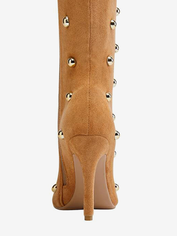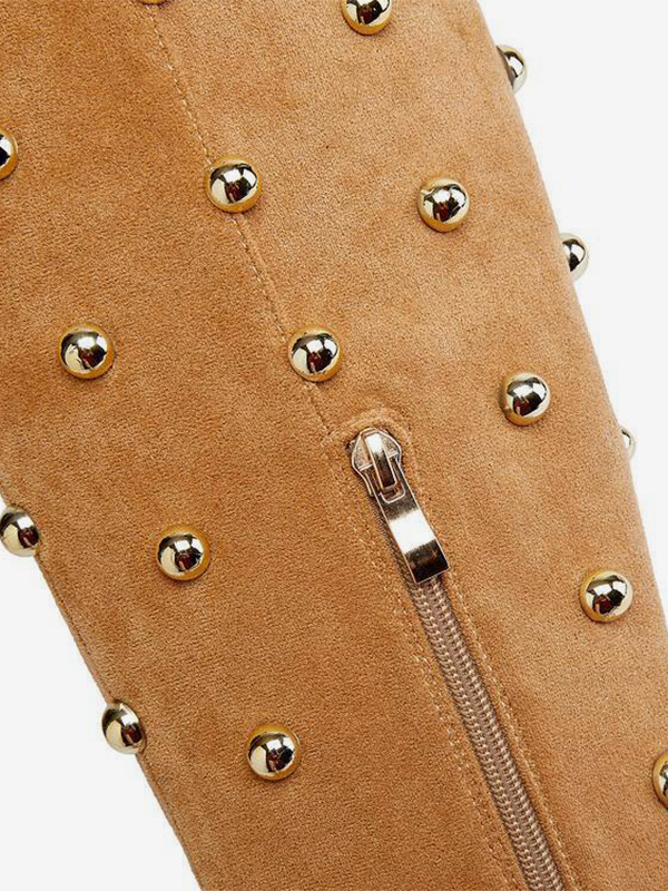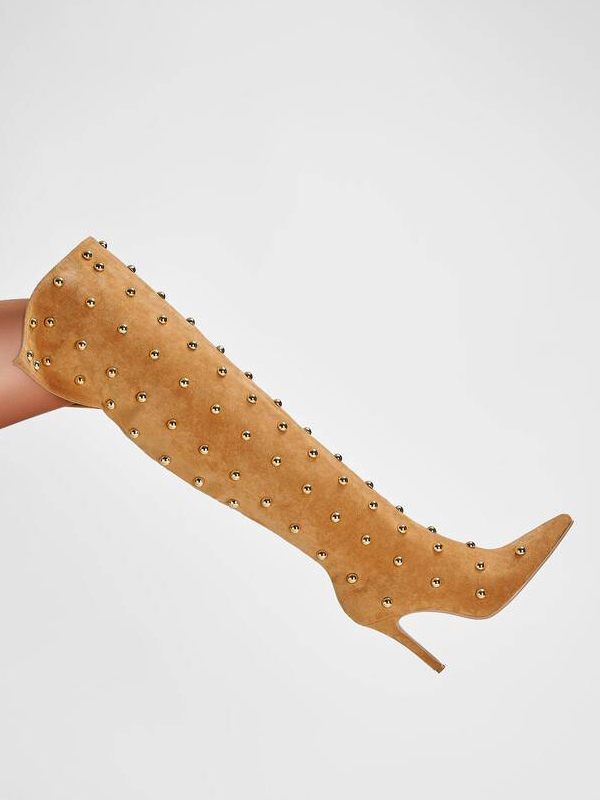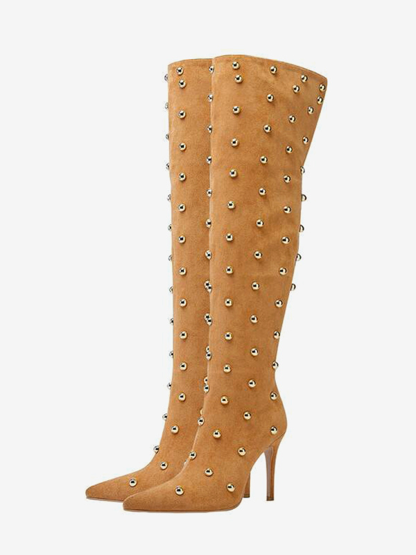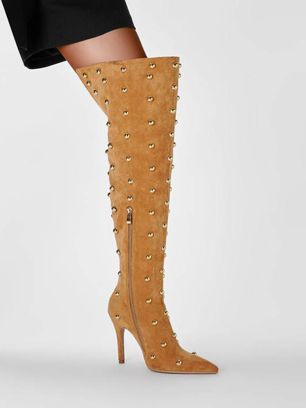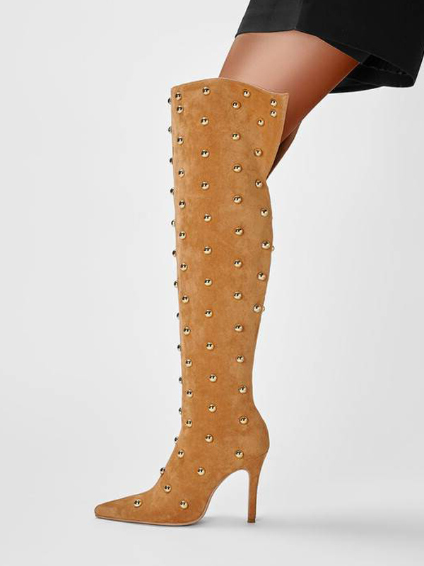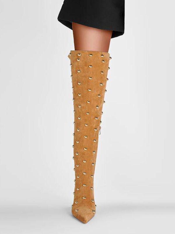 スエードのオーバーニーブーツ、ポインテッドトゥ、ビーズ付きハイヒール、サイハイブーツ