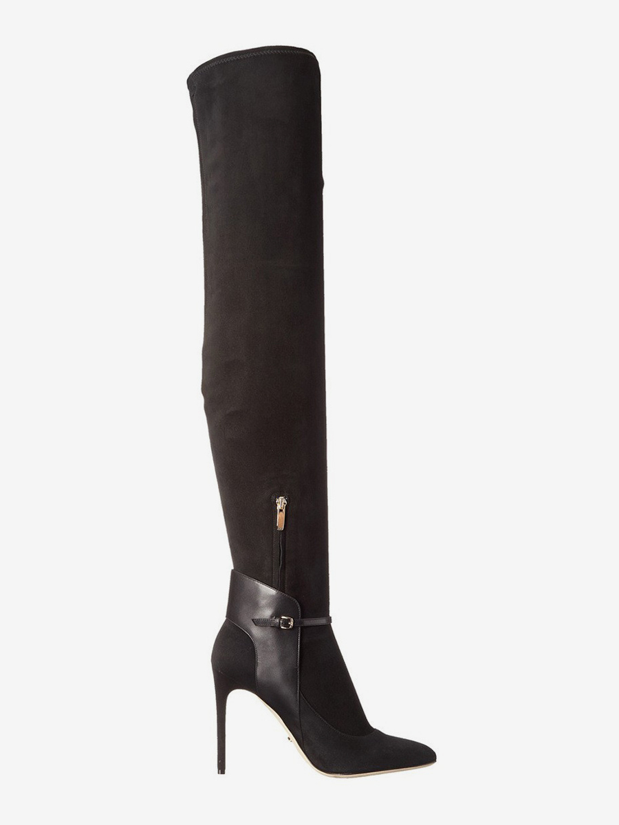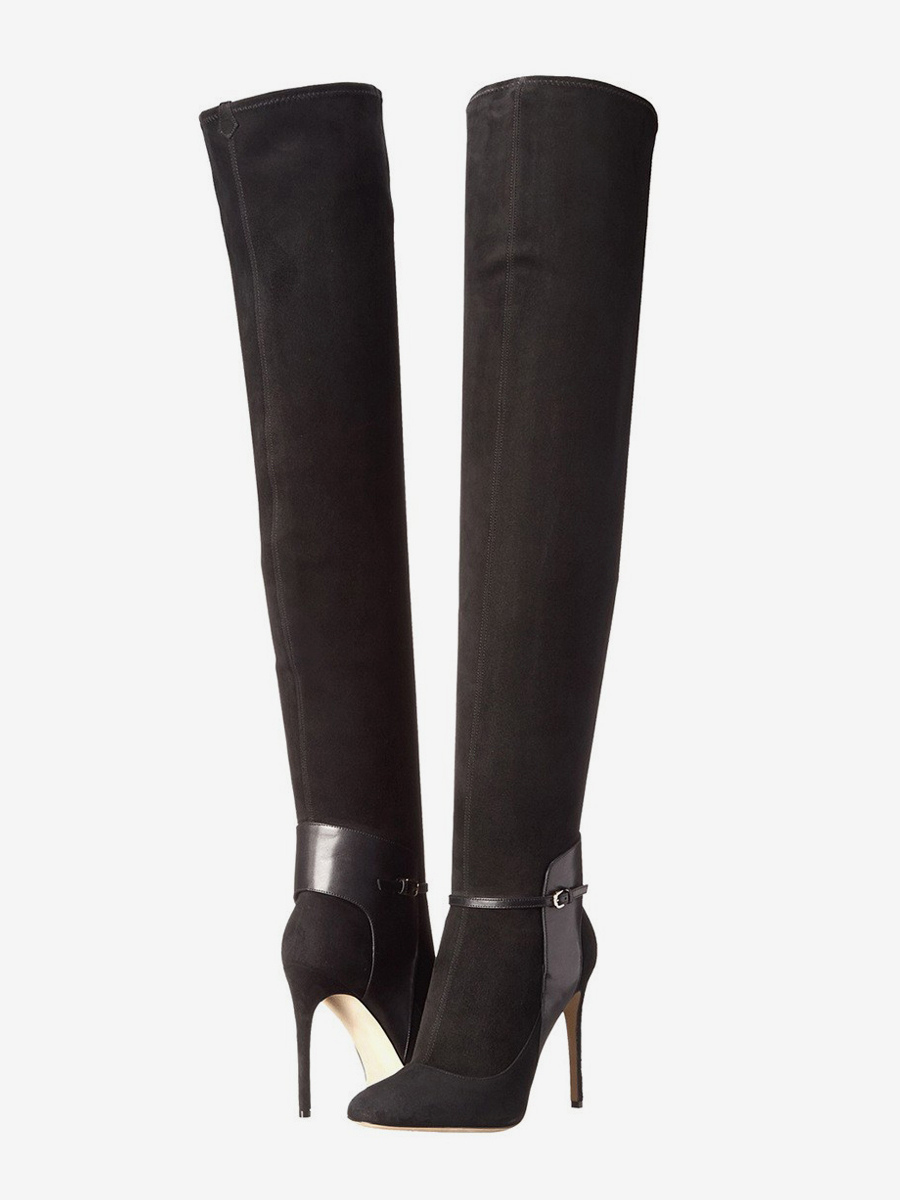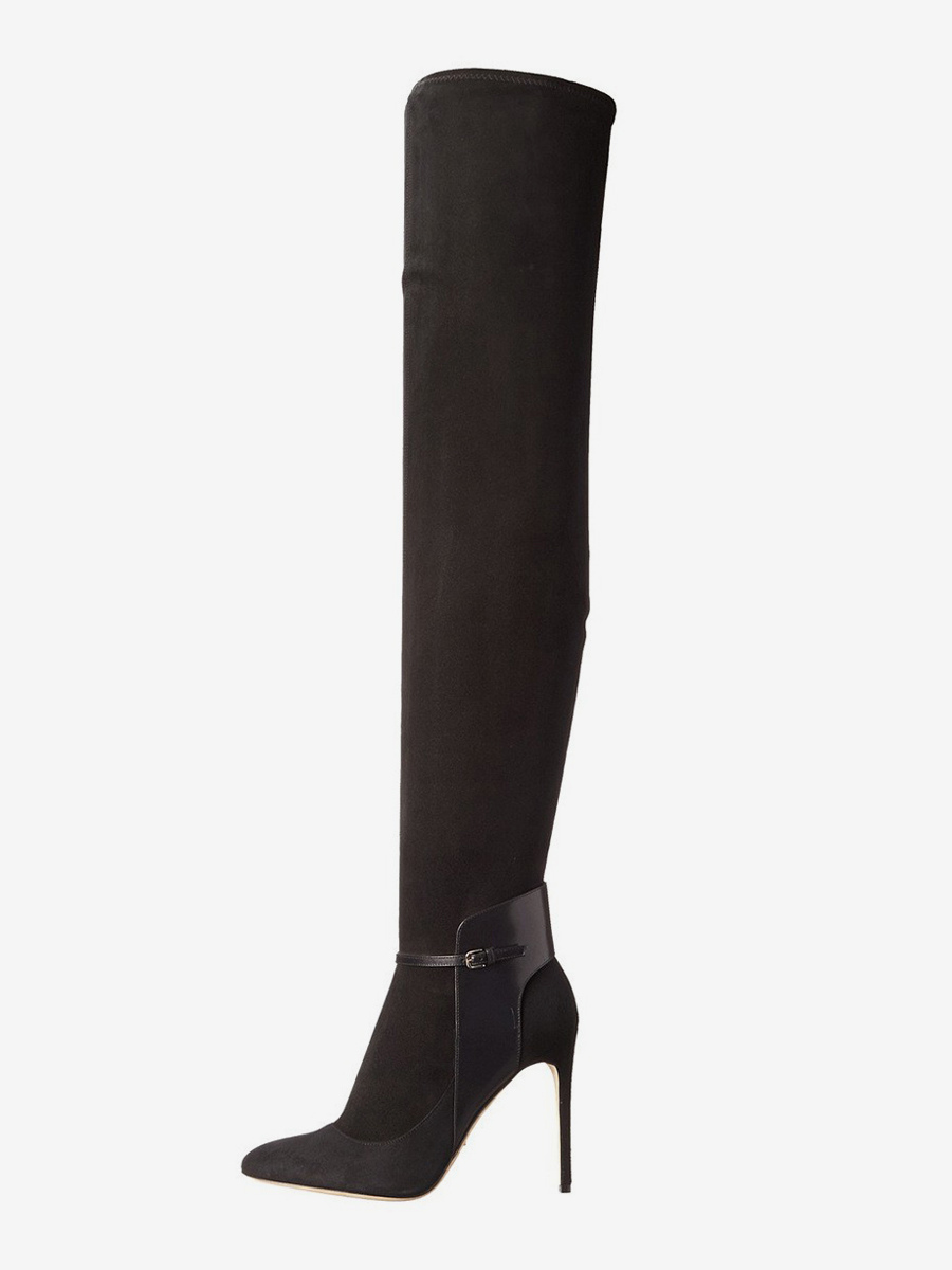 スエードのオーバーニーブーツ、ポインテッドトゥ、ハイヒール、サイハイブーツ