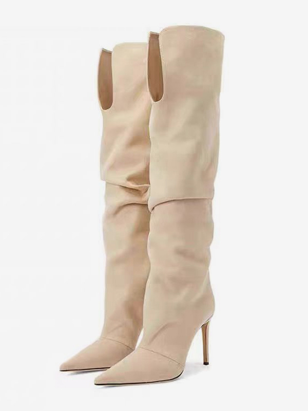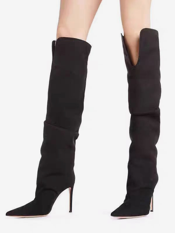 スエードオーバーニーブーツ レディース スエードポインテッドトゥハイヒールブーツ