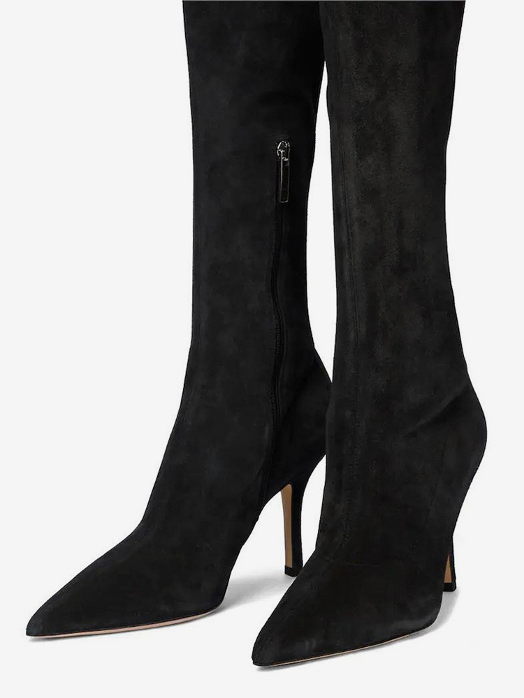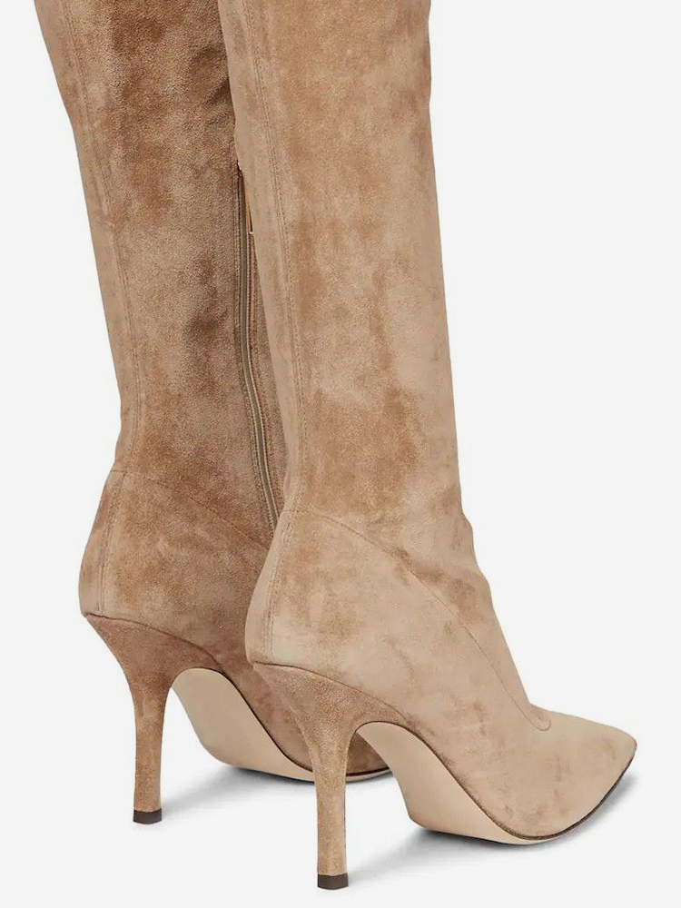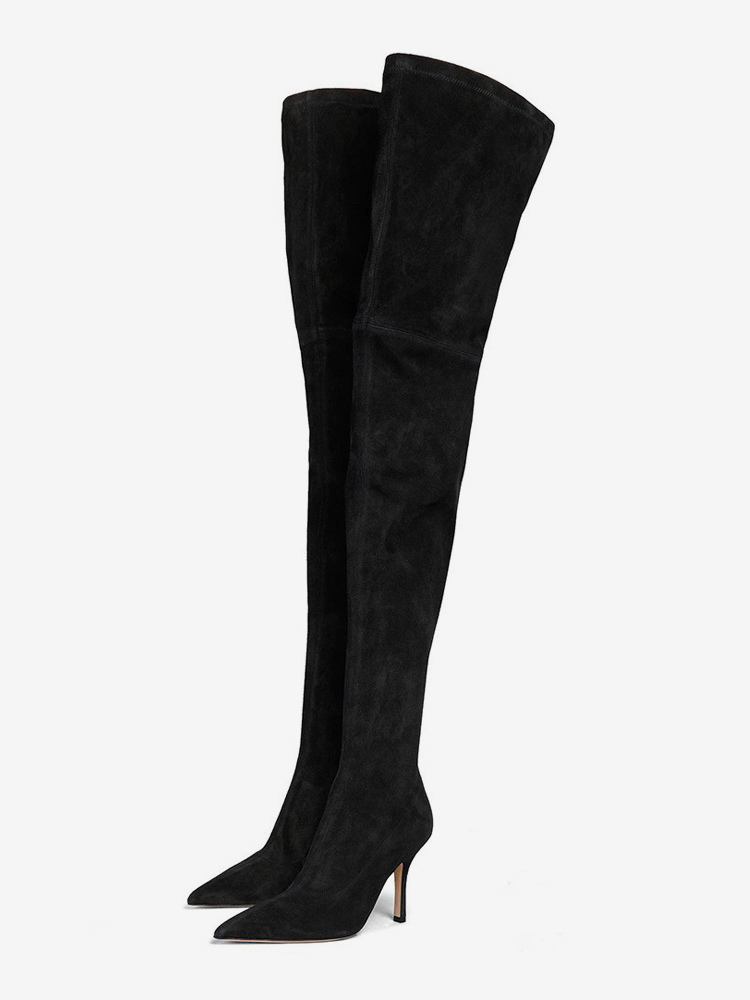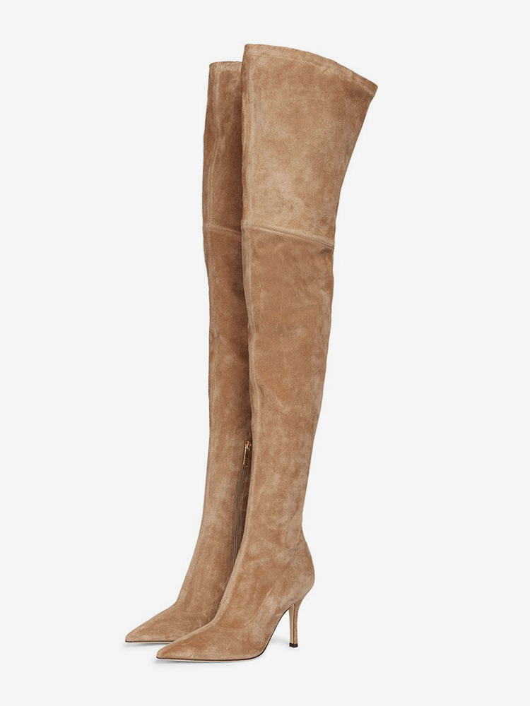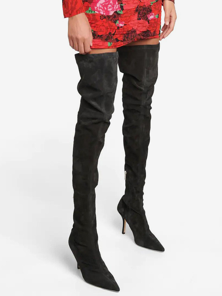 スエードサイハイブーツ ハイヒール ポインテッドトゥ オーバーニーブーツ