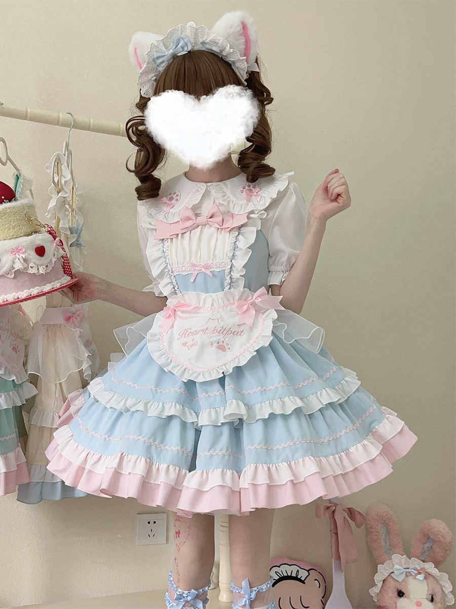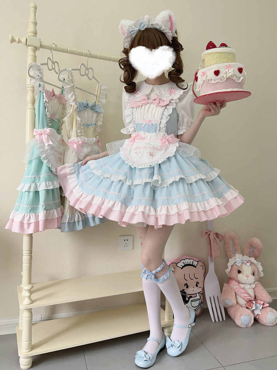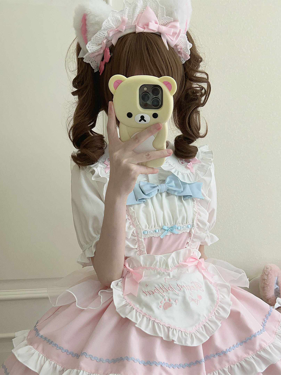 スウィートロリータドレス ノースリーブ フリル リボン クラシック ピンク ロリータドレス エプロン付き