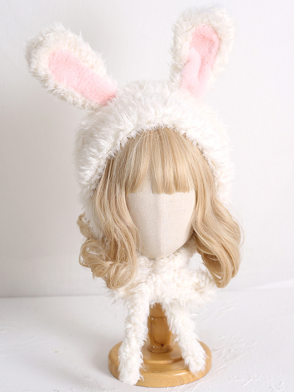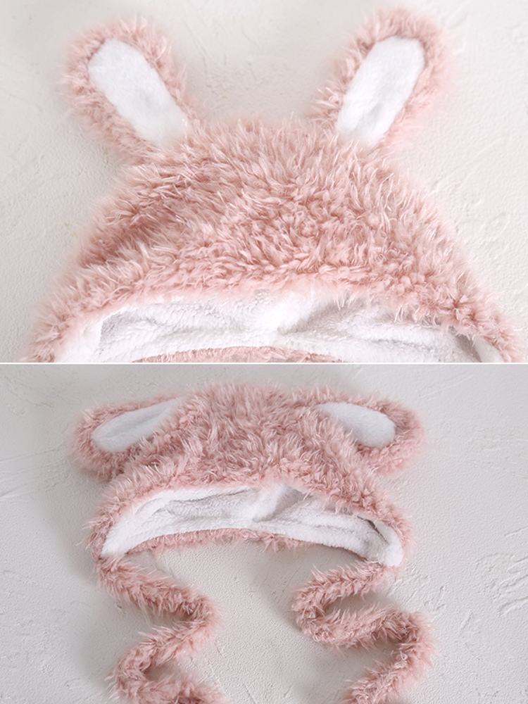 スイートロリータハット ピンク ウサギの耳 ぬいぐるみ 暖かいアクセサリー