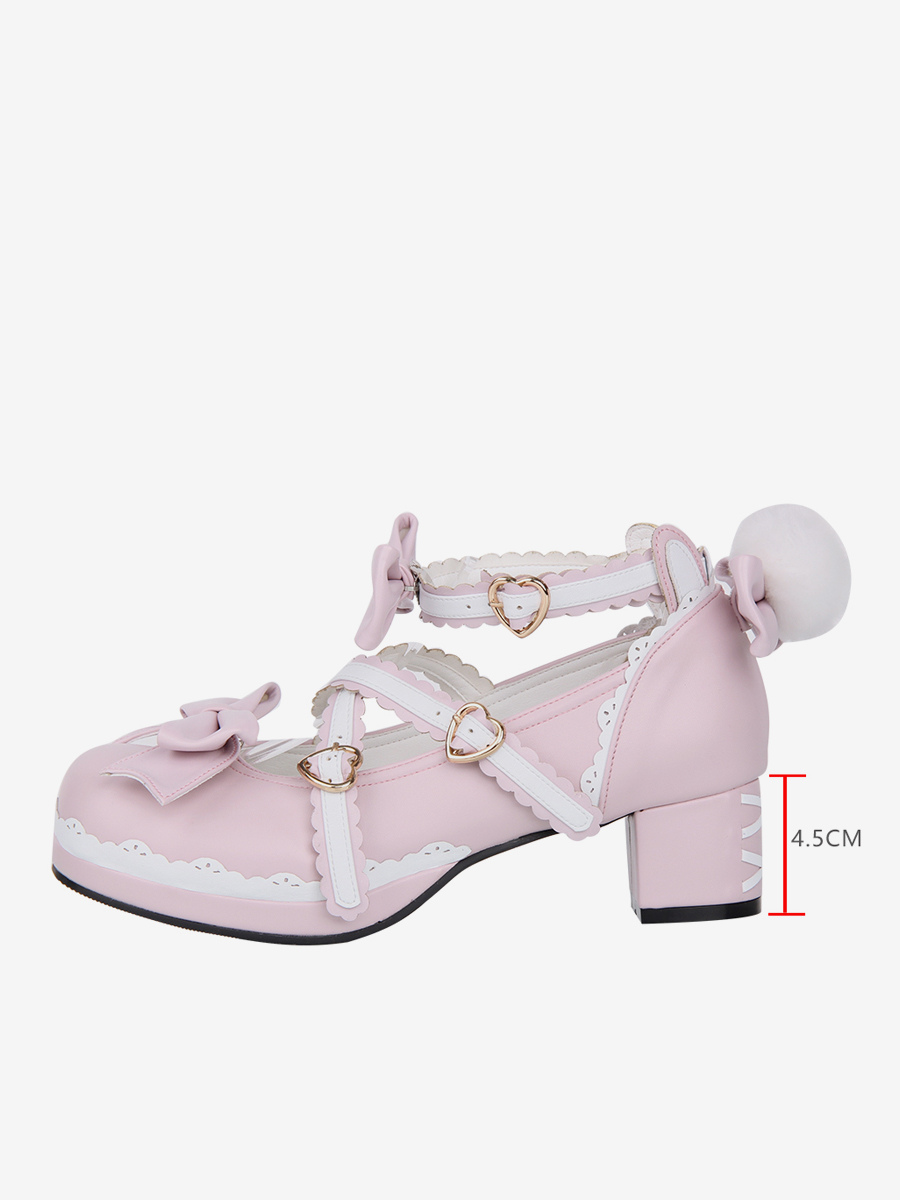 スイートロリータシューズ ピンクのリボン チャンキーヒール ロリータパンプス