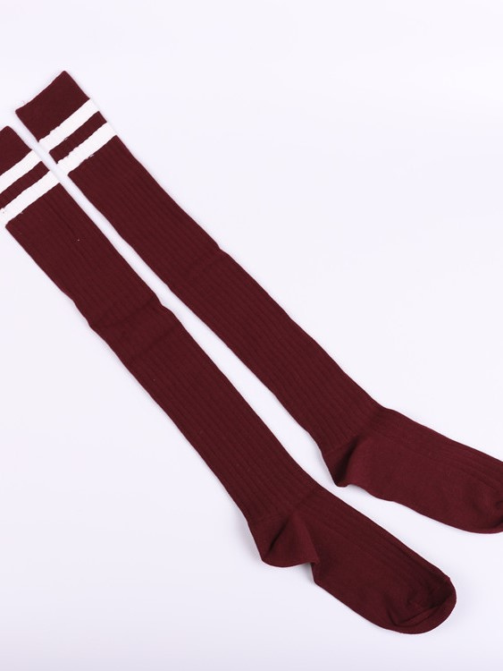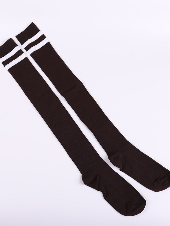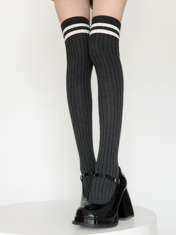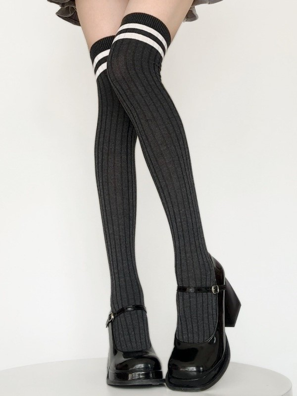 スウィートロリータストッキング2トーンストライプコットンニーハイソックス