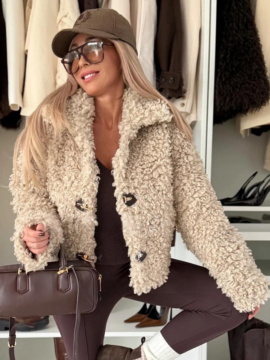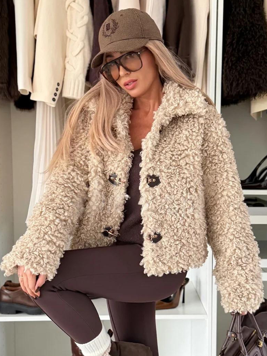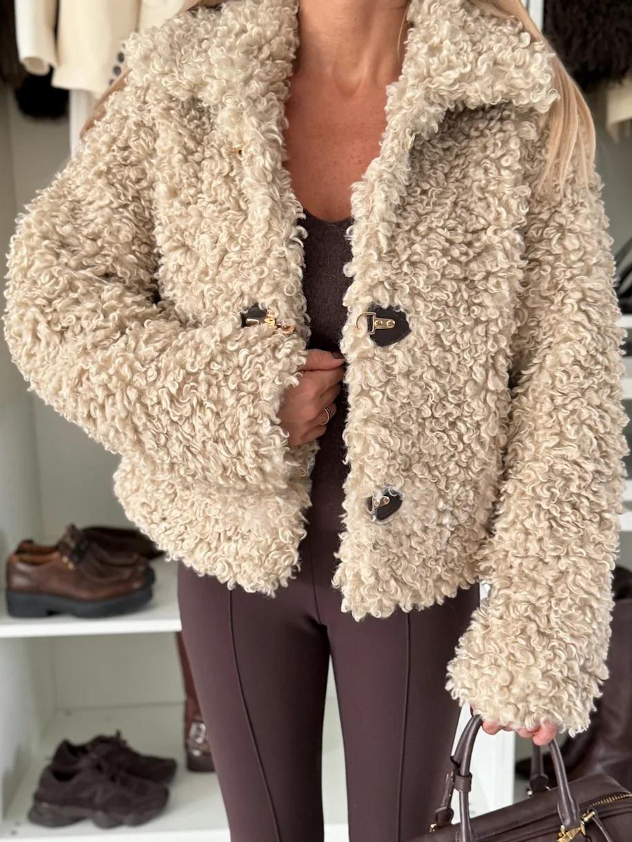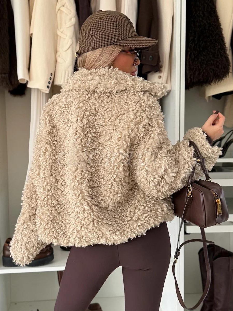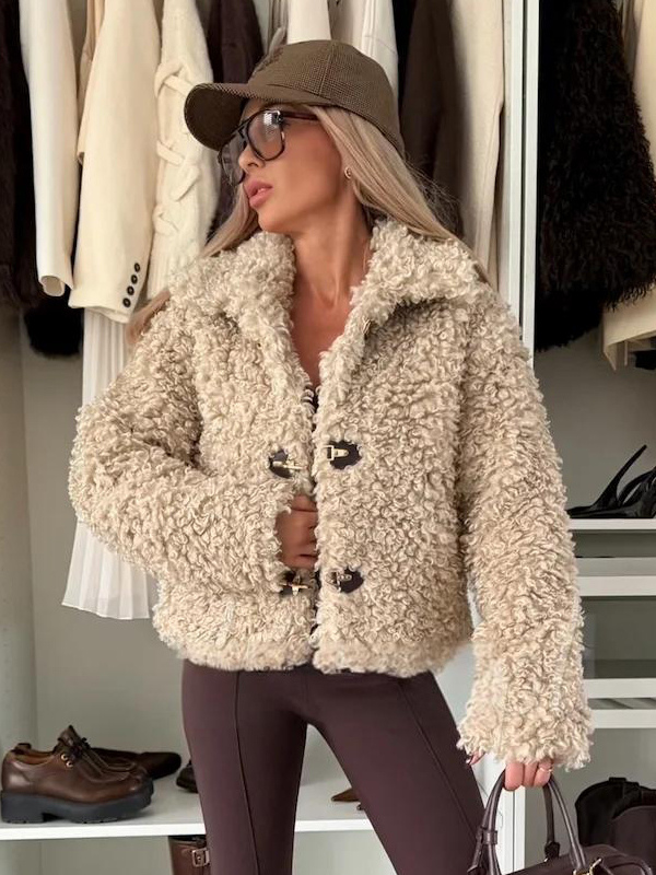 テディフリースジャケット カーリーフェイクファー ボタンアップコート レディース 2026