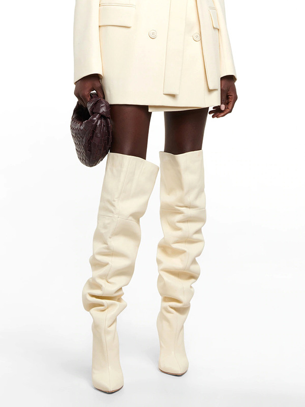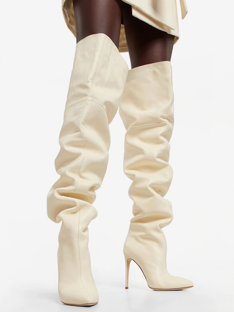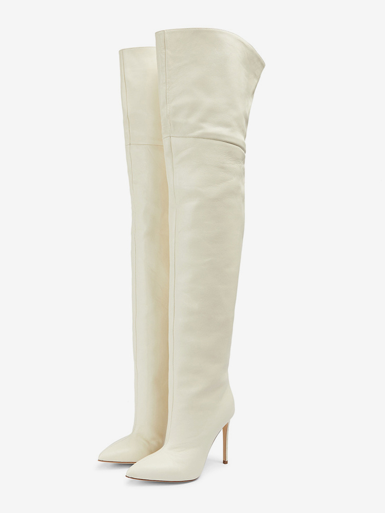 サイハイブーツ プラスサイズ ポインテッドトゥ ハイヒール オーバーニーブーツ