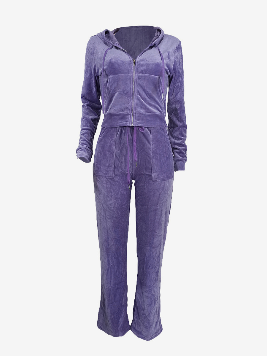 ベロア素材のトラックスーツセット(ジップアップパーカー&パンツ)レディース 2025