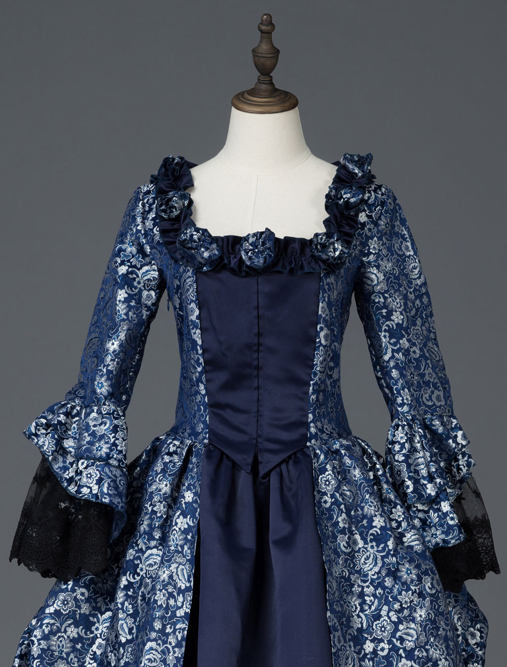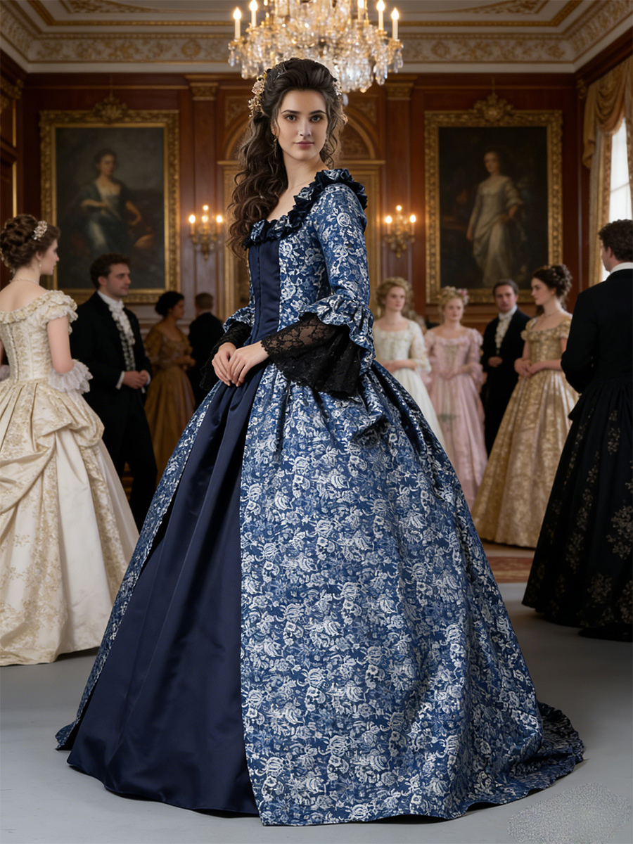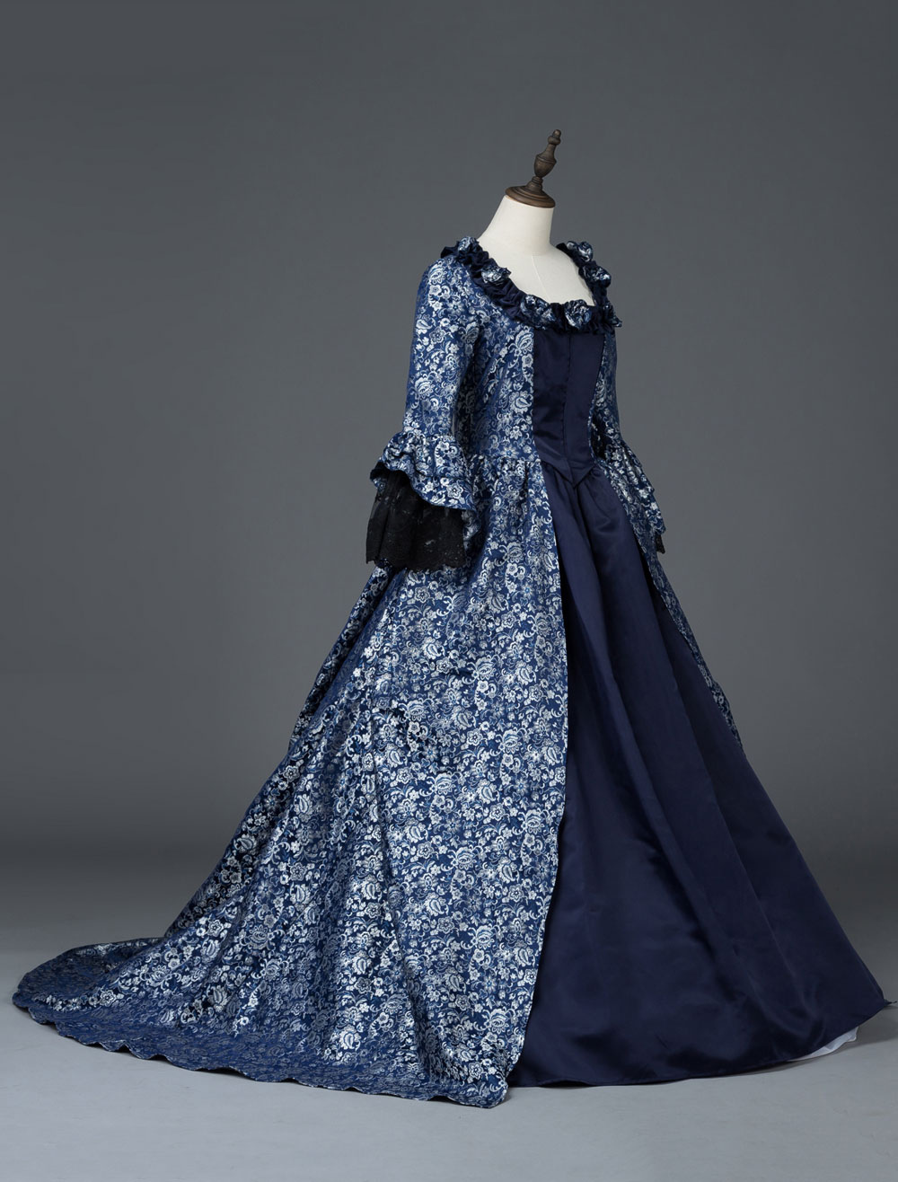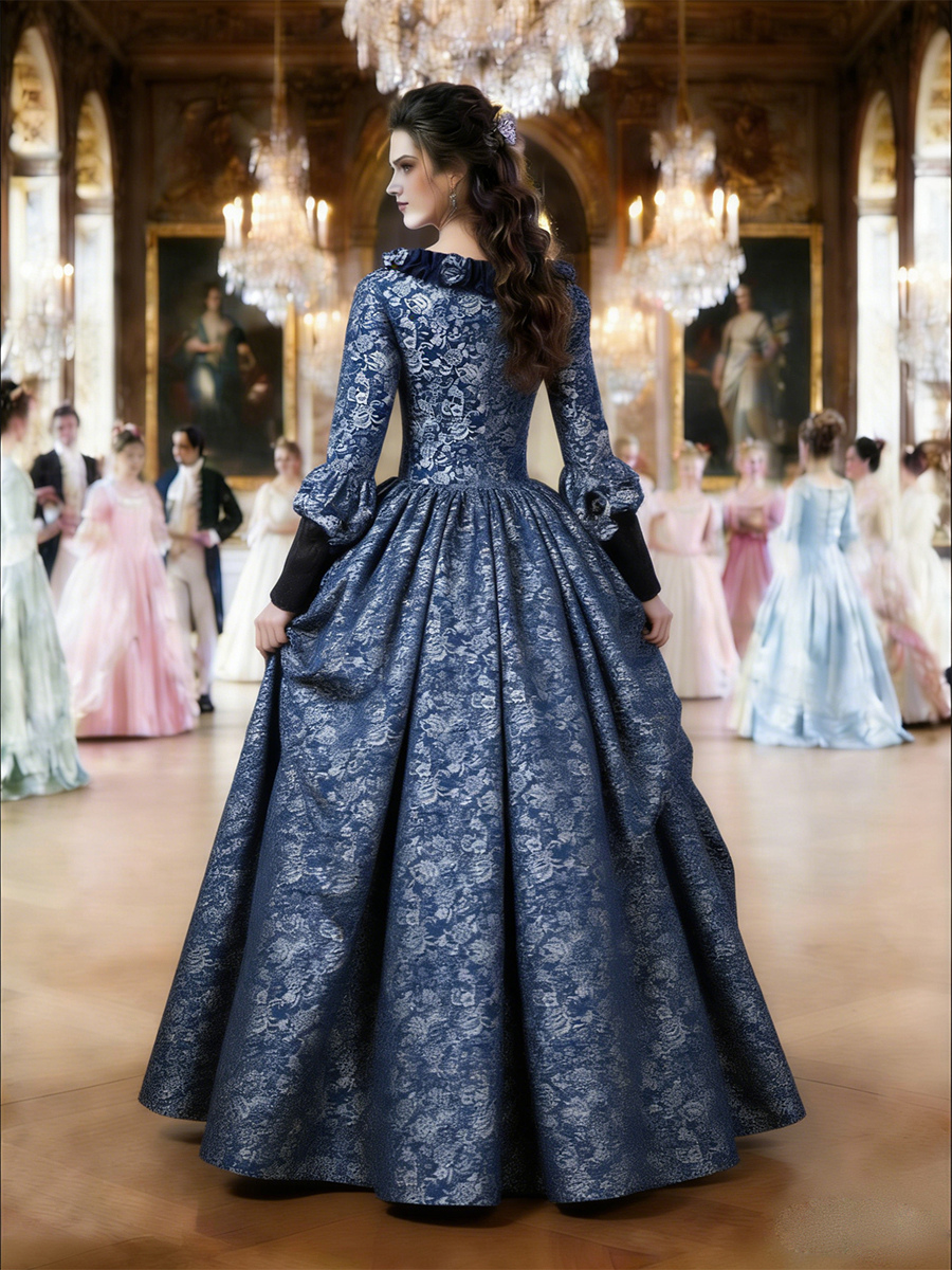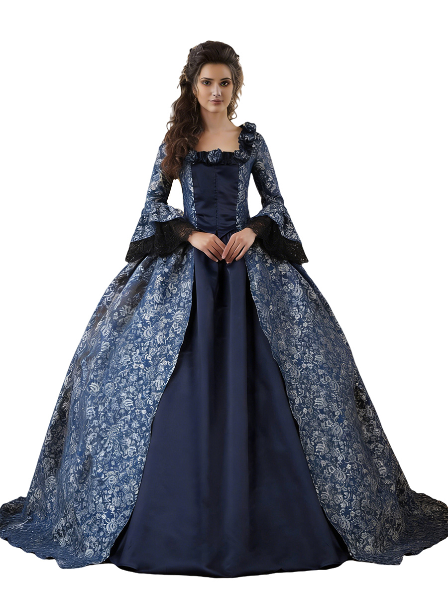 プリンセス 女性用 貴族ドレス 中世 ドレス ダークネイビー 長袖 マットサテン サテン ページェント ドレス ヴィクトリア風 中世 ドレス・貴族ドレス ヨーロッパ 宮廷風 レトロ