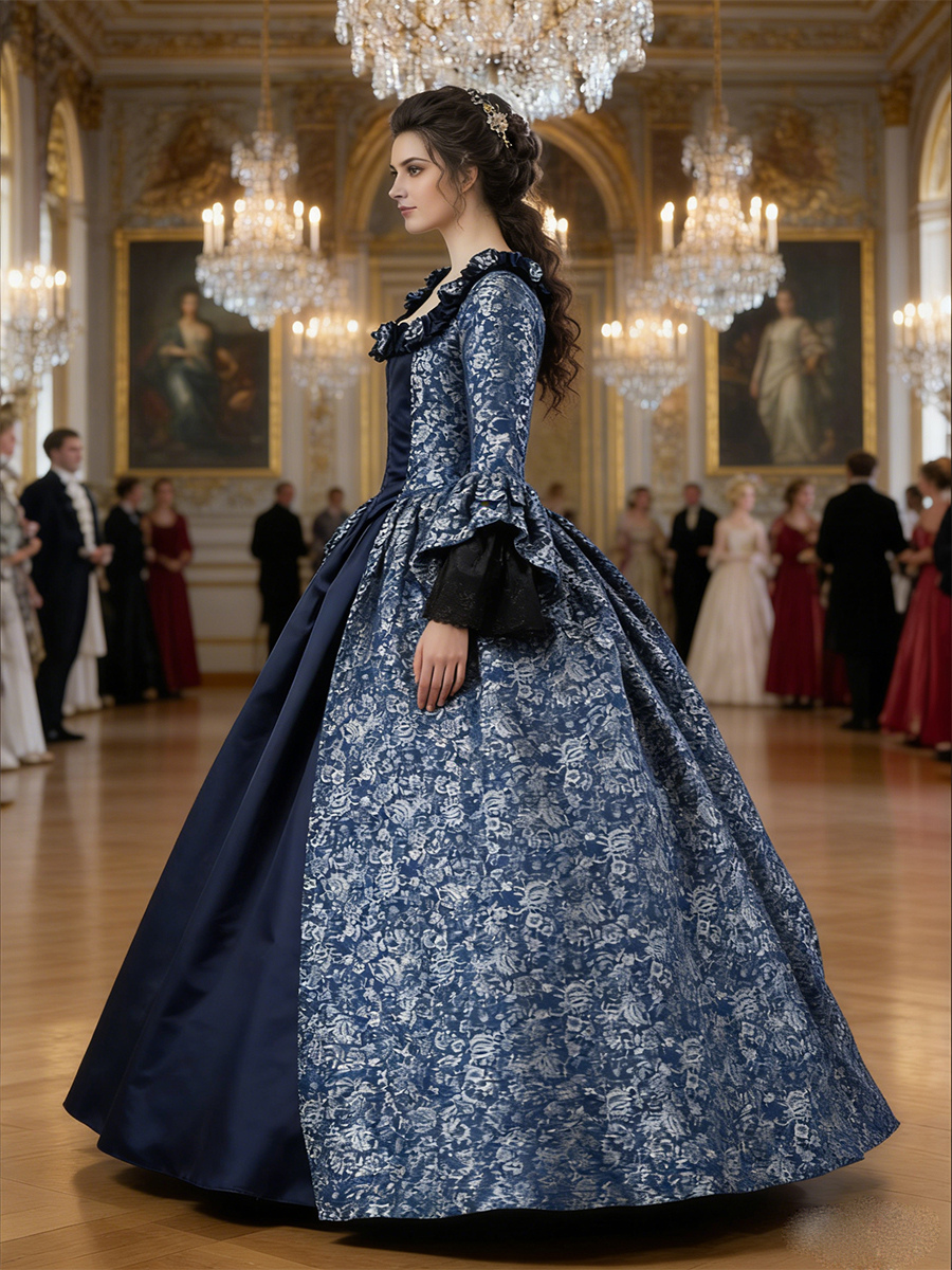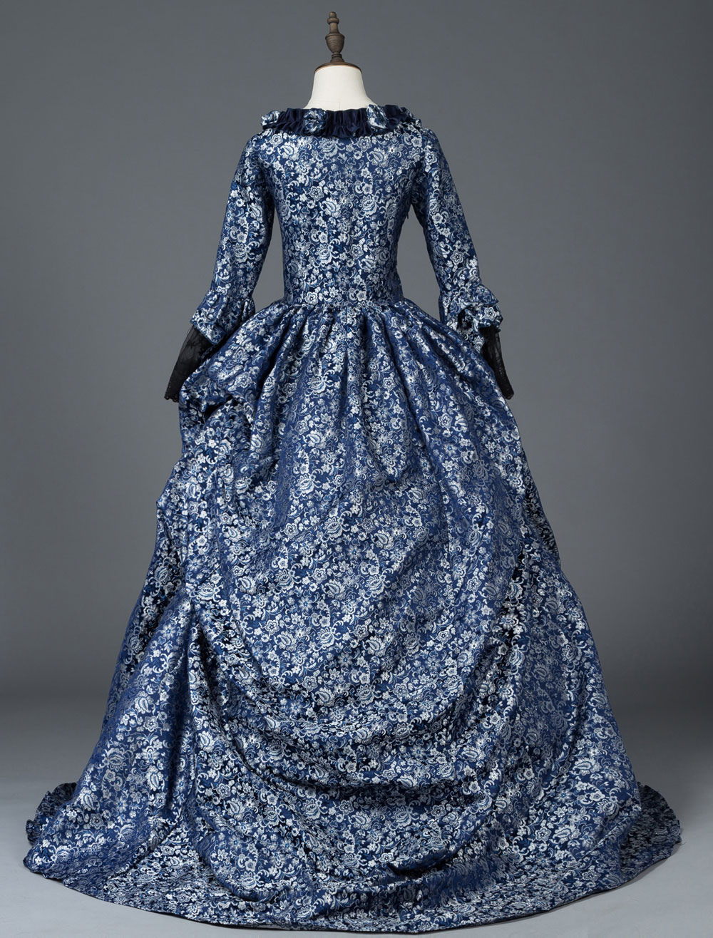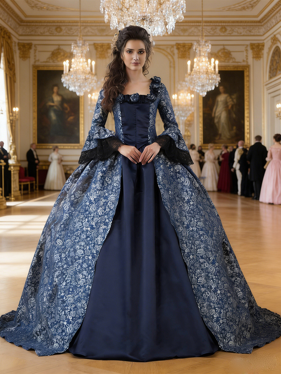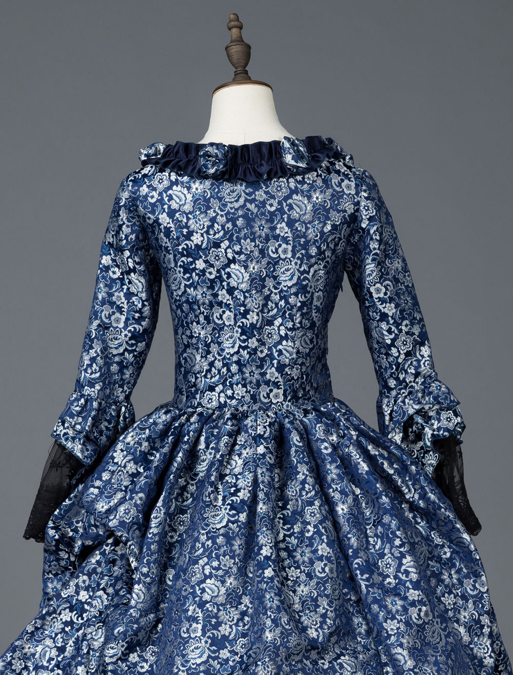 プリンセス 女性用 貴族ドレス 中世 ドレス ダークネイビー 長袖 マットサテン サテン ページェント ドレス ヴィクトリア風 中世 ドレス・貴族ドレス ヨーロッパ 宮廷風 レトロ