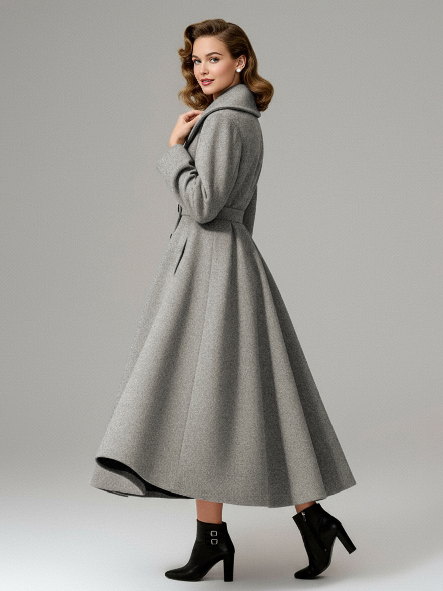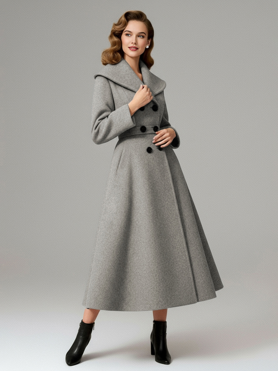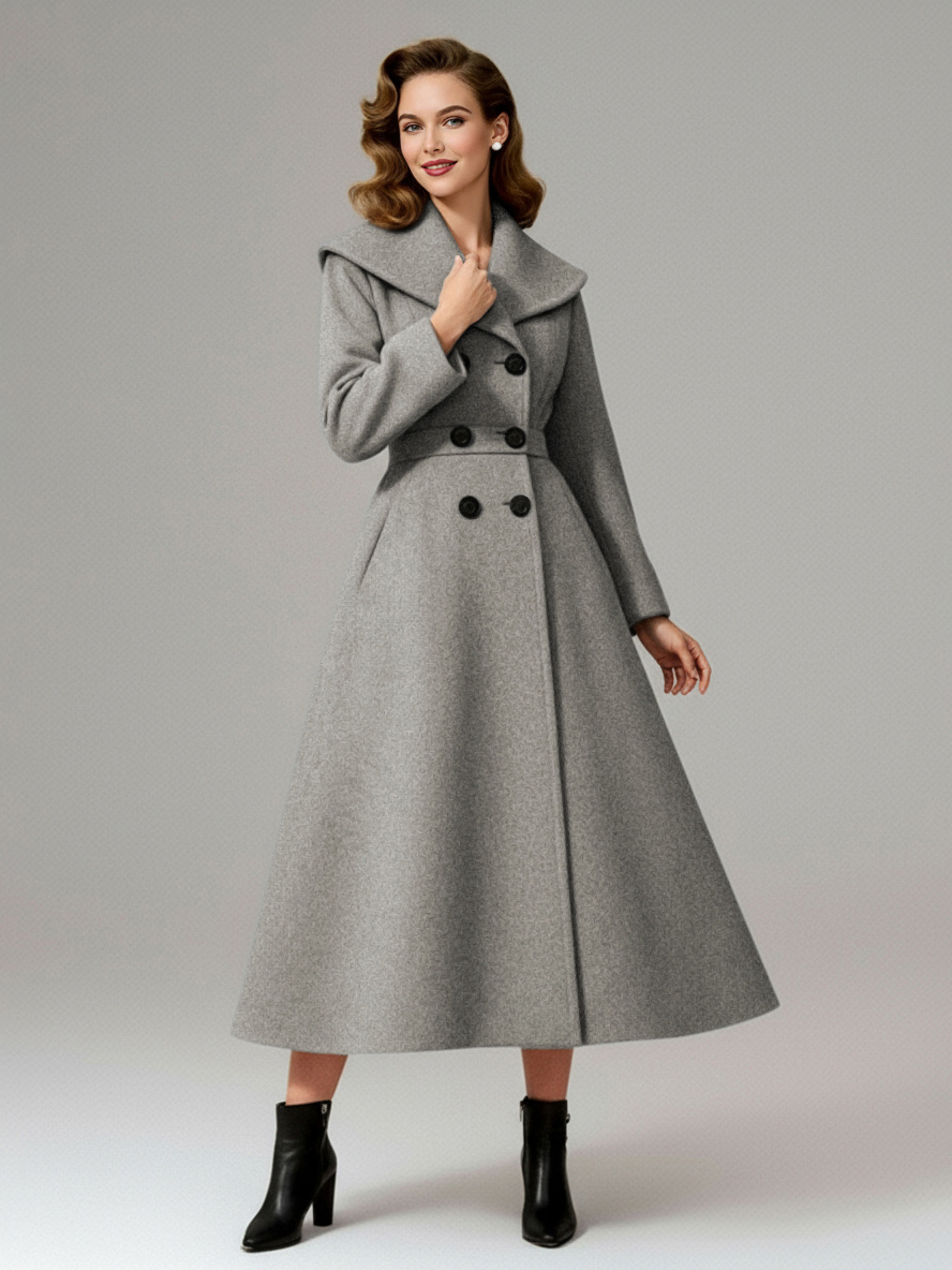 ヴィンテージ ダブルブレスト Aライン ウールコート(ショールカラー)レディース 2025