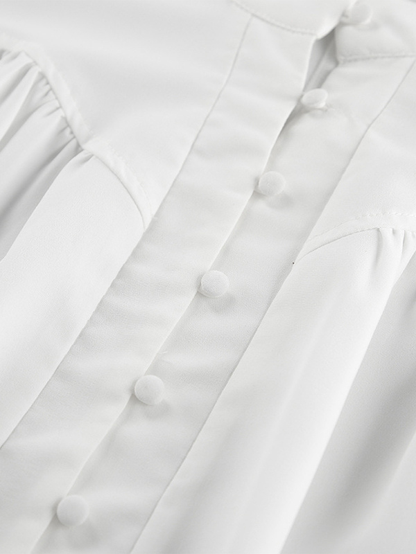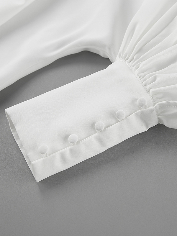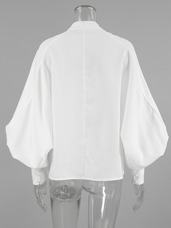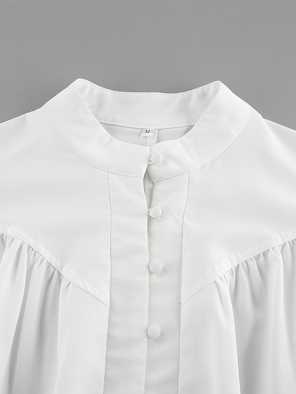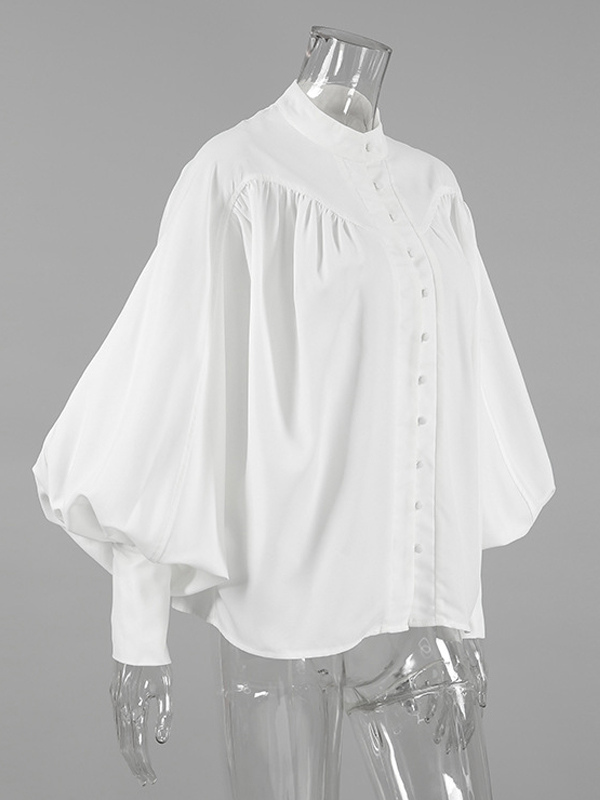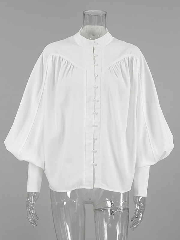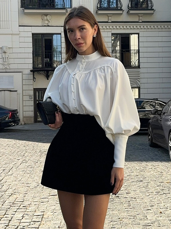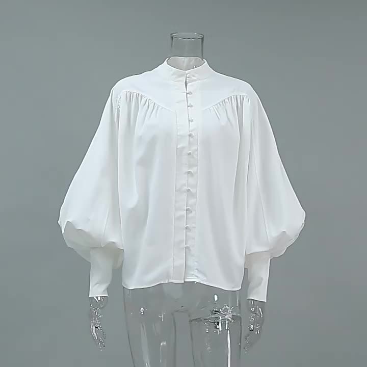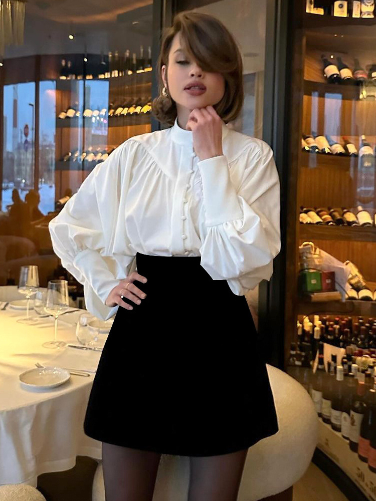 2025年秋冬レディース向けスタンドカラー付きヴィンテージパフスリーブブラウス