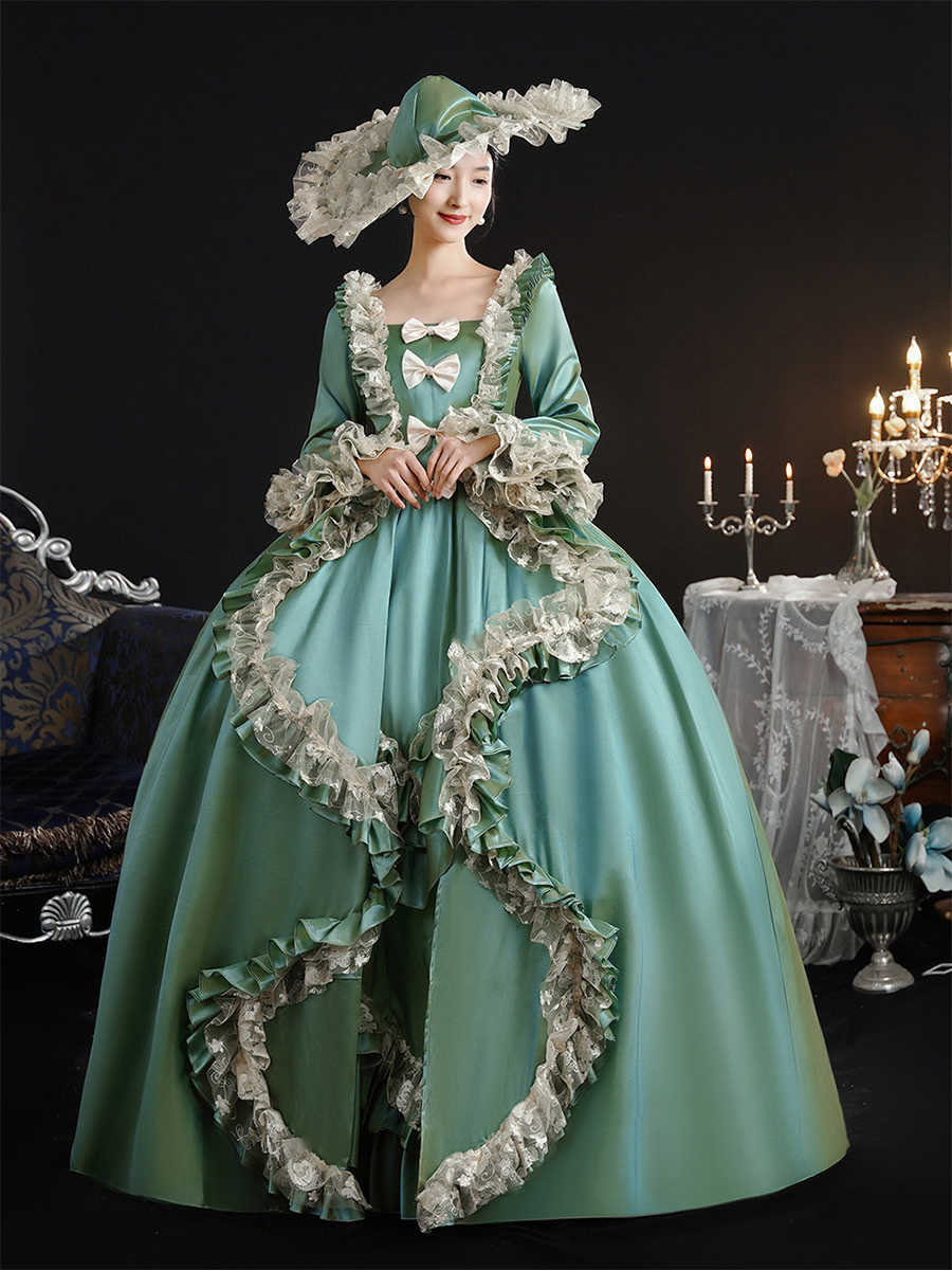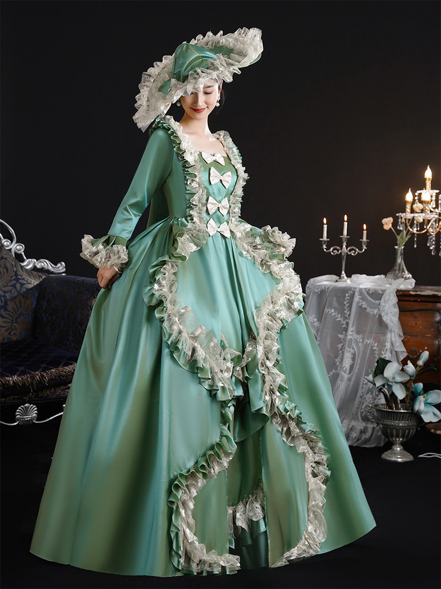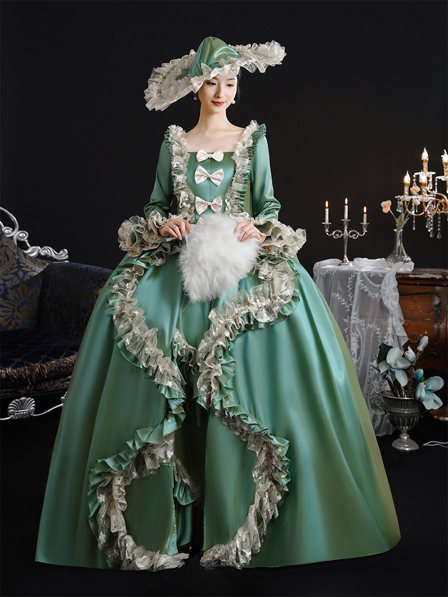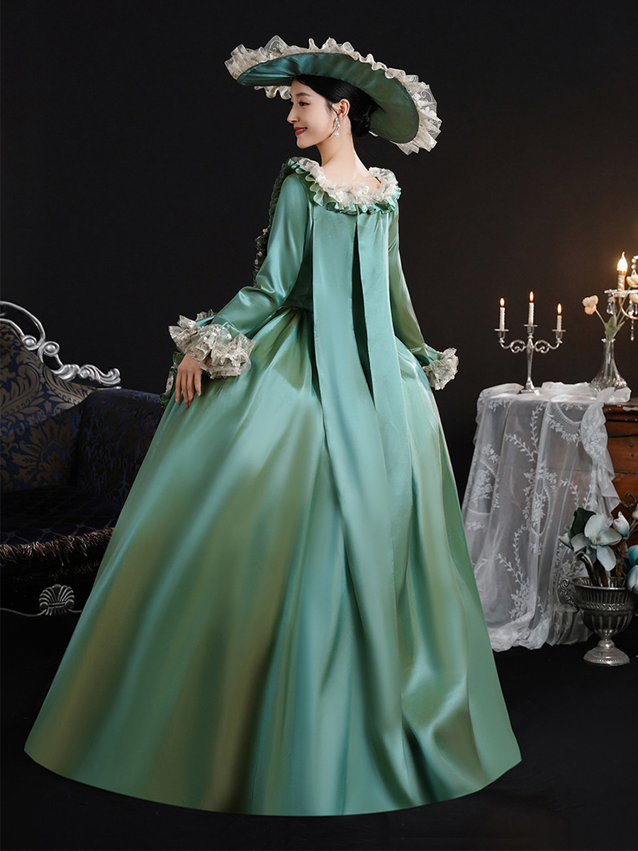 ヴィンテージ ヴィクトリア朝 女性用ドレス 18世紀 ワイドヒップシルエット グリーン レトロドレス