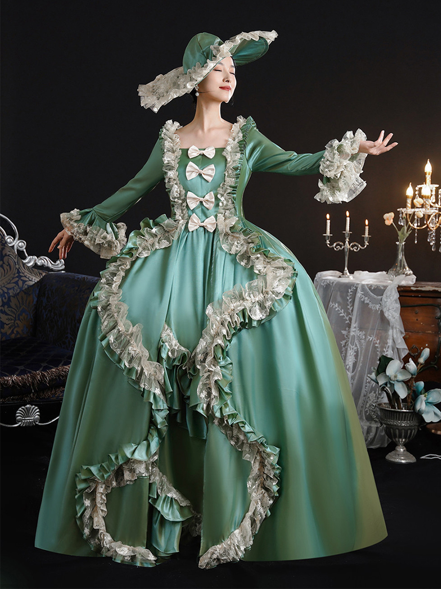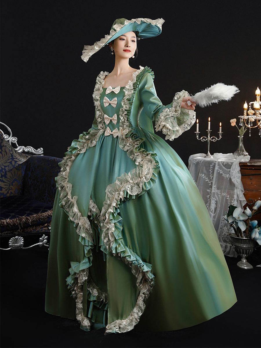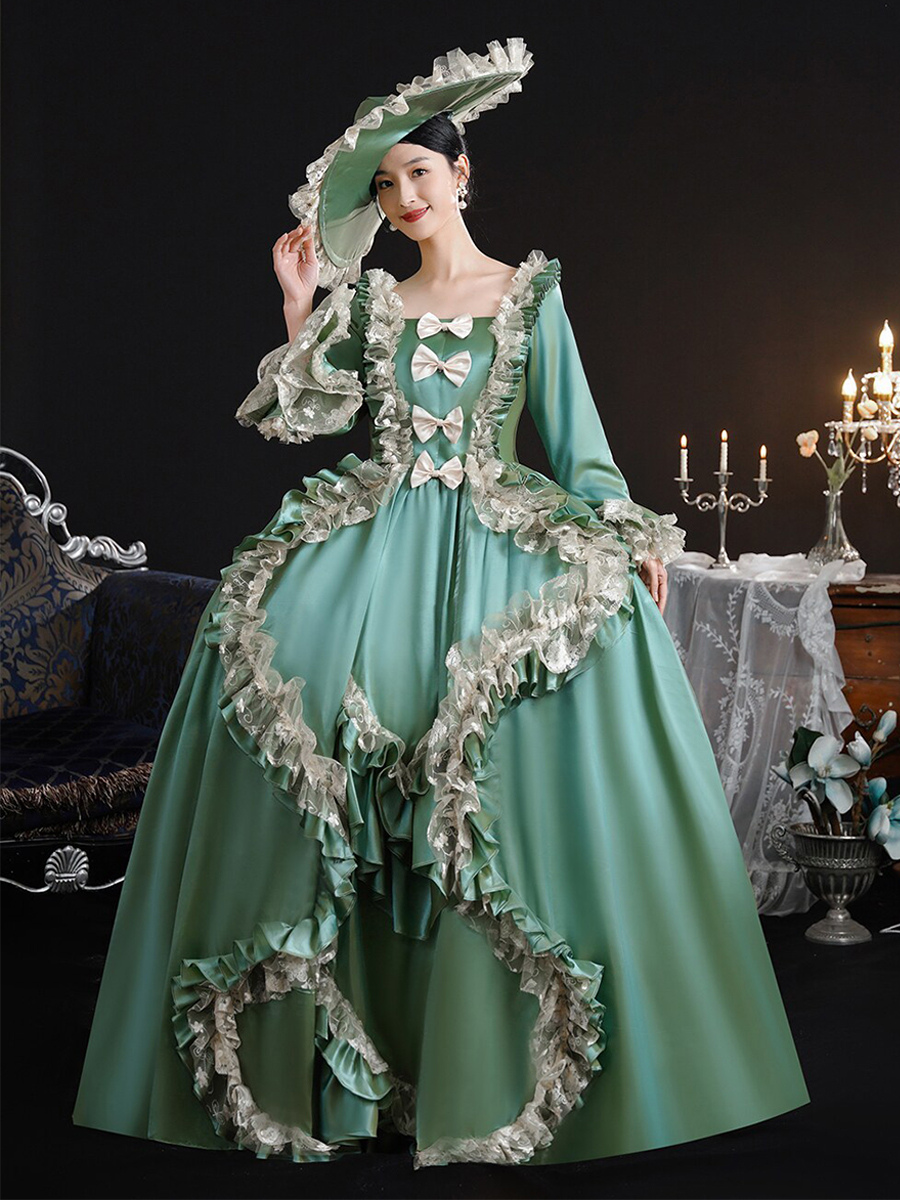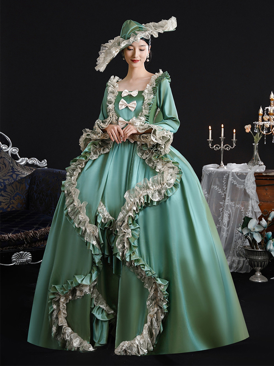 ヴィンテージ ヴィクトリア朝 女性用ドレス 18世紀 ワイドヒップシルエット グリーン レトロドレス