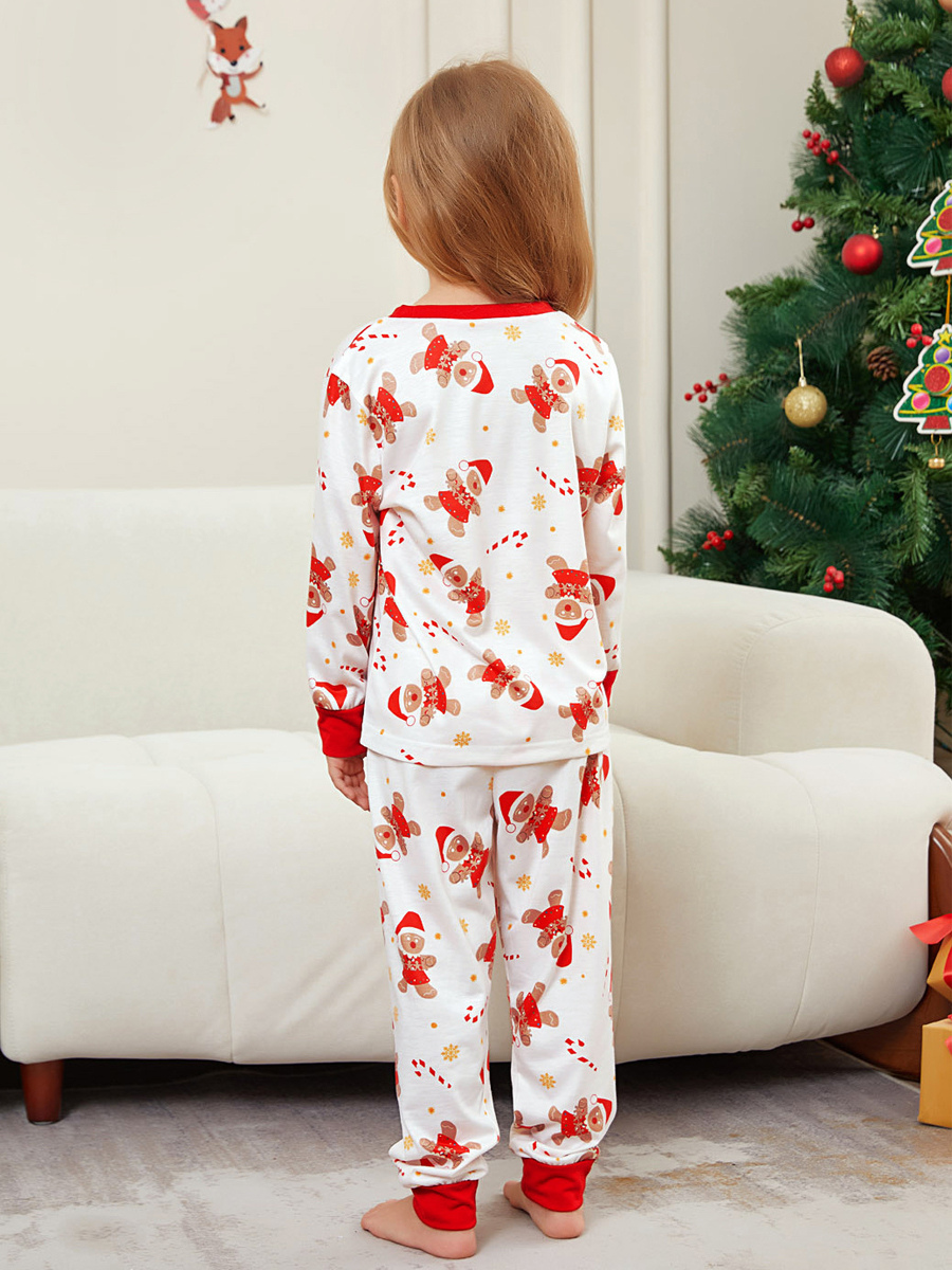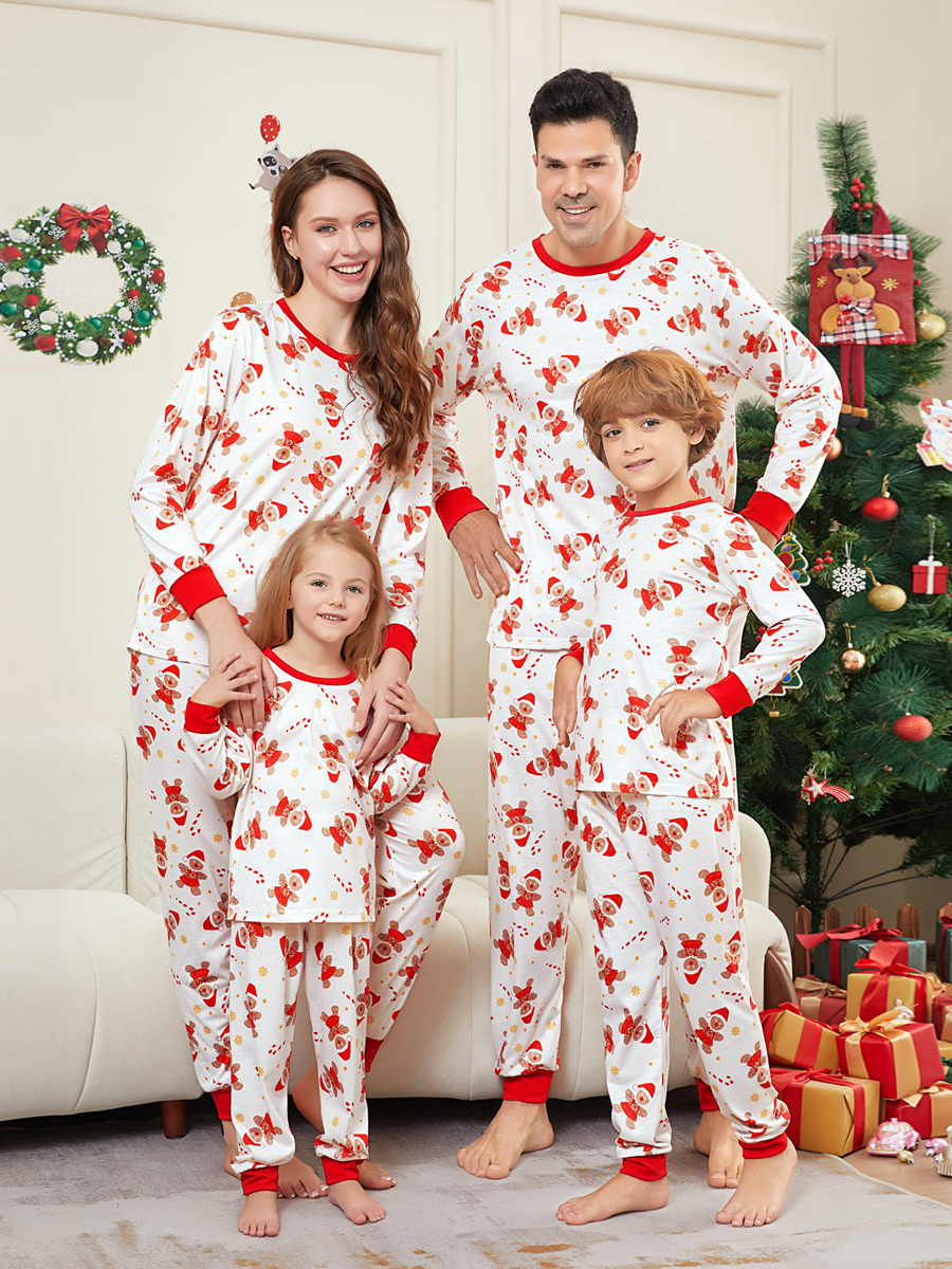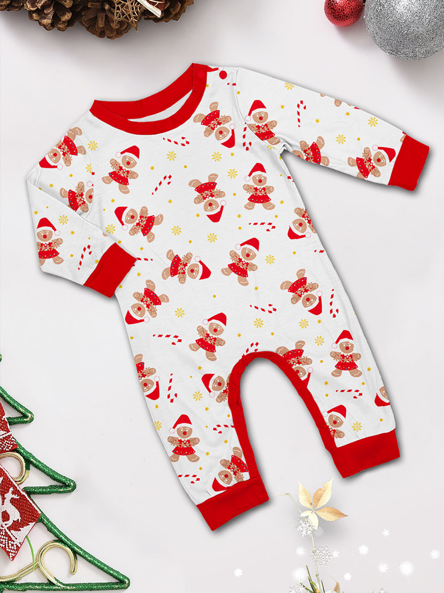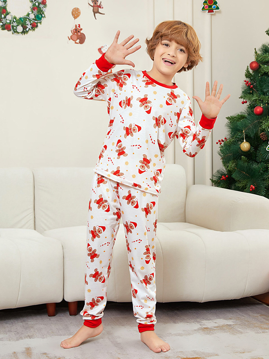 白と赤のジンジャーブレッドマン柄ファミリークリスマスパジャマ 2025