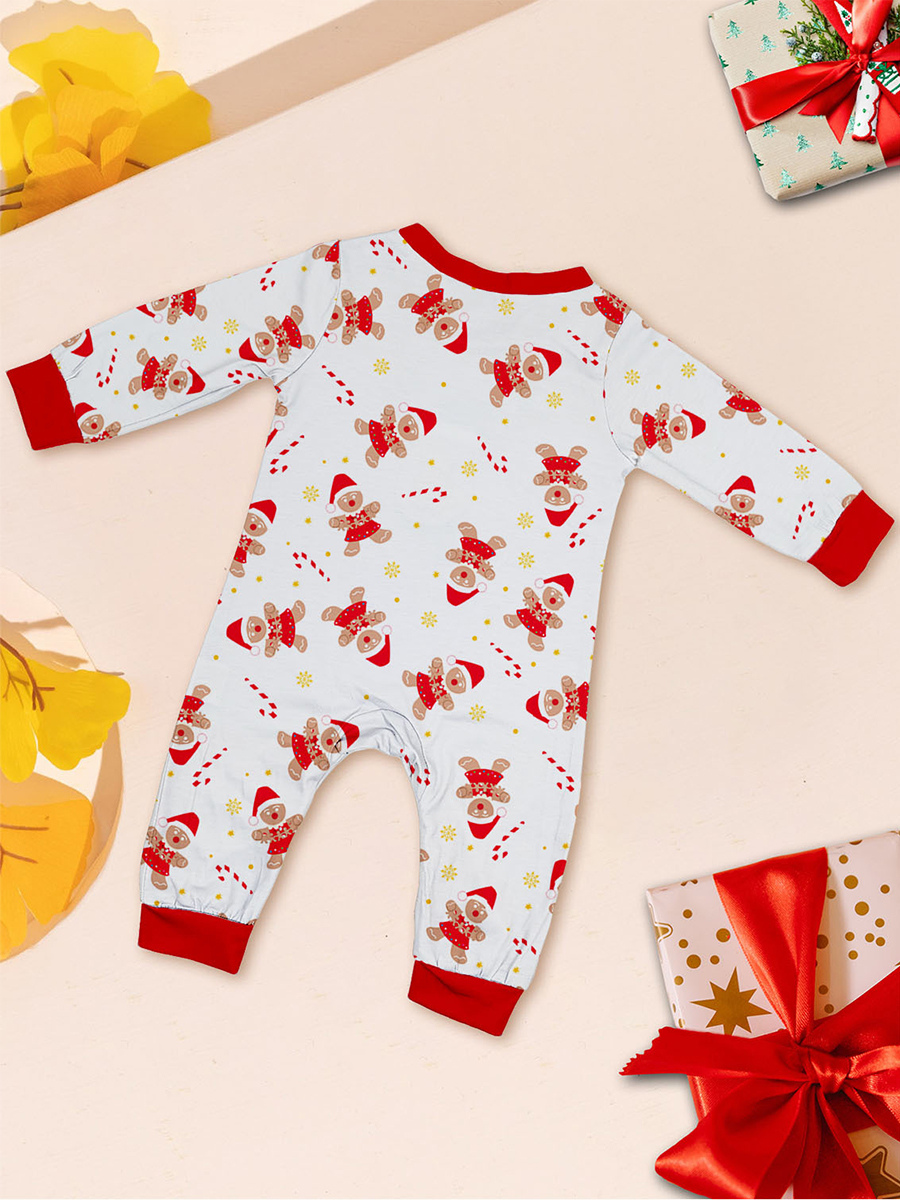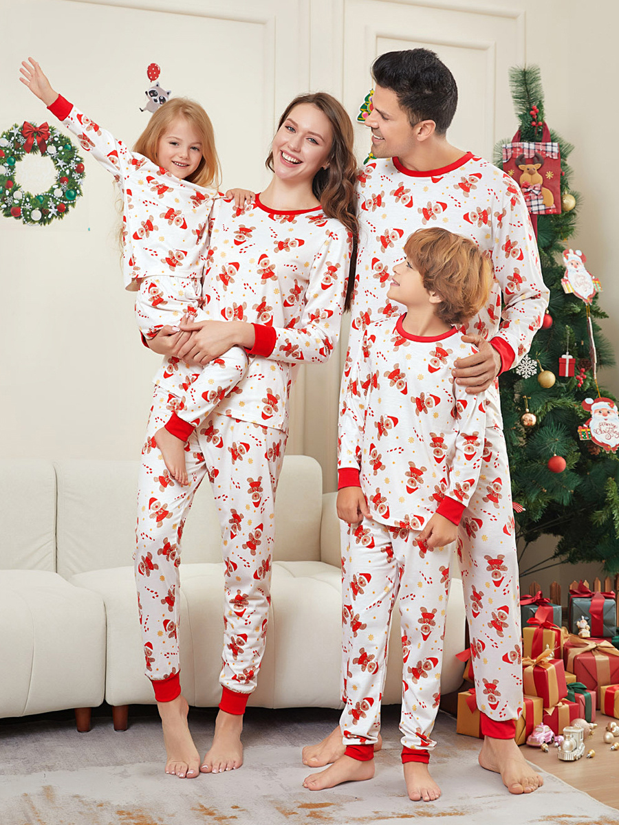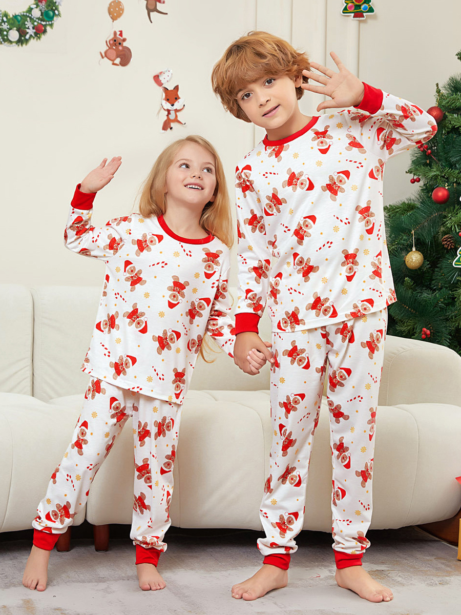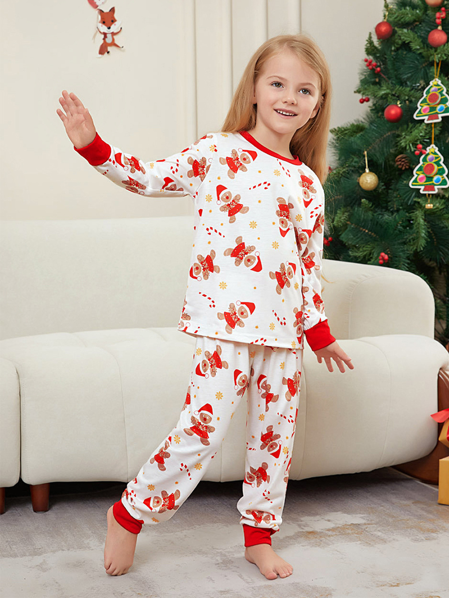 白と赤のジンジャーブレッドマン柄ファミリークリスマスパジャマ 2025